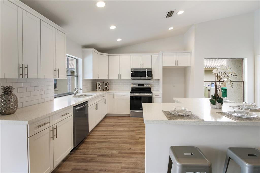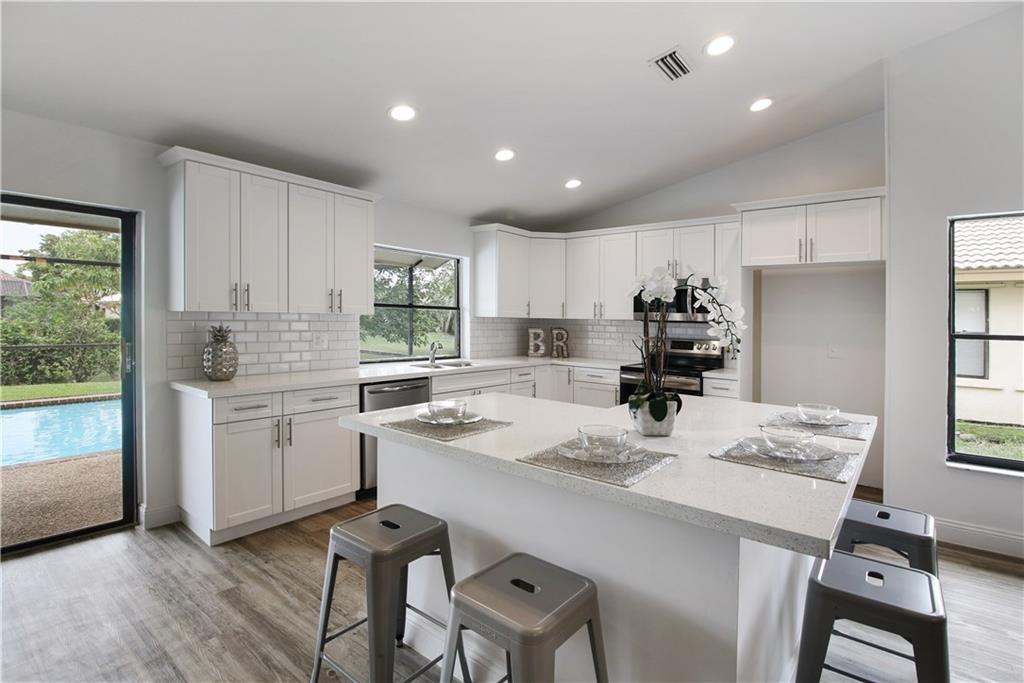 ABSOLUTELY STUNNING!! All I see is BLUE BLUE BLUE BLUE BLUE !! does it again with another perfectly staged model home. This home has it all. Real wood kitchen and bathroom cabinets with quartz counter tops and SS appliances. Expensive vinyl glue down flooring. Wide open floor plan. Furniture negotiable. Private fenced in backyard. Post Wilma Roof. BRAND NEW A/C AND WATER HEATER. This home will not disappoint. No showings until Saturdays open doors.