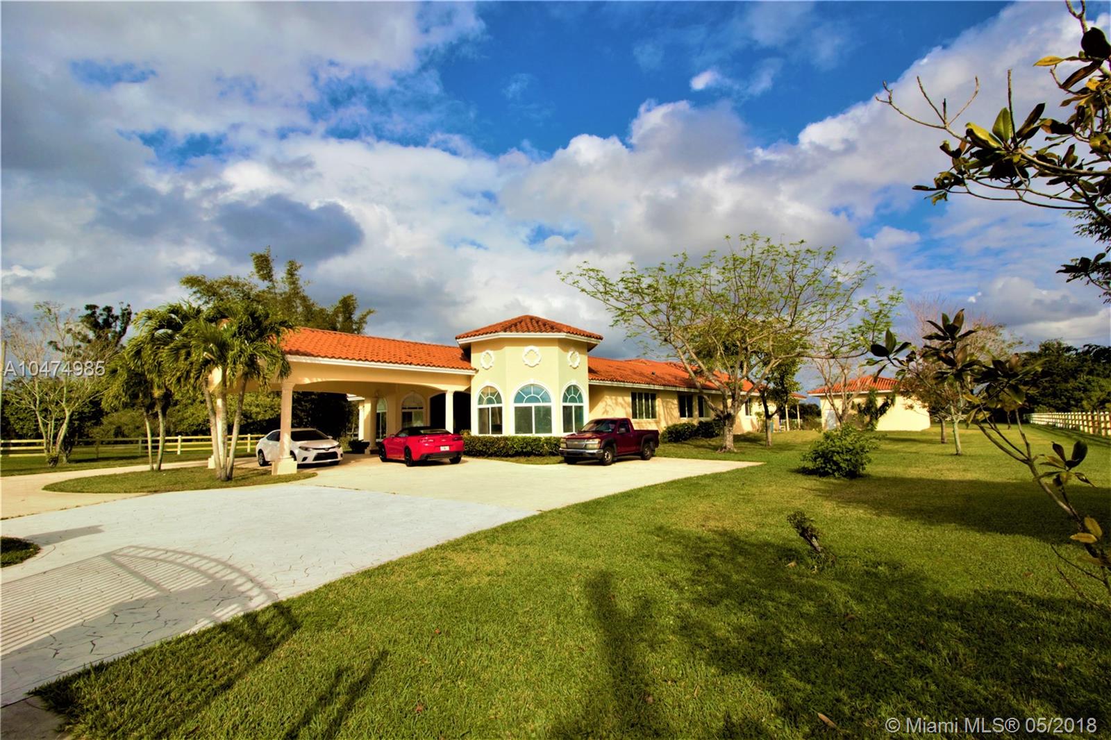 SW RANCHES NO HOA! THIS BEAUTIFUL ESTATE BUILT IN 2008 BOASTS 2.44 CLEAN & FENCED ACRES OF PRIME IN/OUTDOOR LIVING. THIS 5,103 SF A/C AREA W/3 BED & ESTUDIO/OFFICE 3 FULL BATH & 2 1/2 BATH HOME, INCLUDES A HUGE MASTER BEDROOM, & BIG MASTER BR, 2 SUITE BROOMS WITH PRIVATE BR, STUDIO/OFFICE EZ CONVERTED TO A 4TH ROOM AS YOUR CONVENIENCE. COVERED PATIO & 1,200 SQFT WAREHOUSE W/ A 20 FT / H CEILING FOR TRUCKS AND TOOLS. 5 TON A/C FOR LIVING AREA, 2.5 TON A/C IN BEDROOMS AND 2 TON A/C 4 MASTER ROOM, IMPACT WINDOWS, MODERN OPEN KITCHEN/FAMILY ROOM W/ GRANITE CT, SS APPLIANCES, FORMAL DINING & BAR. HUGE HARDWOOD MAIN DOOR WITH LOTS OF WINDOWS FOR BRIGHT SUNSHINE RANCHES, ROOM FOR POOL, PRIVATE STREET, OWN WATER AND SEWER AND MORE. EZ TO SHOW CALL FOR A PRIVATE SHOWING APPOINTMENT.