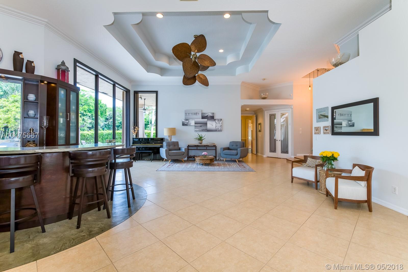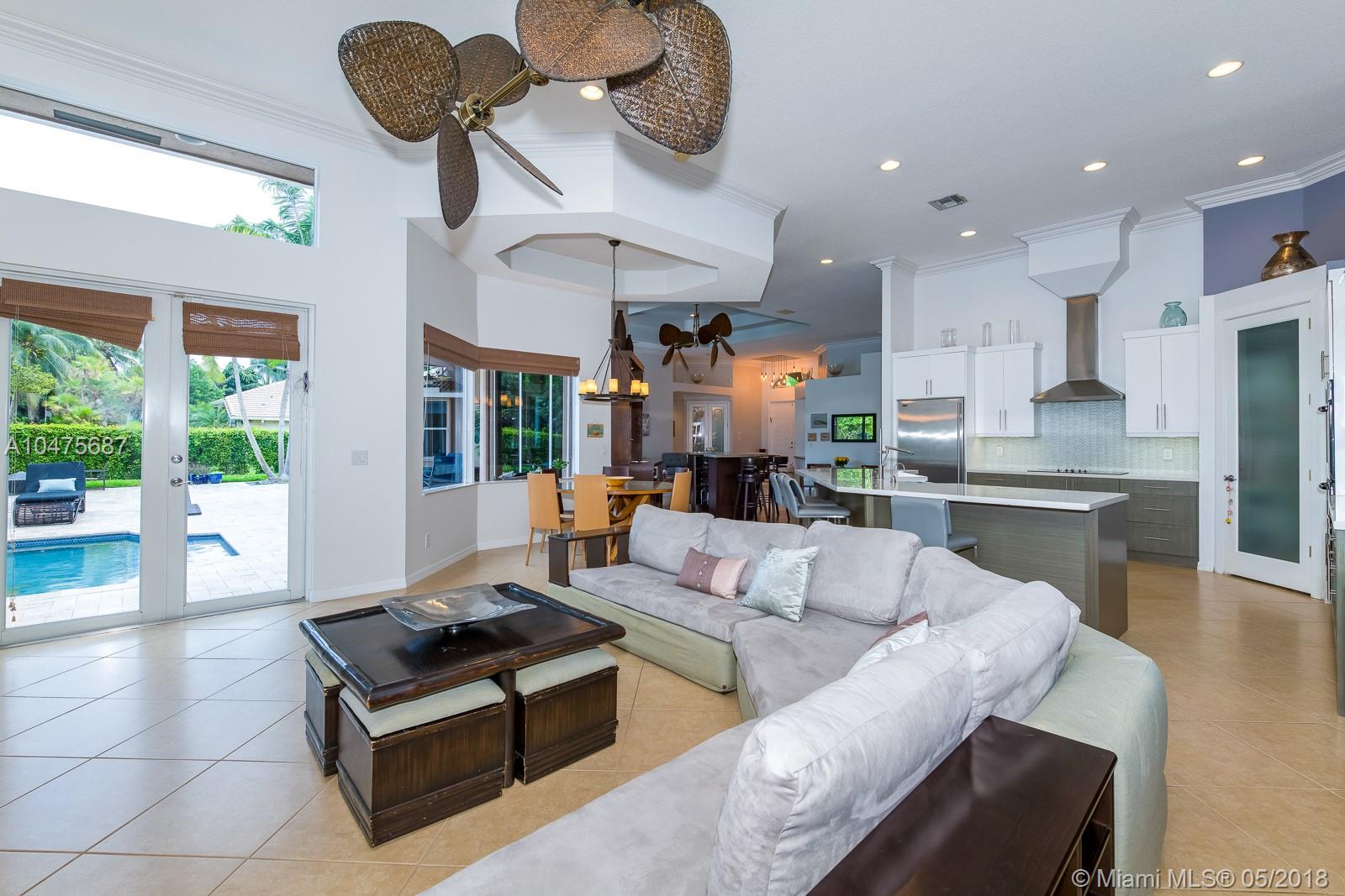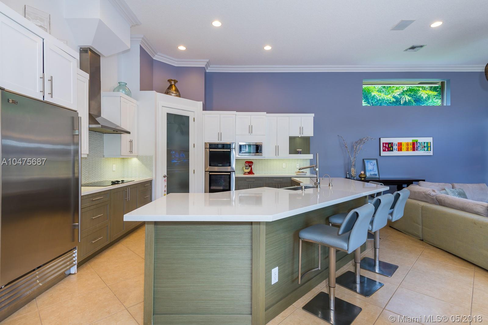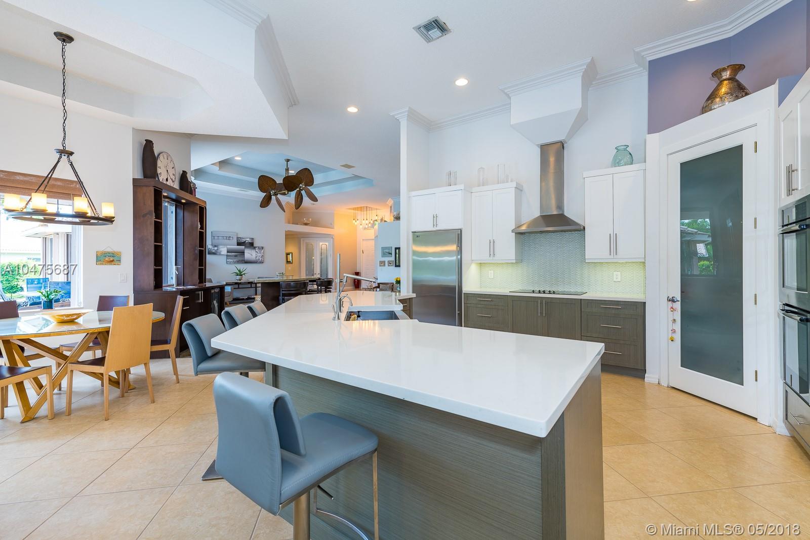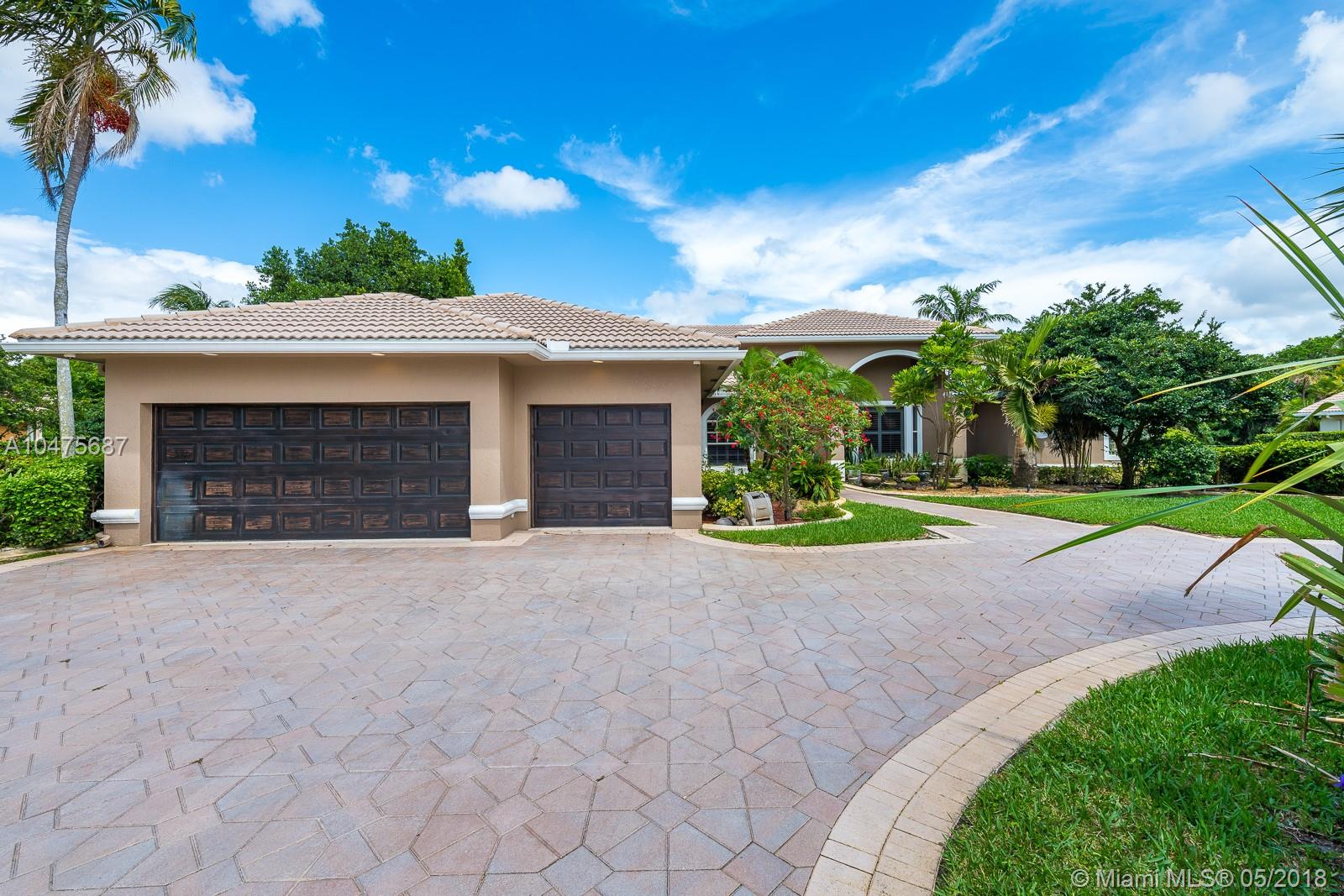 Sprawling 1-story triple split over a builder’s acre within exclusive guarded comm completely remodeled (2014-15) front-to-back. Appointments of sleek marble counter tops, Brazilian hardwood floors, Bosch/KitchenAid stainless steal appliances, living room bar, theatre room, grand floor-to-ceiling windows showcase outdoors boasting poolside, travertine stone, summer kitchen. The addition towards the back of the home extended the Derby model by a third wing, (1000 SF 2 bedrooms | 1 bathroom). Outstanding poolside/summer kitchen encased in sculptured light brick finish, amidst extensive travertine stone flooring. Located off Nob Hill close to A+ schools, quick commutes shoppes and malls, ball fields, and 20 minutes to Fort Lauderdale Airport, and beaches.