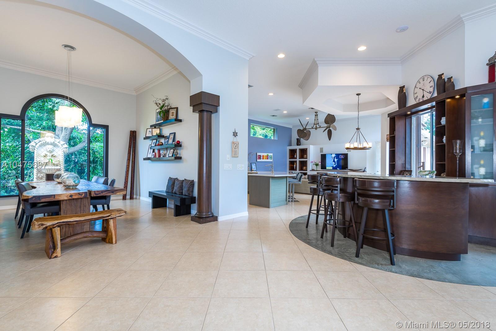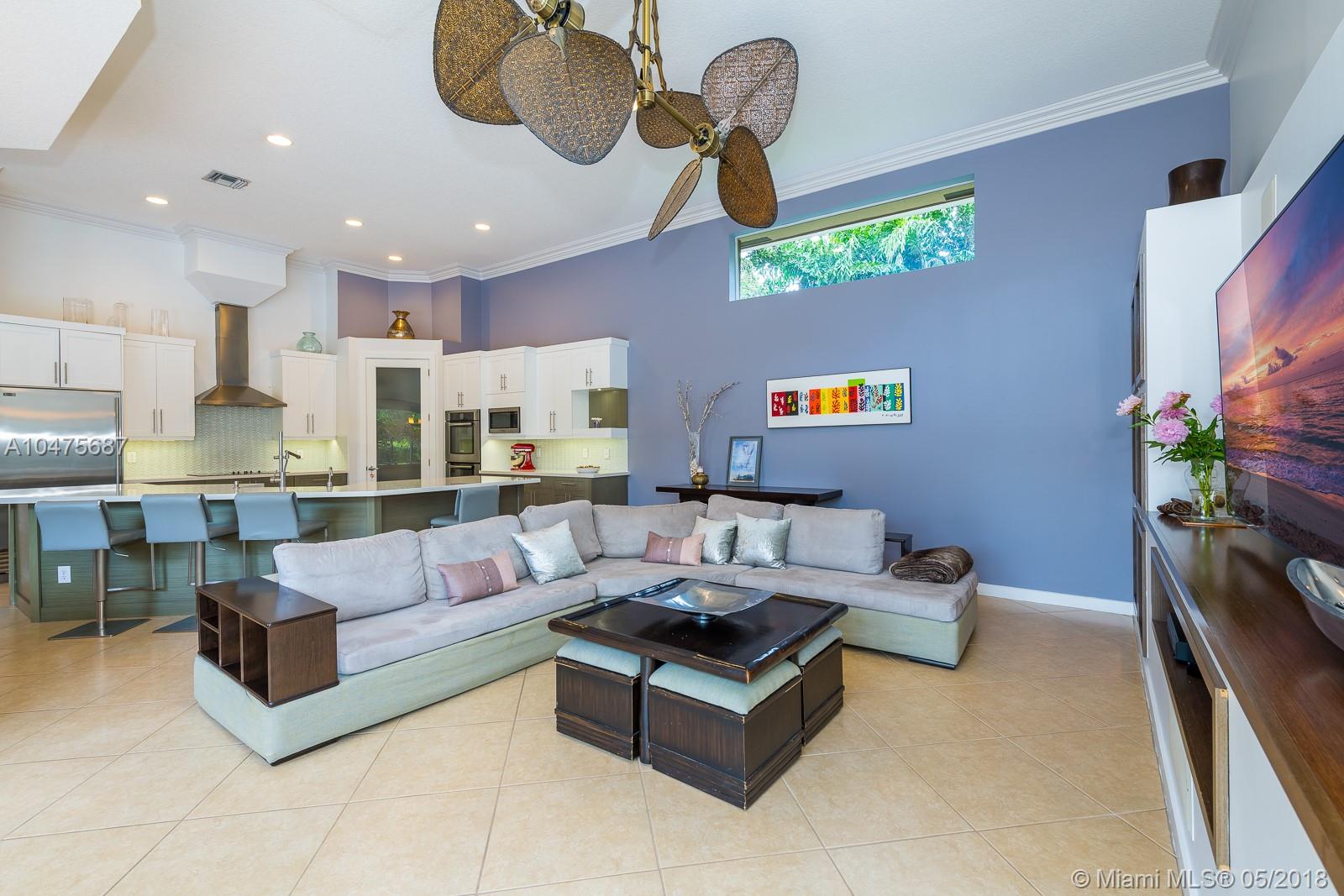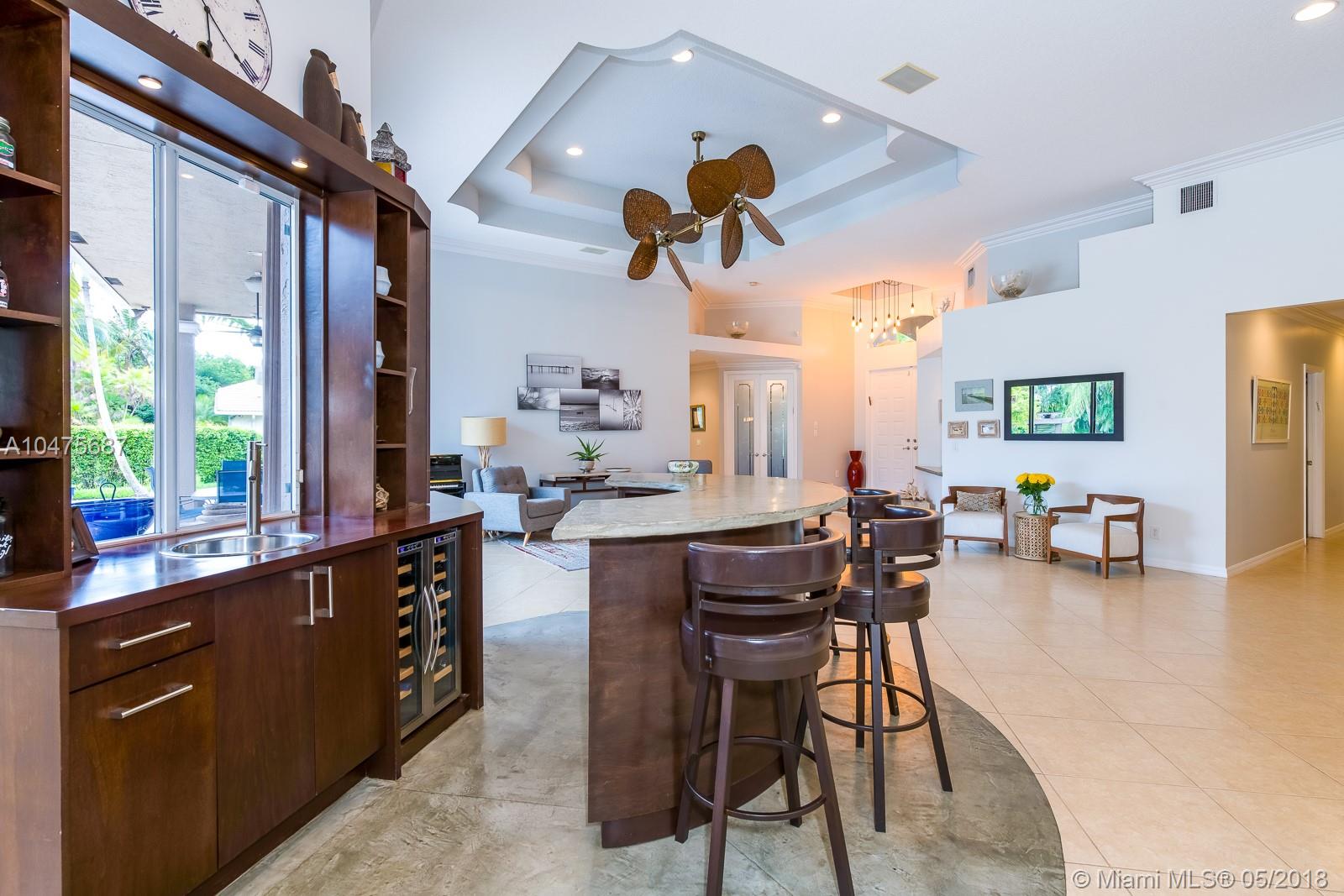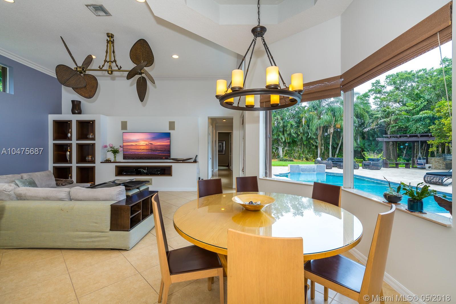 Sprawling 1-story triple split over a builder’s acre within exclusive guarded comm completely remodeled (2014-15) front-to-back. Appointments of sleek marble counter tops, Brazilian hardwood floors, Bosch/KitchenAid stainless steal appliances, living room bar, theatre room, grand floor-to-ceiling windows showcase outdoors boasting poolside, travertine stone, summer kitchen. The addition towards the back of the home extended the Derby model by a third wing, (1000 SF 2 bedrooms | 1 bathroom). Outstanding poolside/summer kitchen encased in sculptured light brick finish, amidst extensive travertine stone flooring. Located off Nob Hill close to A+ schools, quick commutes shoppes and malls, ball fields, and 20 minutes to Fort Lauderdale Airport, and beaches.