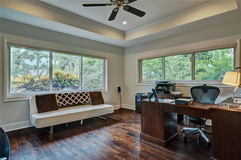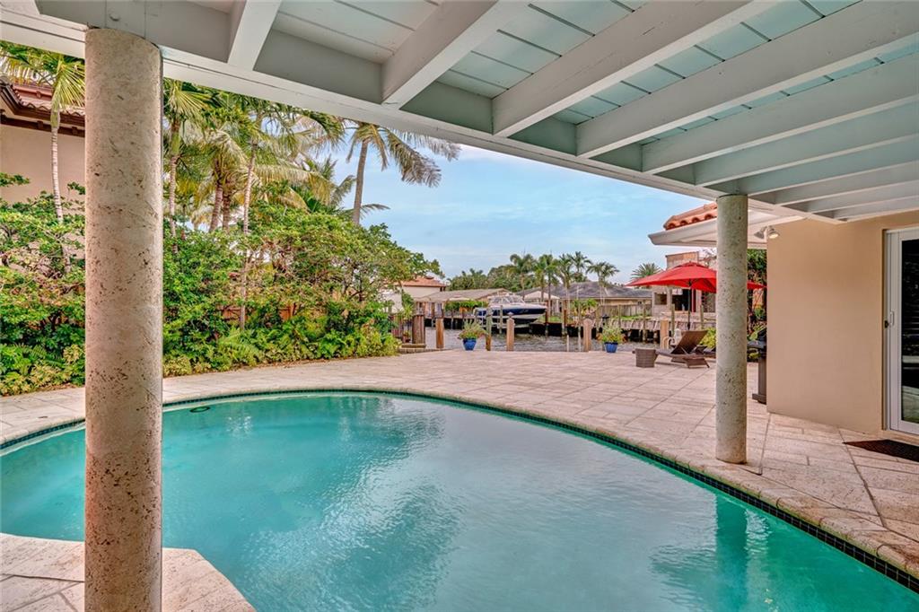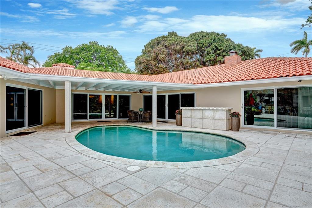 Lush Landscaping Frames this Coral Ridge Beauty, w/Grand Circular Driveway & Great Curb Appeal. Upon Entering you'll be Delighted at the Immediate Open Living Space/ Neutral Marble flrs thru-out. Large Mstr/Bdrm. Sculpted Ceiling-Double Crown Molding. Gorgeous Remodeled Bathrooms, Open Kitchen w/ Island & Tons of Space. A Very Sleek Home w/Wood Fireplace, Impact Windows & Doors, Walk-in Closets, 40' dock w/50 amp Power at Dock Mast/Electric & Water. Heated Salt Water Pool! Rafter Roof Ceiling (Not Truss).