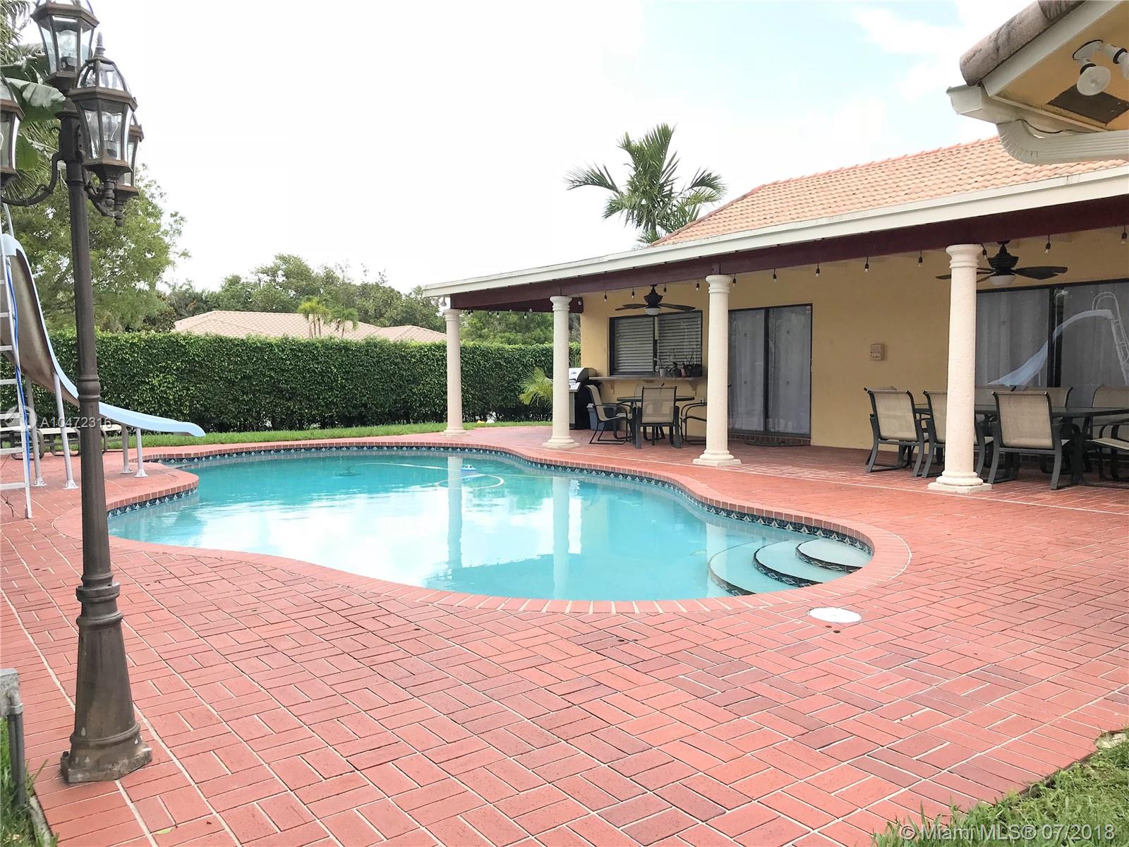 Highly sought after expanded Ambassador model located in Jacaranda Lakes. This one of a kind home features 4 bedrooms and 2 ½ bathrooms. Open concept with lots of room for entertaining or a cozy moment with a book by the double-sided fireplace. Dual zoned air conditioning. Roof replaced in 2007 with impact skylights. Huge fenced in backyard with lavish pool and lush landscaping. Kitchen features granite countertops and stainless steel appliances. Separate laundry with new LG washer/dryer. Property is situated on an enormous corner lot with plenty of green space. Jacaranda Lakes HOA fees are only $489/year. Too many upgrades to list on this perfect family home. All offers considered!