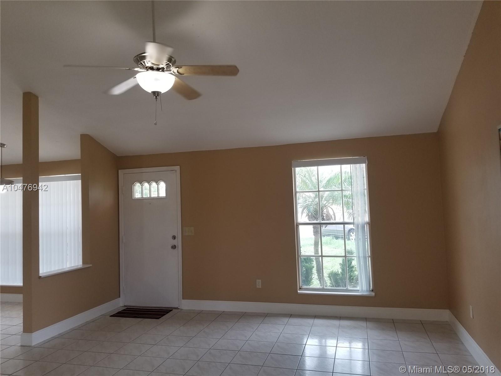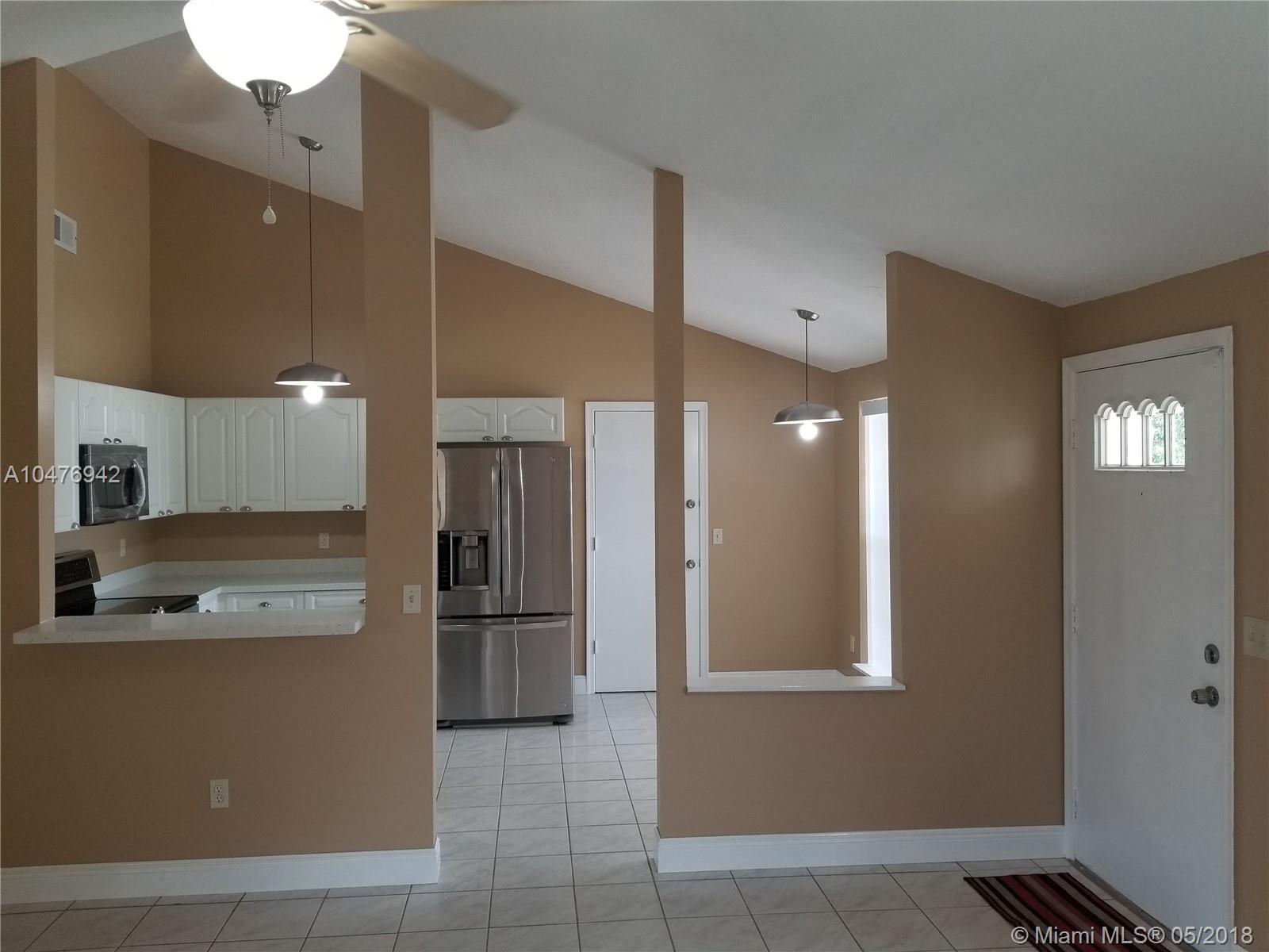 Excellent opportunity to own a beautiful Single Family home in the heart of Miramar under $250K. This adorable home features open floor plan, with new kitchen/bathrooms cabinets and unique white Quartzite Rock Counter tops. Freshly painted interior/exterior with neutral colors. Newer Stainless steel appliances. Brand new ceiling texture and baseboards to improve the beauty of this cozy home. Large screened patio for family relaxation with a huge backyard. Gorgeous tile flooring throughout, spacious floor plan with volume ceilings and new blinds/verticals covering windows. Property management company currently doing major landscaping and other improvements to beautify the community and increase property value. Low HOA fee, $28.00 per month.