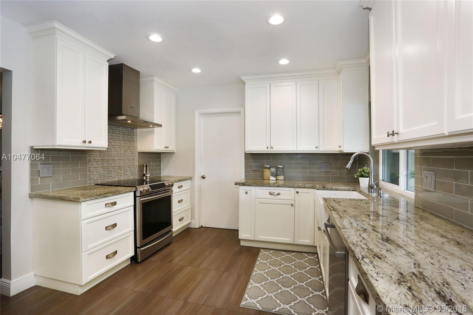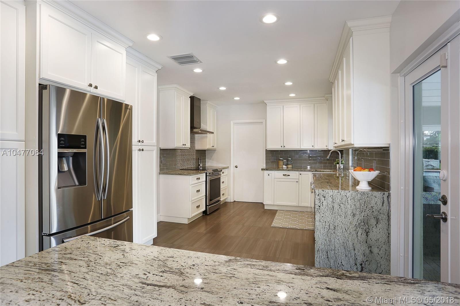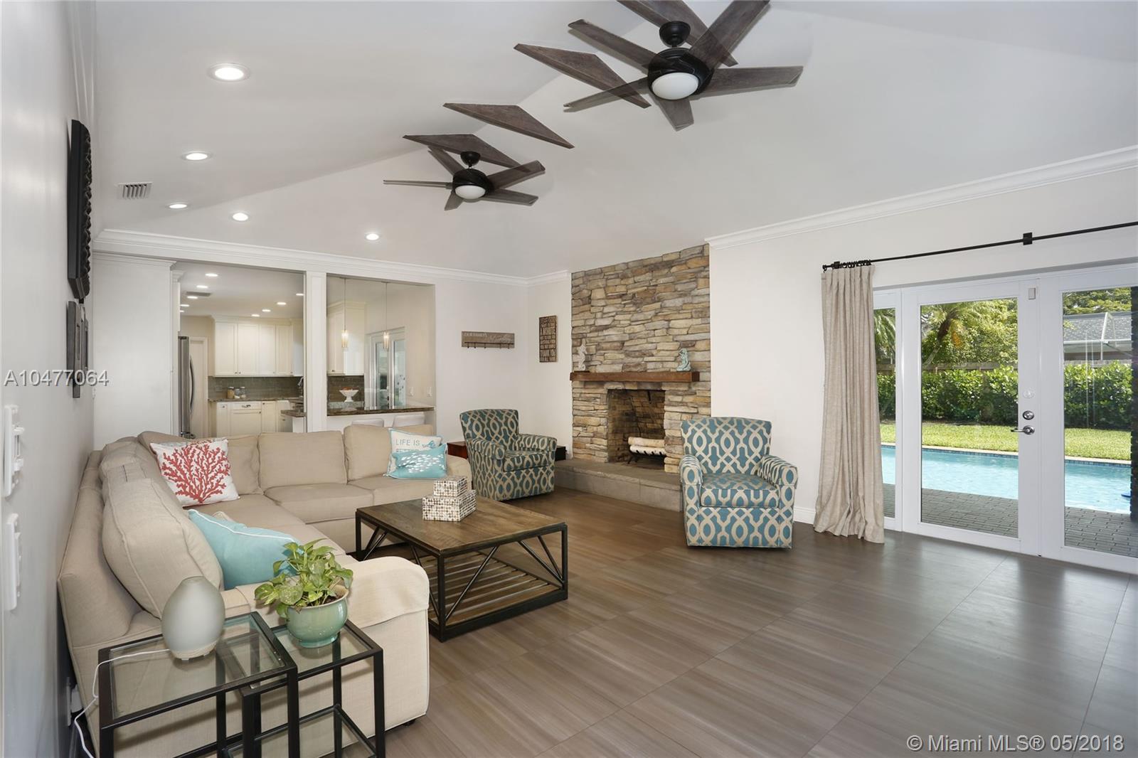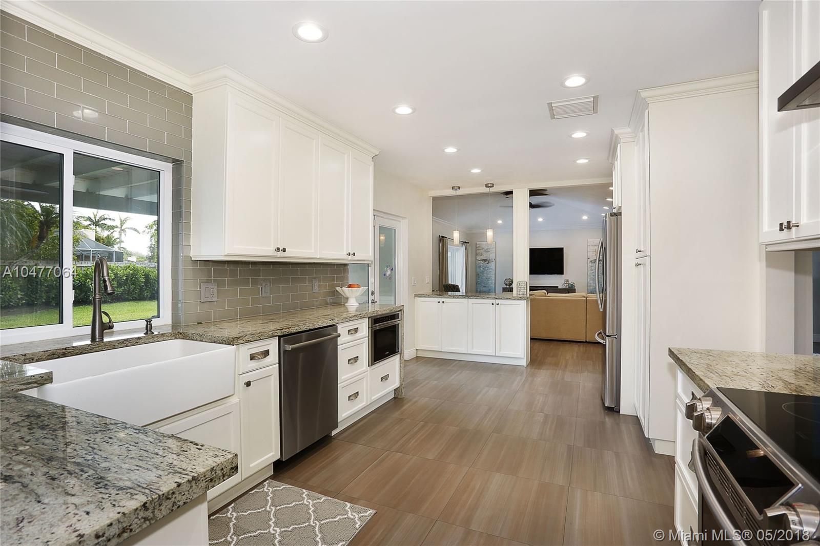 Situated on an 18,079 square foot corner lot in the quiet heart of Pinecrest, this 4 bedroom, 3.5 bathroom home has been completely renovated to perfection! Beyond the foyer entry you will find the living room with bay window, formal dining room, and gorgeous kitchen with cascading granite counters and fresh white cabinetry. The family room enjoys vaulted ceilings, a fireplace, and French doors opening to the deep patio and pool beyond. The master suite includes a huge closet that was once a 5th bedroom and could be again, plus a large, elegant bathroom. The home features hurricane impact windows and doors, plantation shutters, laundry room, 2 car garage, newer roof, porcelain floors, and so many more wonderful details. Bring your toothbrush and move right in!