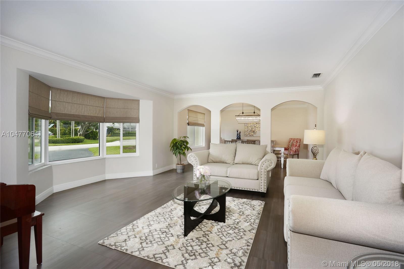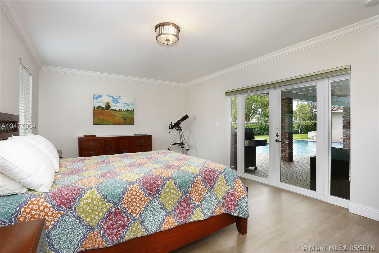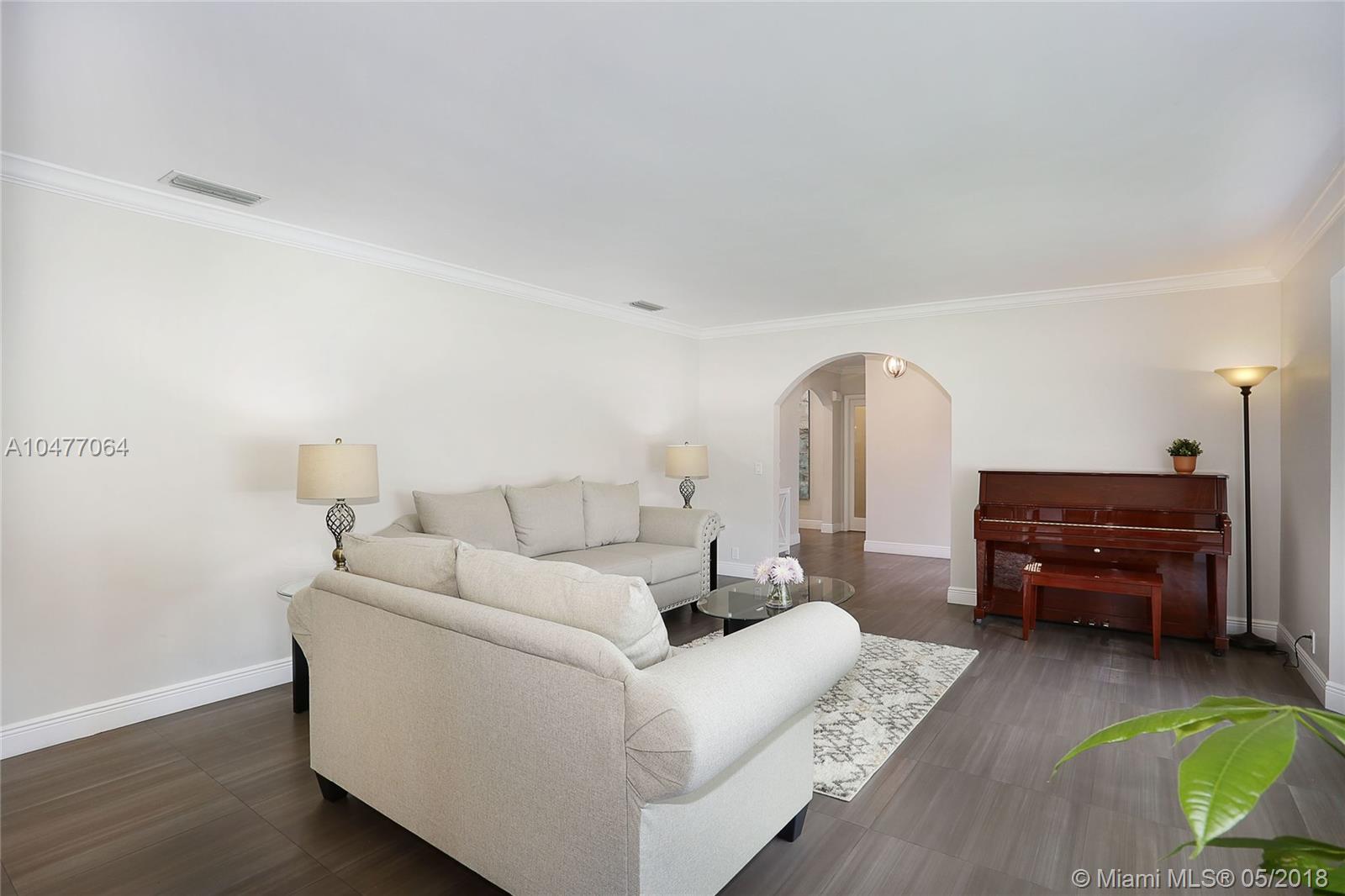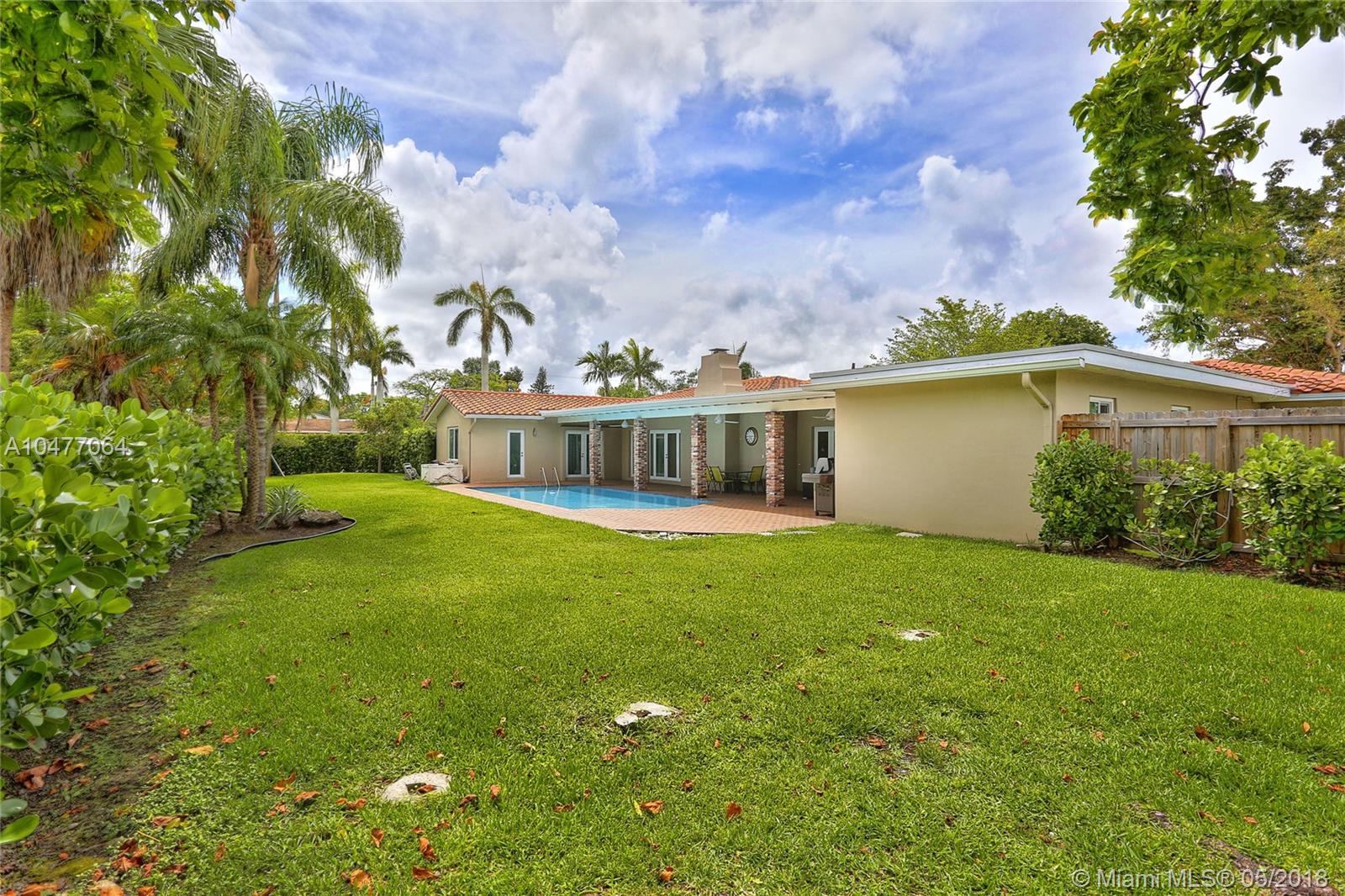Situated on an 18,079 square foot corner lot in the quiet heart of Pinecrest, this 4 bedroom, 3.5 bathroom home has been completely renovated to perfection! Beyond the foyer entry you will find the living room with bay window, formal dining room, and gorgeous kitchen with cascading granite counters and fresh white cabinetry. The family room enjoys vaulted ceilings, a fireplace, and French doors opening to the deep patio and pool beyond. The master suite includes a huge closet that was once a 5th bedroom and could be again, plus a large, elegant bathroom. The home features hurricane impact windows and doors, plantation shutters, laundry room, 2 car garage, newer roof, porcelain floors, and so many more wonderful details. Bring your toothbrush and move right in!