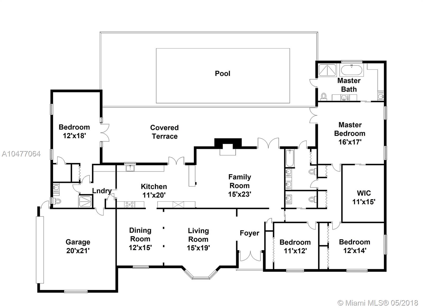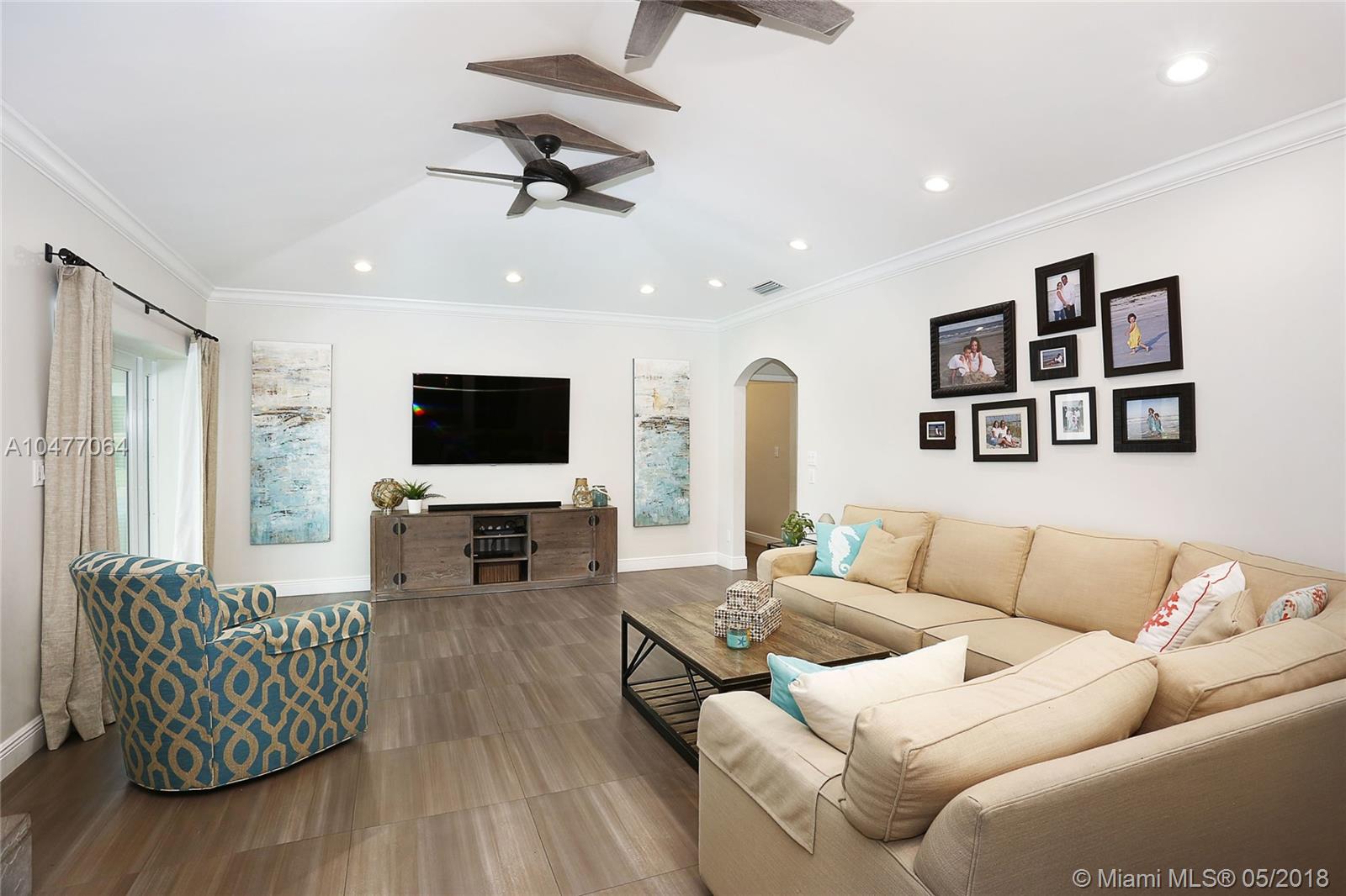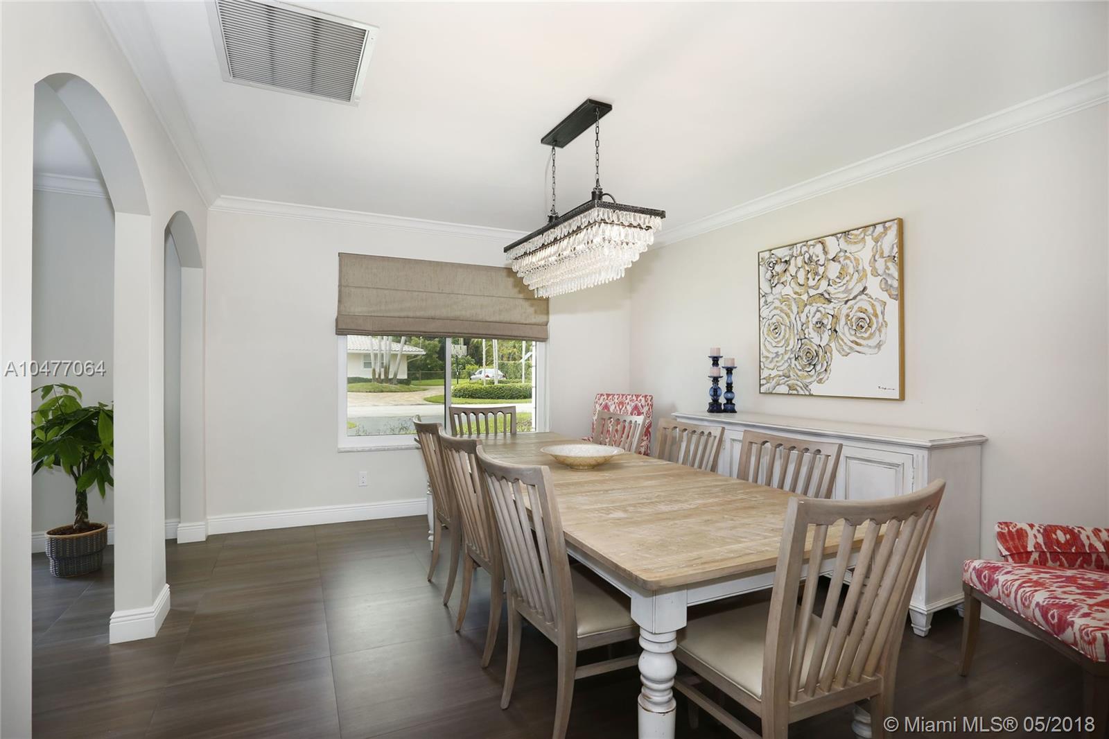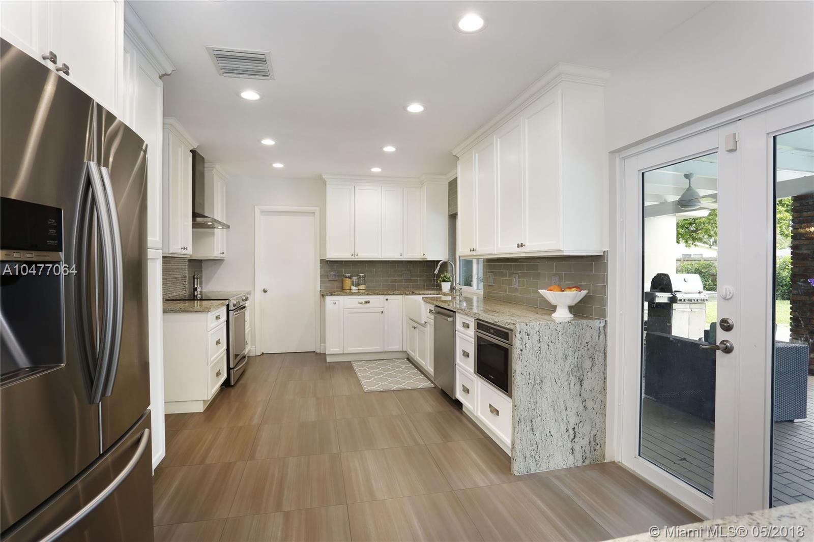 Situated on an 18,079 square foot corner lot in the quiet heart of Pinecrest, this 4 bedroom, 3.5 bathroom home has been completely renovated to perfection! Beyond the foyer entry you will find the living room with bay window, formal dining room, and gorgeous kitchen with cascading granite counters and fresh white cabinetry. The family room enjoys vaulted ceilings, a fireplace, and French doors opening to the deep patio and pool beyond. The master suite includes a huge closet that was once a 5th bedroom and could be again, plus a large, elegant bathroom. The home features hurricane impact windows and doors, plantation shutters, laundry room, 2 car garage, newer roof, porcelain floors, and so many more wonderful details. Bring your toothbrush and move right in!
