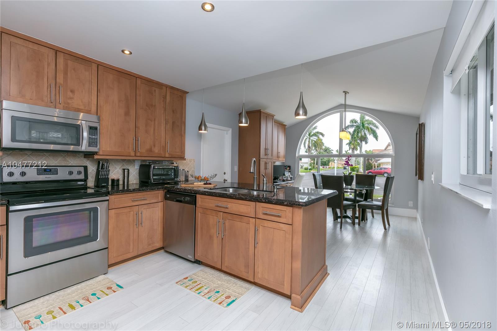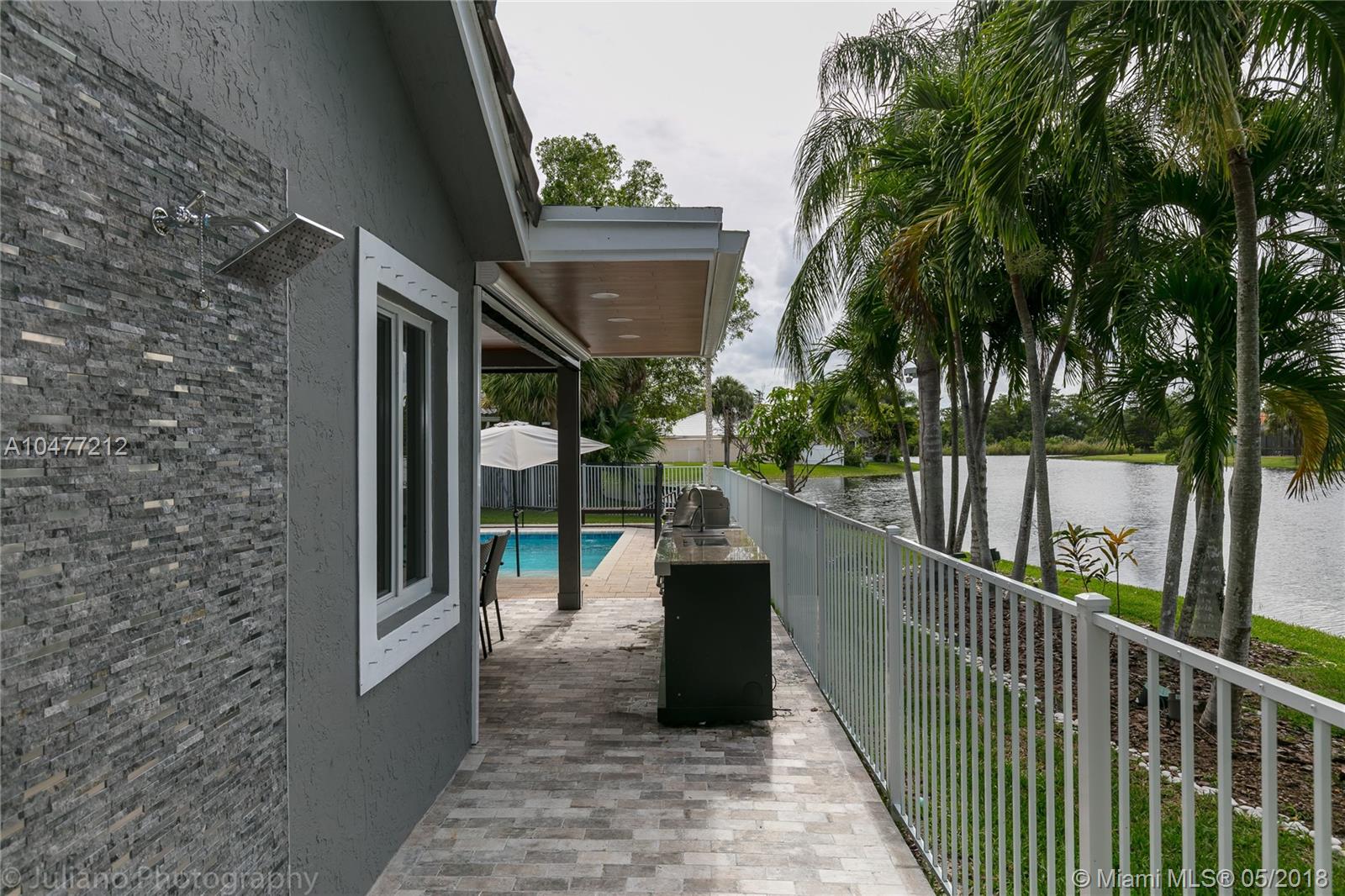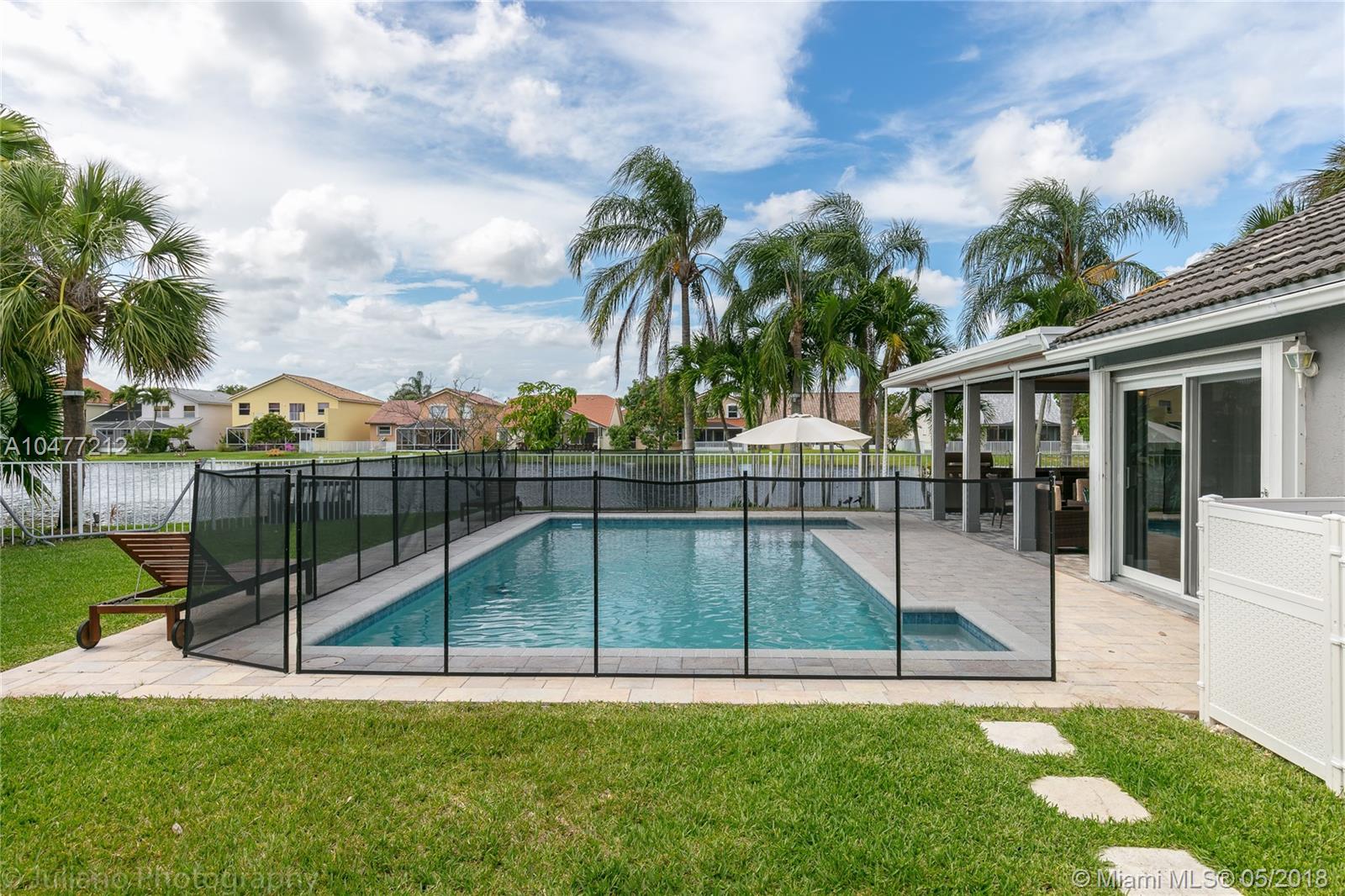 Gorgeous single family home at Boca Chase (Impressions) on a great cul-de-sac lot. Completely renovated home 3/2 with 2 car garage, waterproof laminate floors throughout, tastefully renovated bathrooms, open eat in kitchen with wood cabinets and granite counter top, stainless steel appliances, owner spent $35,000.00 on impact windows and hurricane shutters, patio customized with bamboo ceiling, retractable screen, bluetooth speakers, gigantic pool 30x16 with heater, outdoor shower, summer kitchen with marble top, sink and fridge, beautiful lake view, too many great features. Excellent location and great schools. READY TO MOVE IN!!! (furniture negotiable)