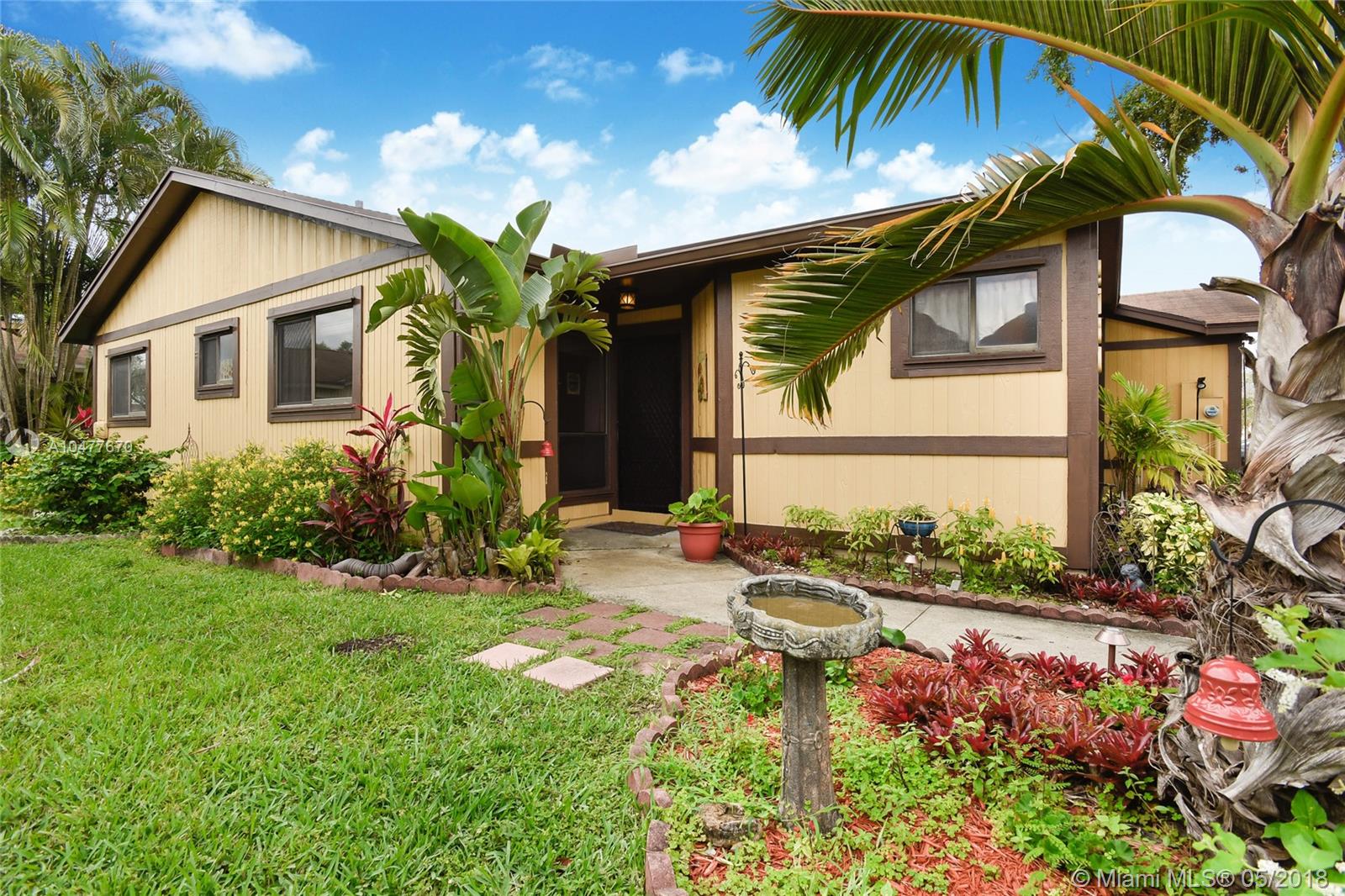 Charming townhome in Desirable Miramar. 3 bed, 2 bath with a garage. Corner lot with lush gardens. Great living/ dining area with vaulted ceilings with kitchen & additional living space. Large bedrooms with walk in closets. Separate room for washer and dryer plus a small attic. Roof & AC less than 5 yrs old. Quiet and safe neighborhood close to great schools . Resort Style amenities such as basketball court, pool, playgrounds, pavilions for gatherings. Walk to publix, restaurants. A 5 min drive from new Pines City Center. 10 Min away from Pembroke Gardens Mall. 10 mins from turnpike and i-75. Low hoa fees, Security guard on premises at all times. Home won't last ! Call listing agents for showings. CURRENT CONTRACT WILL BE CANCELLED ON FRIDAY 6/22/18. LISTING WILL BE CHANGED TO ACTIVE.