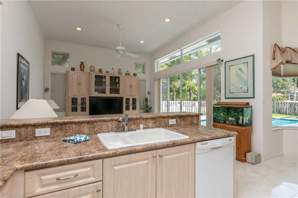 Light and bright is the best way to describe this move in ready 4 bedroom / 2 full bathroom pool home! Enter through the double door entry and you will immediate notice the volume ceilings and views of the covered patio and pool area. Home features an open kitchen, a spacious family room, formal dining and living room. Roof was replaced in 2012, water heater in 2017, alarm system + 8 security cameras, fenced yard, and hurricane shutters. Low annual HOA!