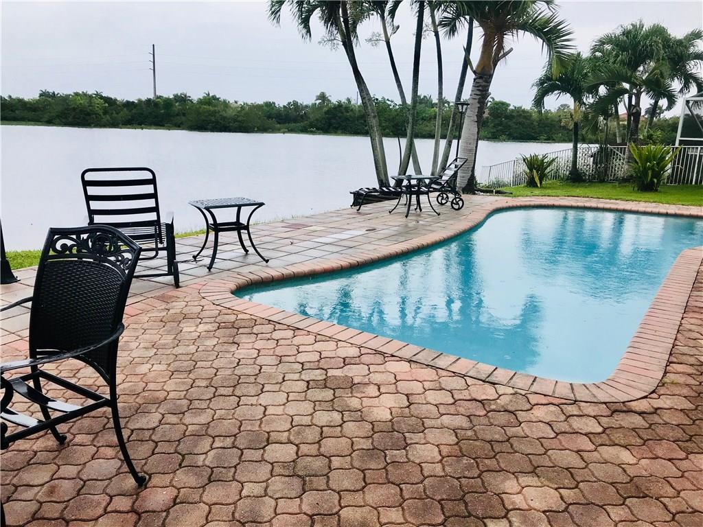AMAZING deal for this beautiful 5 bedroom home!!! Located in the Silver Lakes Community of Miramar. This LOVELY home is sitting on the wide portion of the lake. Enjoy beautiful sunsets from the screened-in patio and your private pool. Modern dark chocolate colored cabinets, granite countertops, and SS appliances in the kitchen which opens to the family room or dining rm. Fenced-in, large back yard. 2 car garage. No carpet! Neutral tile throughout 1st floor and laminate flooring upstairs. All bedrms upstairs with 2 full bthrms, and 1/2 bth downstairs. Washer and Dryer set up in laundry room. Seller extremely motivated!