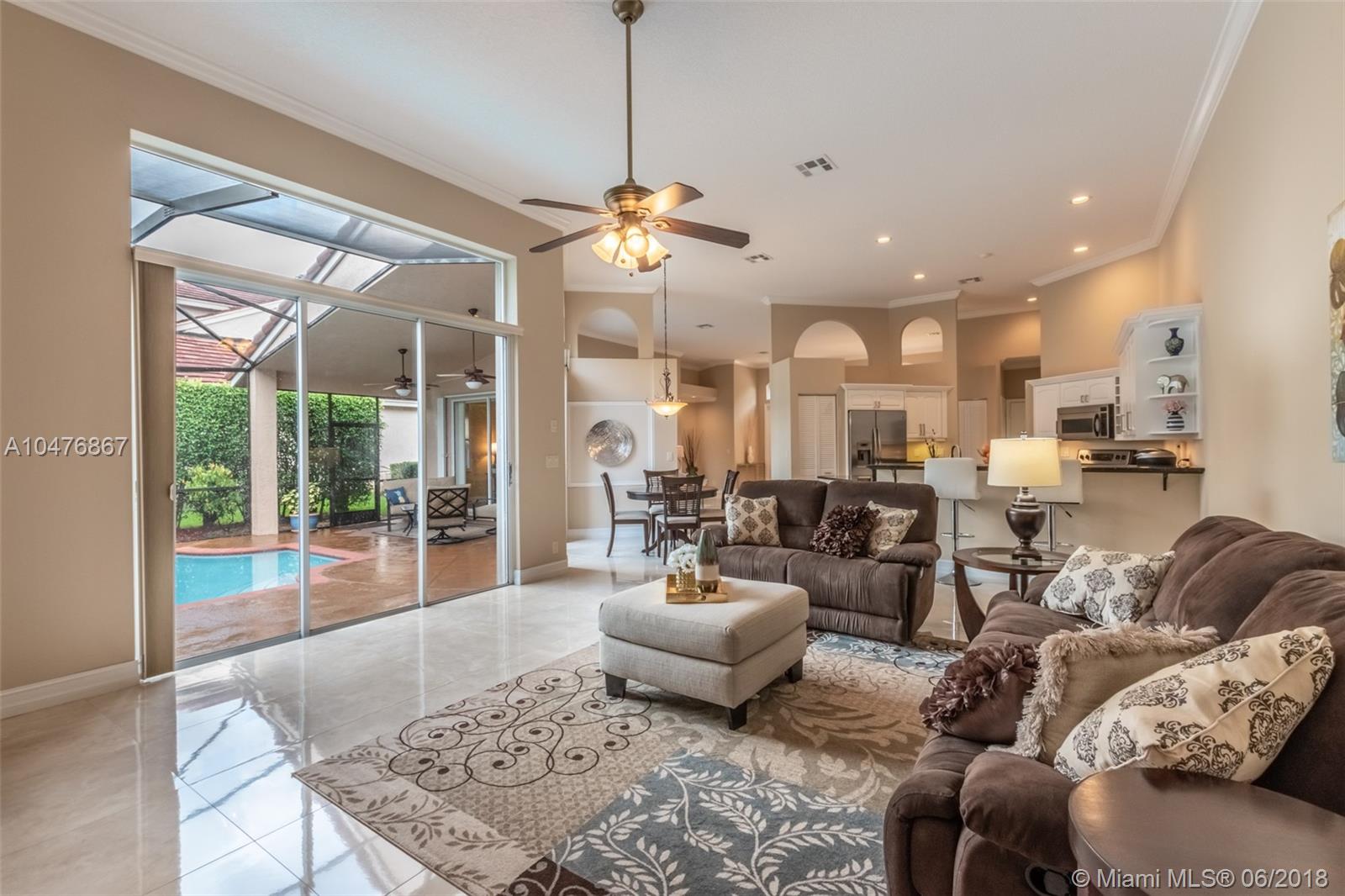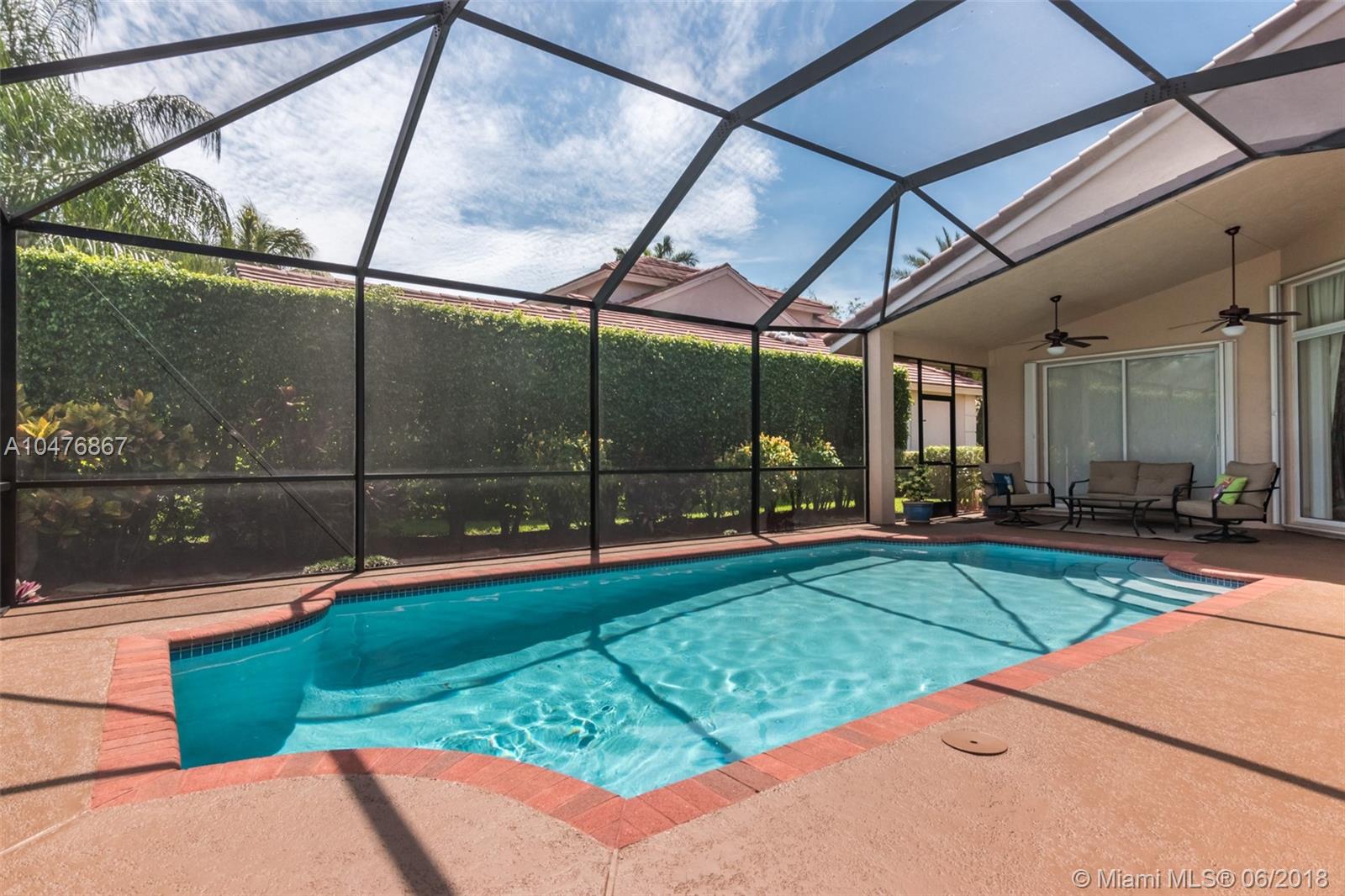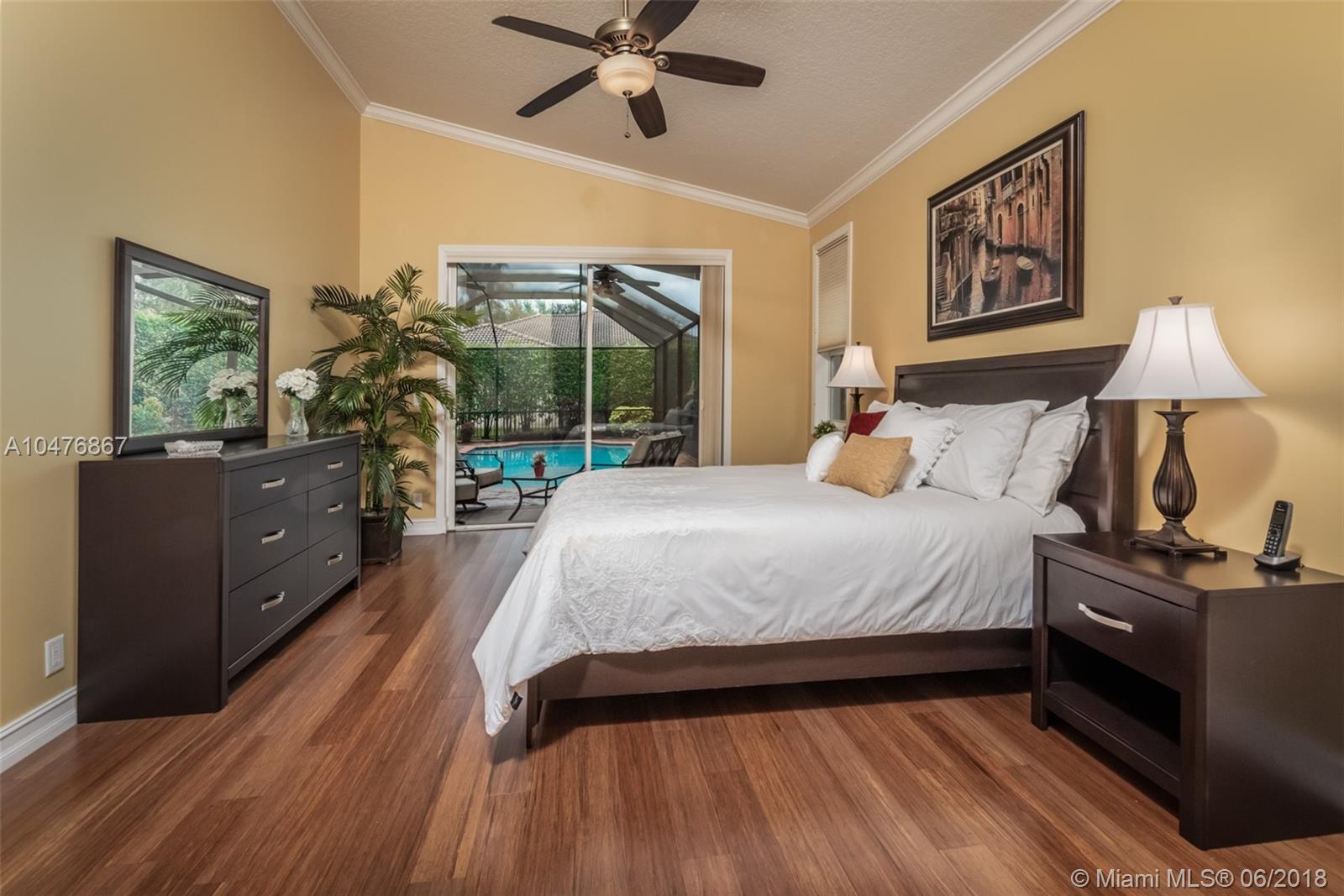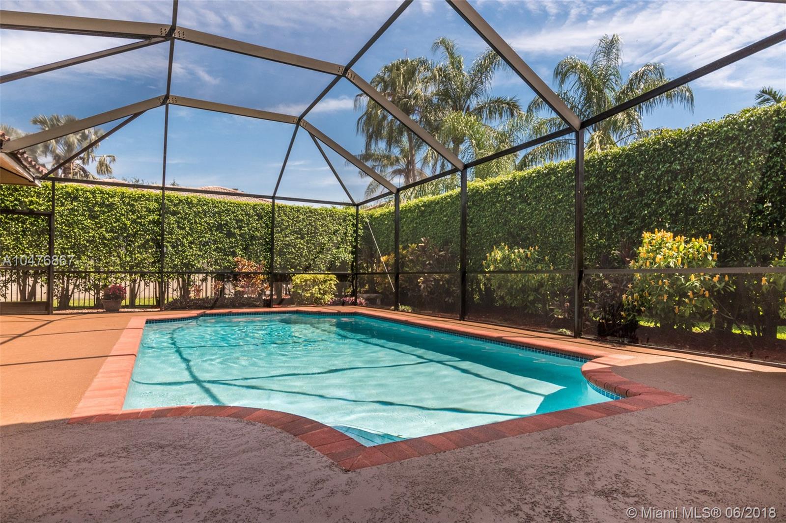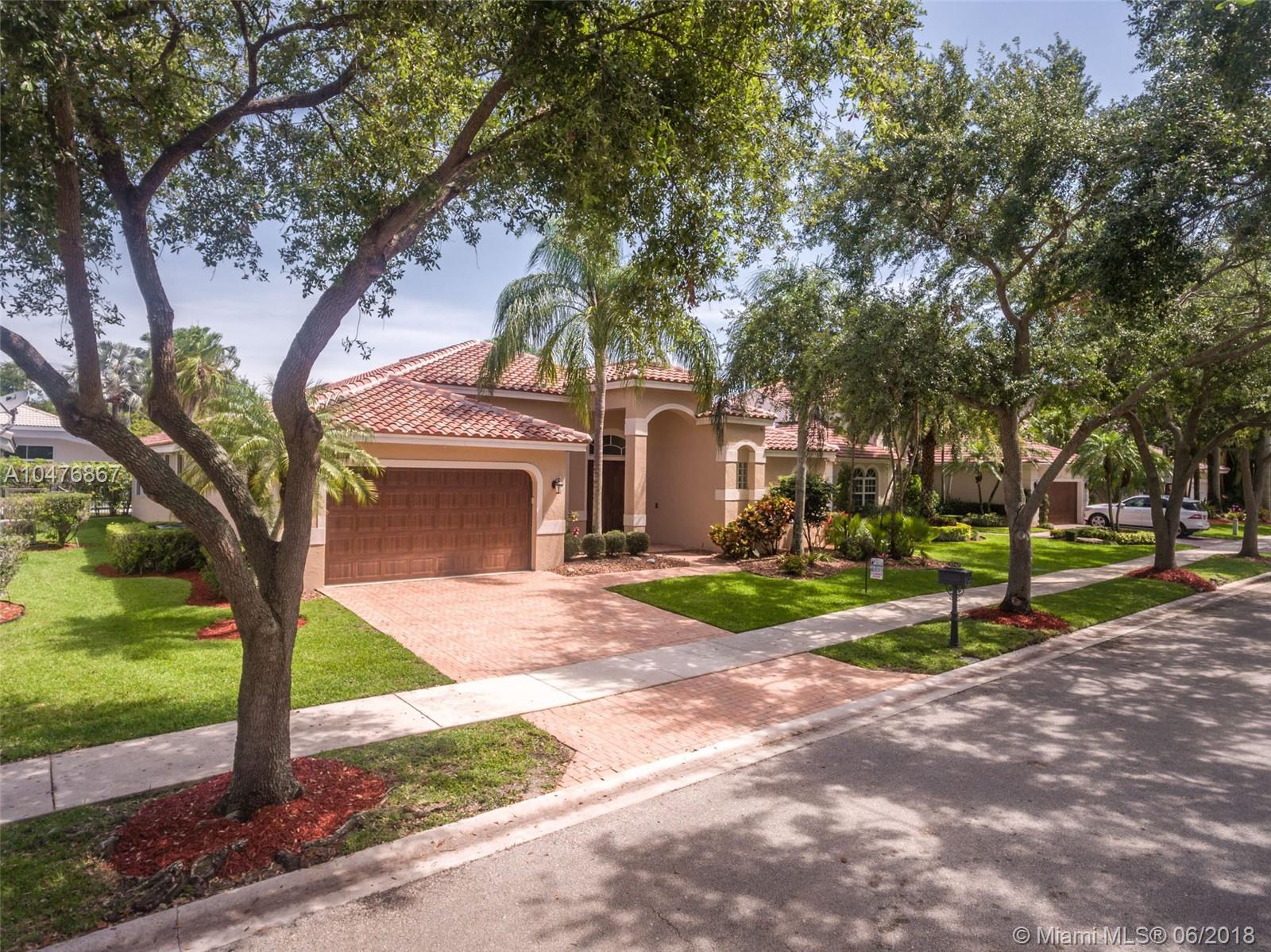 Tucked in the boutique community of Oakbrook at Weston Hills Country. Enjoy your Brand New roof, 2017. Oversized screened pool with cool deck and newer diamond bright. Freshly painted interior in todays colors. Renovated kitchen with upgraded appliances and granite countertops. Three renovated baths. 24x24 tile in living areas. Hardwood floors in master bedroom with volume ceilings. Full accordions, ficus hedged for ensured privacy. 5 spacious bedrooms with 3 full bath including cabana. Great curb appeal.