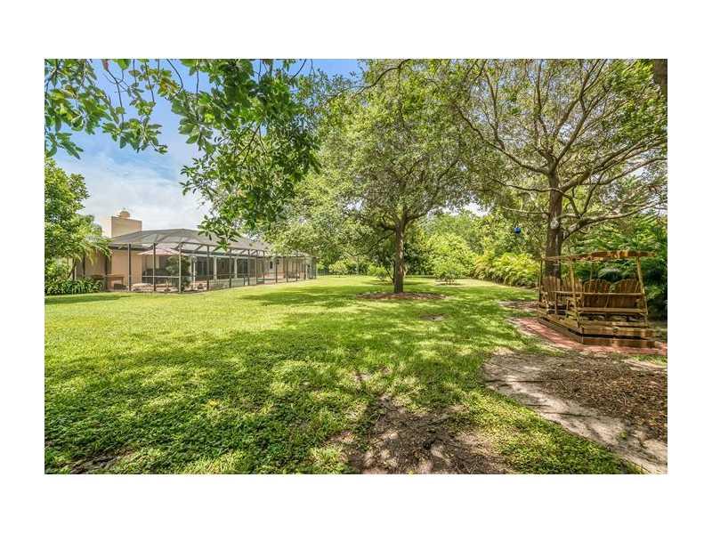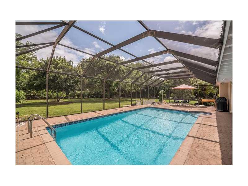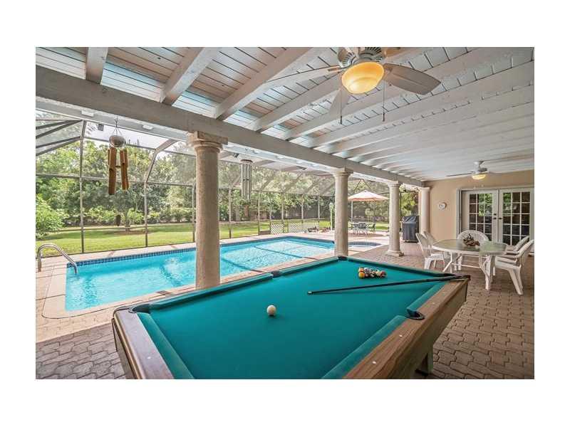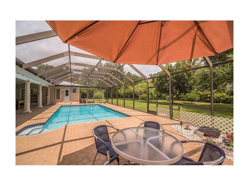 Lovely 5 bed/2 1/2 bath home in Pinecrest. This warm & inviting home sits on an expansive 38,768 sq ft lot. Home features spacious formal living & dining rooms. Huge family room w/ beautiful brick fireplace. Spacious kitchen offers lots of natural lightin g, beautiful wooden cabinets, granite countertops and tiled backsplash. French doors lead to the splendid partially covered patio, w/ tongue & grove ceilings, & screened pool. Indoor laundry room. Metal roof, impact windows, & accordion shutters.