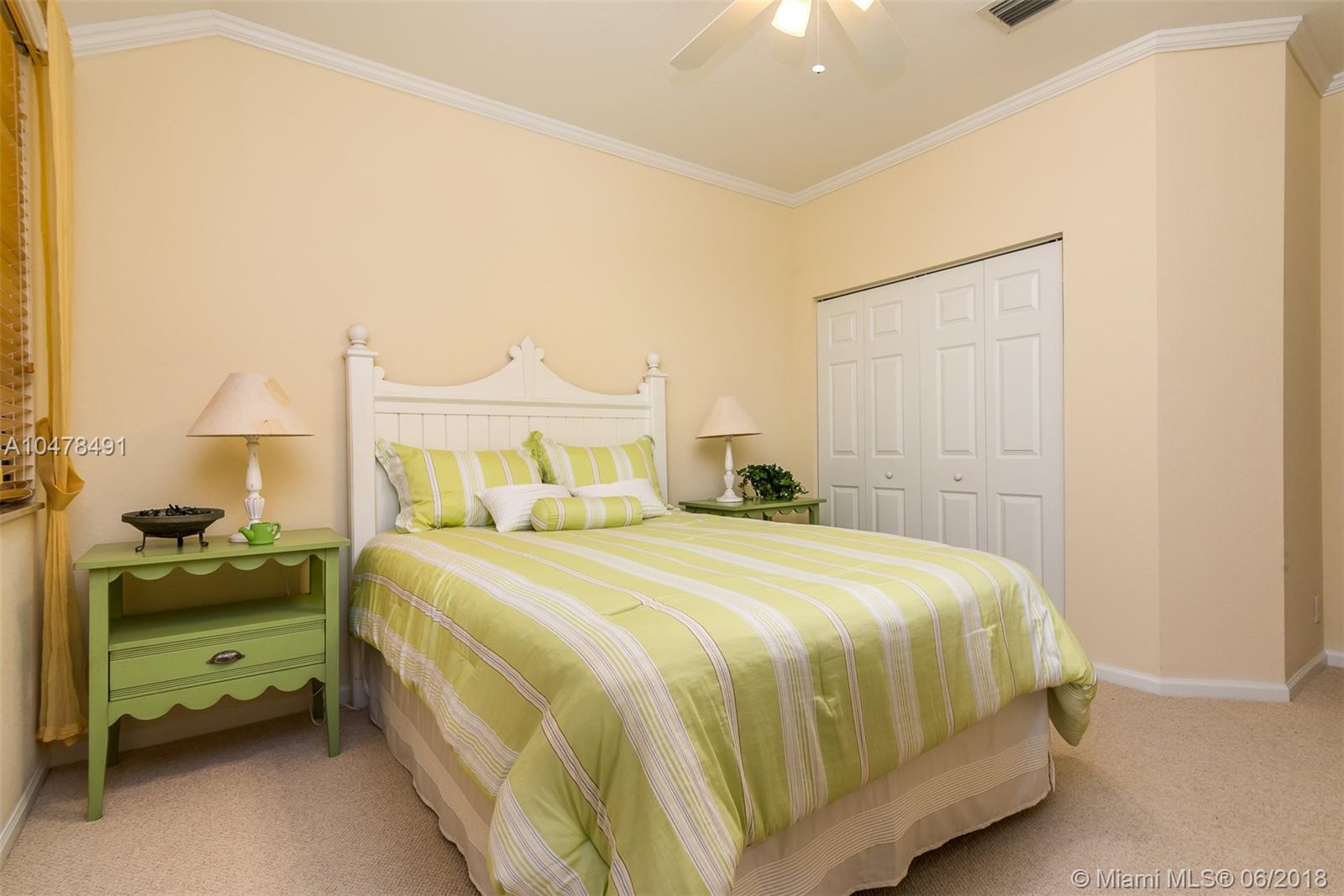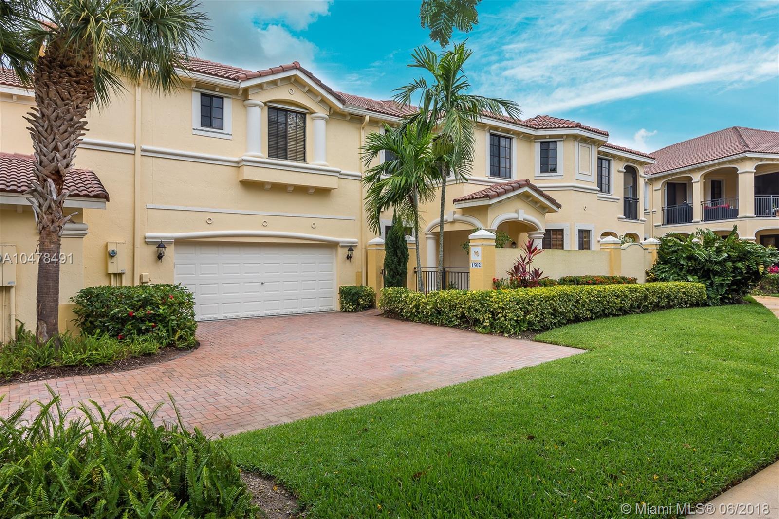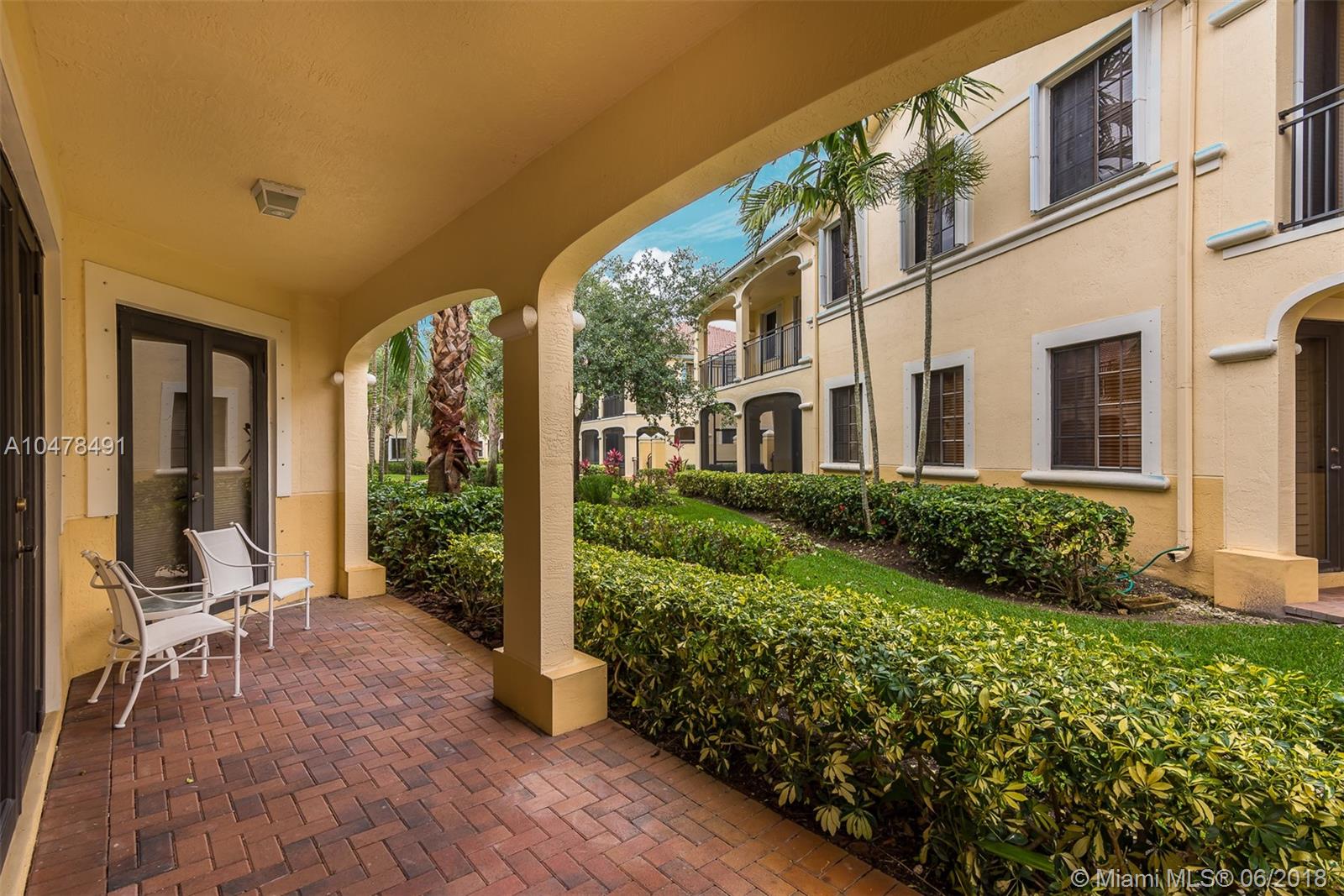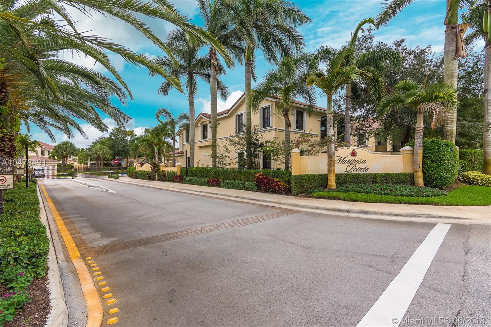 First floor coach home in the desirable Mariposa Pointe at Weston! This 3 bedroom (3rd bedroom used as den – no closet) 2 bath home w/ a 2 car garage is a short walk to Publix, restaurants and shops at Weston Town Center. This corner MODEL with a long private access driveway and extended private courtyard is the best 1st floor unit at Mariposa! and boasts an abundance of builder upgrades including maple cabinets, wood floors in living areas, crown moldings, and professional decorations. Master Bath has been remodeled with porcelain tile and his and hers showerheads. A/C and water heater both replaced in the last few years. Home is in perfect move in condition with all furniture included! Come enjoy this maintenance free lifestyle in the lush tropical landscape of Weston!
