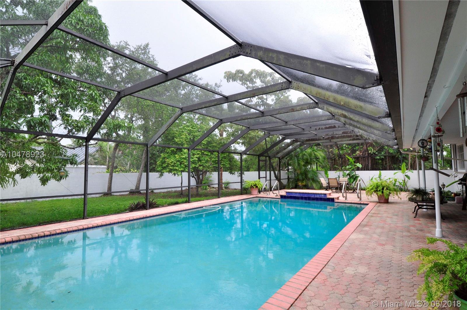 THE BEST PRICED HOME IN NORTH EAST Pinecrest! Steps from Pinecrest Gardens & Library. Fantastic opportunity to live in this coveted Pinecrest Elementary location. Large 32,234 sq ft corner lot, 4 bedrooms, 3 Baths and spacious great room: living room with wood burning fireplace, family room overlooking the pool, & dining room (just off the kitchen). The oversized side-entry 2-car garage w/ abundant side parking. Home offers a flexible split-plan with 3br & 2 baths on the south of the house and 1 br & 1 bath + office on the 2nd floor on the north side of the house. Pool area w/ large dome screen leads to a large walled backyard & huge side yard, with mature Oaks, fruit trees: Avocado, Mango, Star fruit, & Lychee. Great opportunity to add your personal touches and make this home yours!