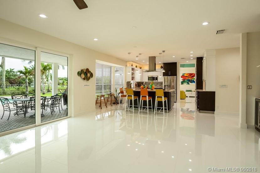 4 Bedroom 3.5 Bathroom Renovated "2016" Home 5,050 sf living w/extra large porcelaine tile floors, Kitchen Quartzite Counter tops "Angelus" White Acrylic Cabinets Custom Made Hardwood Drawers, Double oven w/convection oven, Kenmore Elite Appliances, Hooded Electric Range in center Island auto-sensored lighting throughout home, Formal Dining, Expansive Media Room, Formal Living Room, Family Room over-looking pool Lg open loft 2nd Fl, Master Bedroom w/Large private patio overlooking pool and canal, All Bedrooms are oversized w/large closets, (2) Fireplaces, 4 AC zones (3) Plantation Acres located near lots of amenities great beaches, incredible shopping, some of the finest restaurants in the world & amazing first class entertainment. Easy access to I-95, the Turnpike & airports