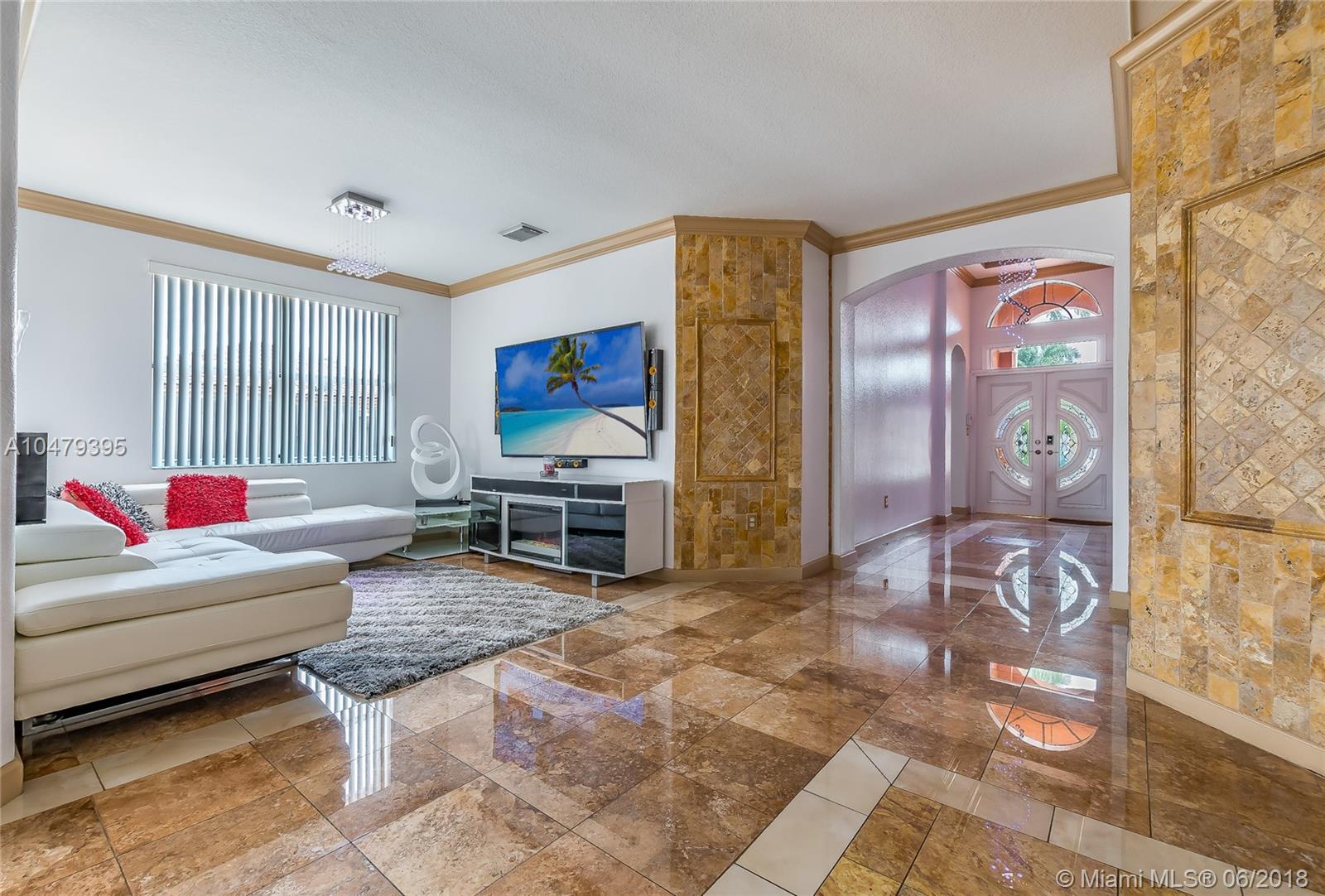 A true gem in Islands at Doral... FOR SALE! Gorgeous 4 bedrooms & 3 bathrooms, 1-Story Single Family Home, completely remodeled with luxurious details, marble floors, granite counter tops, custom built kitchen cabinets, kitchen island, stainless steel appliances, stone walls in bathrooms and living room, paved patio, swimming pool with slide and deck, jacuzzi and more! Located in the beautiful neighborhood of Galapagos II. Excellent location near schools, parks, main roads, entertainment, shops and more! Don't miss the chance to make this beauty your Dream Home!!!