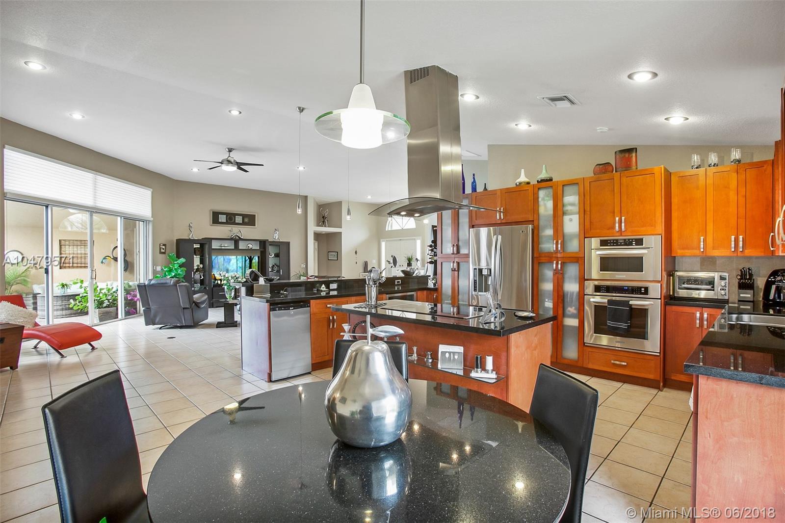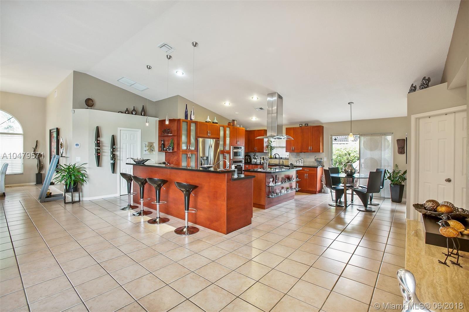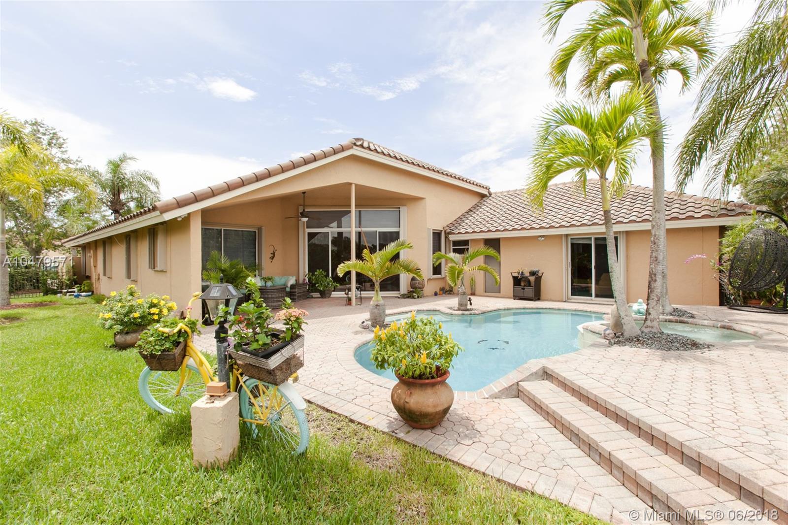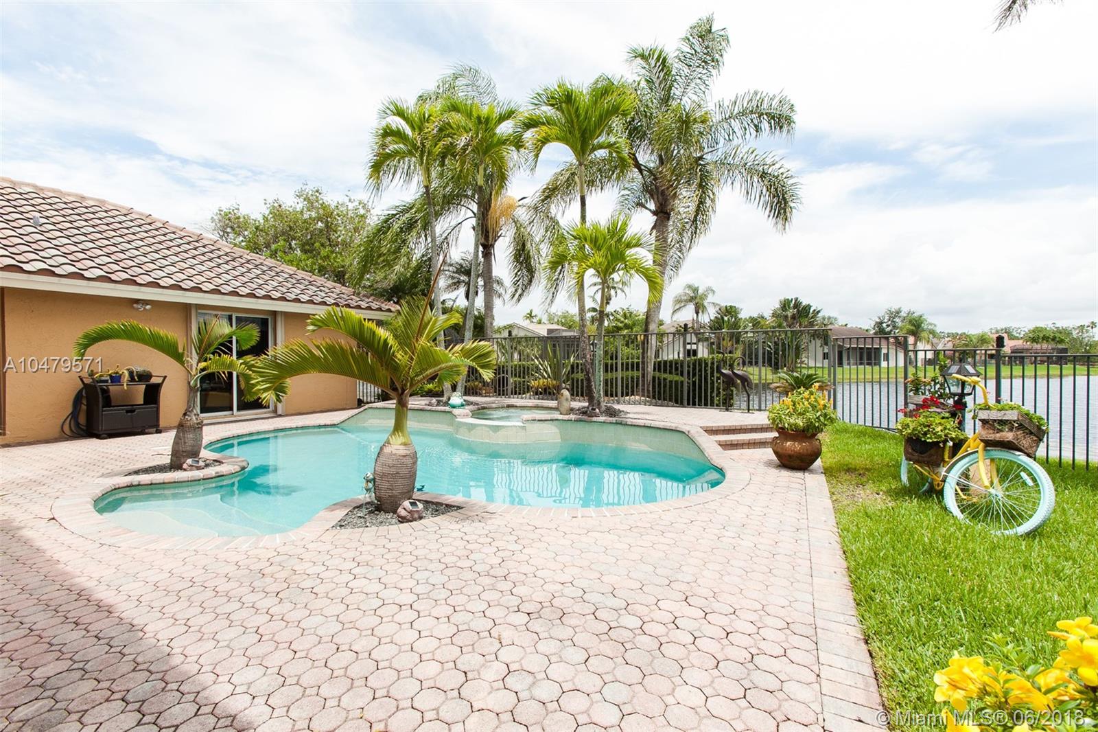 Absolutely Impeccable!! Remodeled one story waterfront home w/ pool, Beautiful and spacious kitchen with granite counter-tops and top of the line stainless steel appliances. This 4BR/2.5BT is simply gorgeous and a perfect home for a family. Neutral color tiles in living areas and wood floors in bedrooms. High ceilings, Large Master Bedroom with walk-in closets. Pool area overlooking the lake. Accordion Hurricane shutters. This is the lowest priced 4 BR, waterfront property w a pool in Weston Hills!