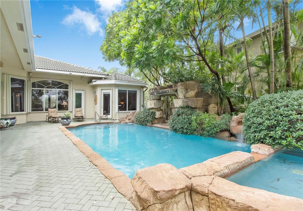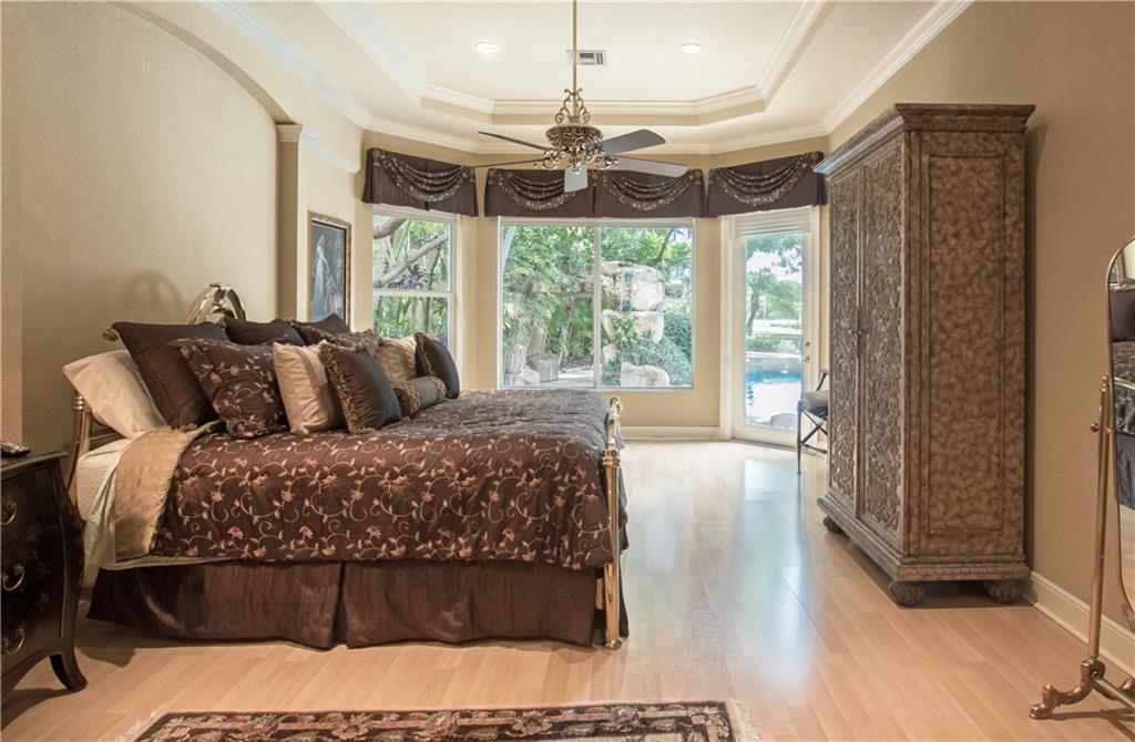 SPECTACULAR POOL HOME ON A BREATHTAKING WATER LOT. 5 BEDS, 4 FULL BATHS & 3 CAR GARAGE. DRAMATIC ENTRANCE W/ CUSTOM GLASS FRONT DOORS OVERLOOKING LAKE. KITCHEN HAS UPGRADED WOOD CABINETS, SS APPLIANCES & GRANITE TOPS. SPACIOUS MASTER W/ COFFERED CEILINGS, CROWN MOULDING, HIS & HER CLOSETS. THE MOST AMAZING & LUSH ROCK WATERFALL POOL & SPA YOU HAVE SEEN! LARGE FORMAL LIVING, DINING ROOM & FAMILY ROOM. BREAKFAST AREA & A BUTLERS PANTRY W/ BUILT IN WINE COOLER. MOSQUITO MIST SYSTEM, CUSTOM TREATMENTS!