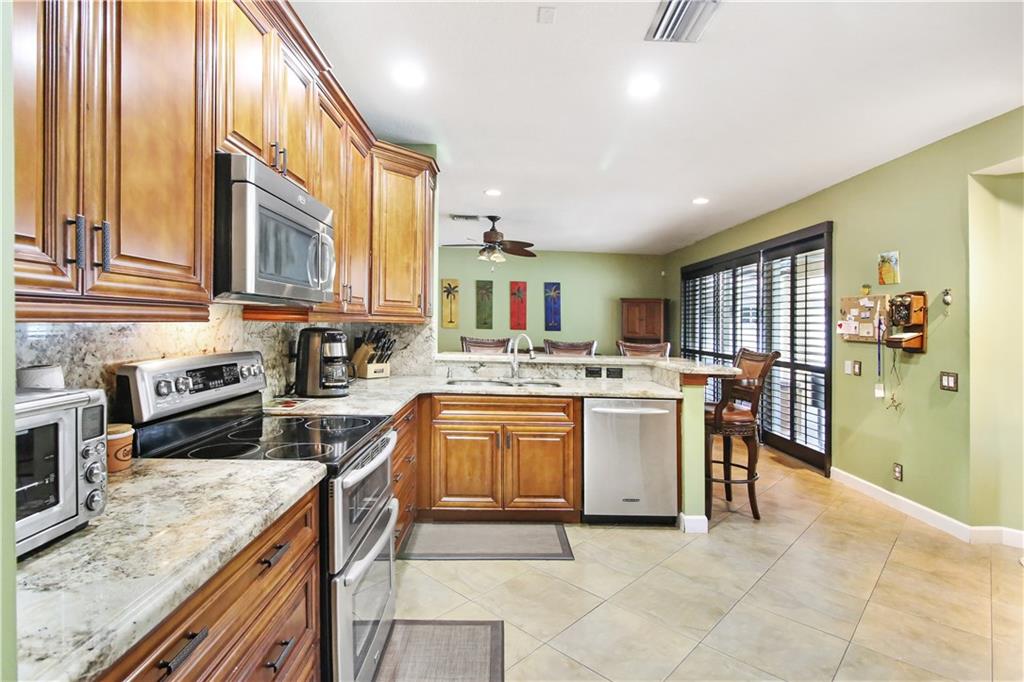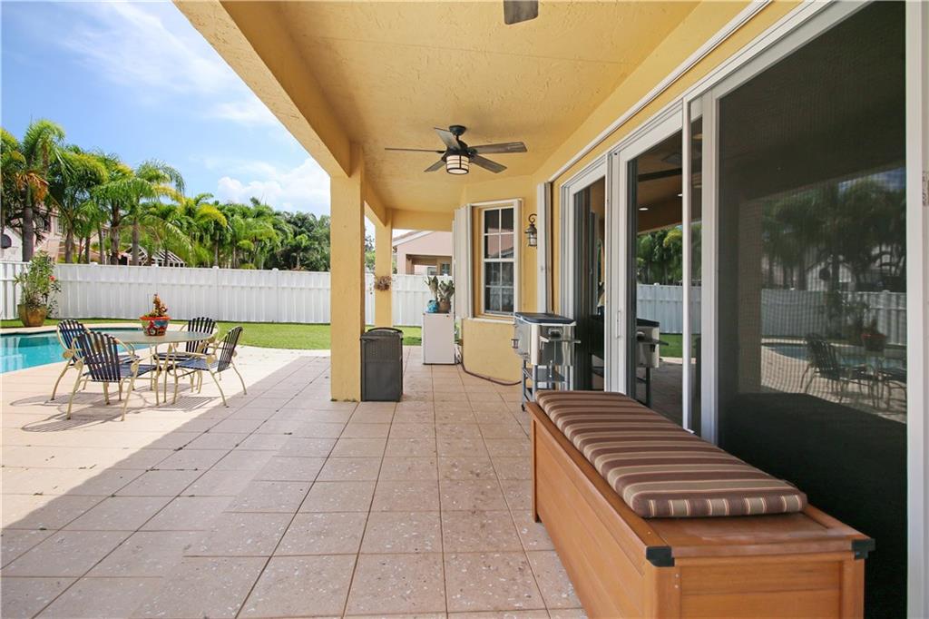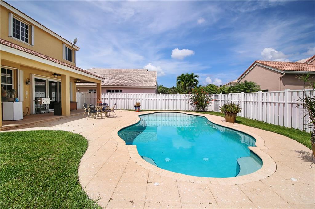 Largest and rarest Devonshire Fifty model with salt-water system pool. Freshly painted exterior. Over-sized master with sitting room/office. Kitchen and bathrooms recently renovated. Kitchen boasts granite counter tops and stainless steel appliances. All back doors have sliding plantation shutters. New AC installed last year. Washer/dryer are brand new. Enjoy living in this beautiful gated community with A+ rated schools, basketball courts, volleyball courts and playground. Close to YMCA mega-complex.