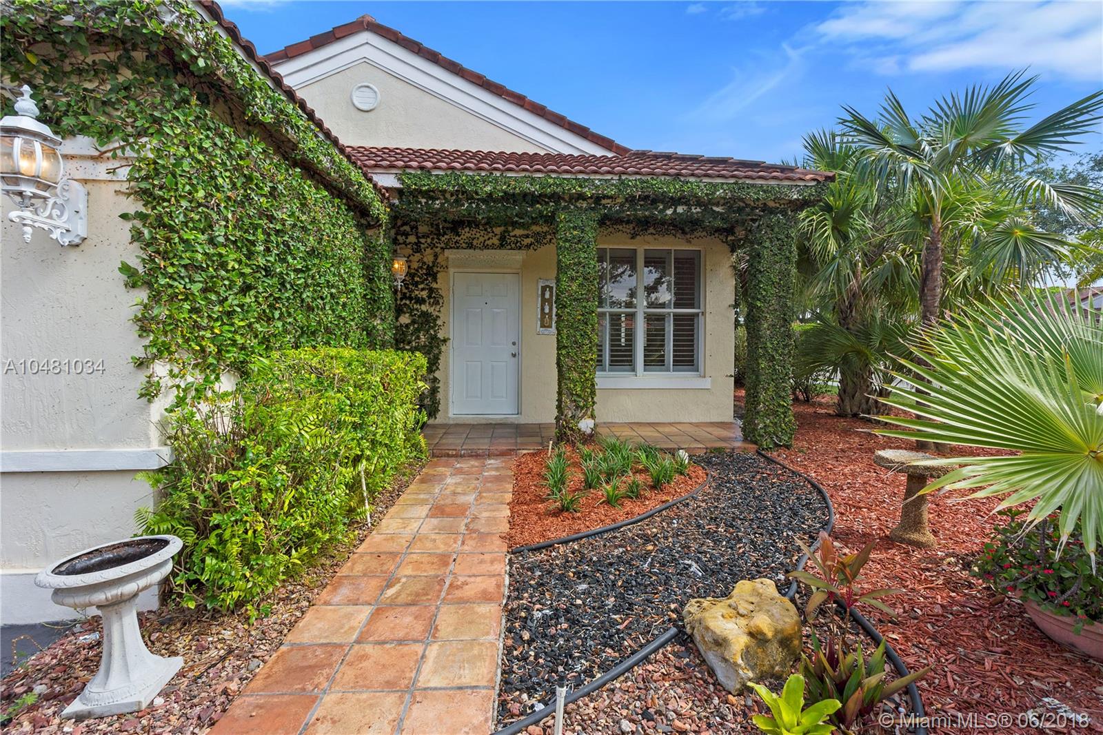 Charming beautiful corner home in a desirable neighborhood at "The Falls" gated community. This three bedrooms/ 2 bathrooms home features spacious rooms and bathrooms, tile floors throughout main areas and wood floors in bedrooms, plantation shutters and French doors. Great A+ schools and conveniently located. Has been freshly painted in neutral colors. Ready for you to move in... Don't miss on owning this great property!!