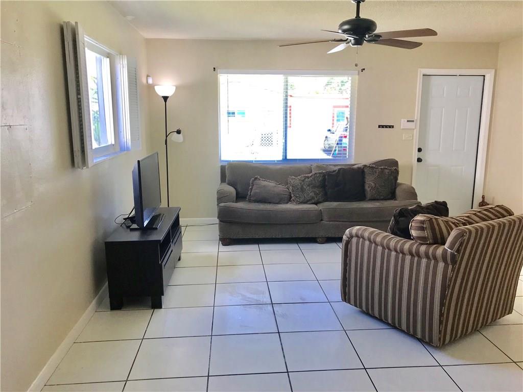 Cute as can be 2/1 in great little hidden gem of a neighborhood! All ages welcome in this centrally located community. Updated kitchen and bath, panel doors, hurricane impact windows , AC only 2 years old and updated electric- Great enclosed bonus room in the back with inside washer and dryer laundry area. Low maintenance fee of $113.00 mo includes lawn front and back, painting every 5 years FREE GOLF and pool and clubhouse. Did I mention FREE GOLF?!