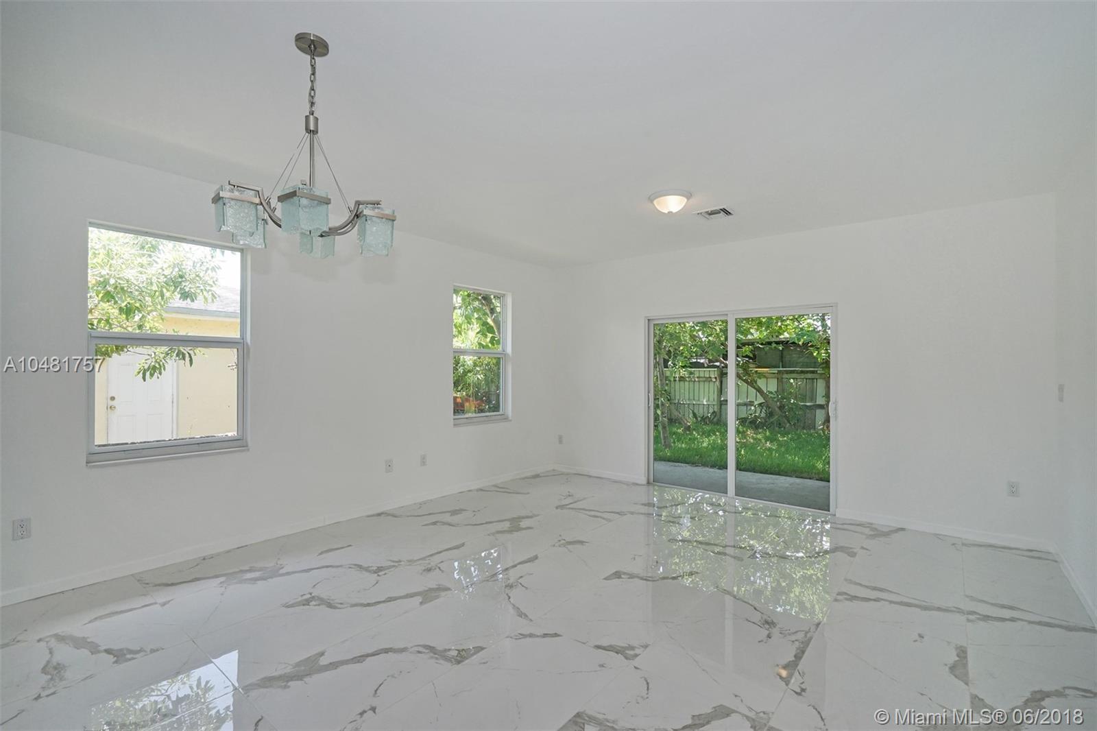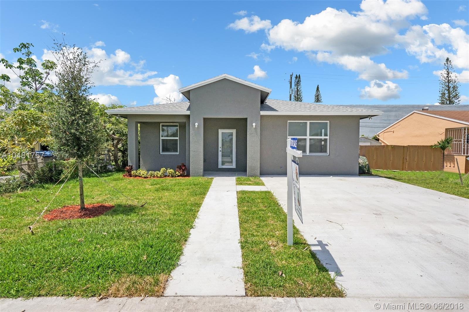 Brand New Construction In Hollywood! 4 Bedrooms, 2 Bathrooms, 1,700 SqFt. Green backyard, beautiful open porch. Large windows with impact glass for a lot natural light in the rooms, porcelain floors throughout the whole house. Kitchen Counter top in quartz and cabinets in wood w LED lights, all new appliances, includes washer and dryer. Bathrooms counter tops in quartz and wood bathroom's vanity. Ceiling fans and central cooling in every room. Very clean design for all tastes. Construction: All outside walls are concrete. Interior wall has metal frames and drywall. Do not miss the opportunity to own this cozy and modern new home!