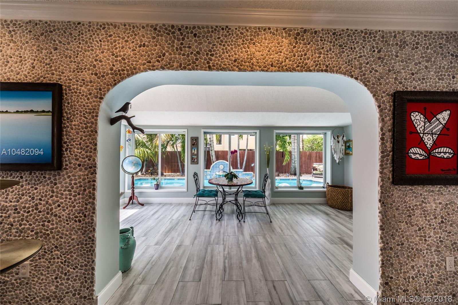 You'll surely fall in love with this gorgeous remodeled corner home! Amazing open floor plan design with vaulted ceilings for the whole family to enjoy. Great kitchen with lots of cabinet space, stainless steel appliances including a gas stove. A chef''s dream! Spacious first floor master suite has remodeled, dual vanity sinks and walk in shower and tub. Other features include, impact windows throughout the house, custom closets, bonus room and much more! Step outside and enjoy your own private tropical oasis in your own backyard. Come see it for yourself!
