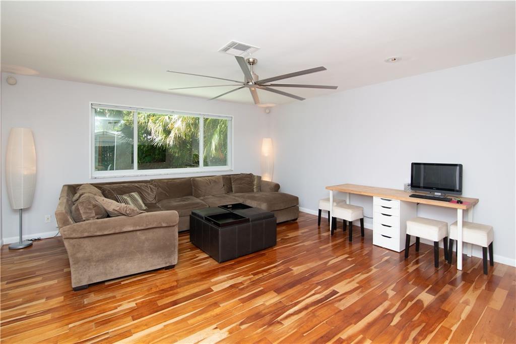This exceptional pool home is located on a great street in Emerald Hills. It offers an over-sized 3 bed/ 2 bath, + bonus room. The updated interior includes a full master bedroom and zen bathroom renovation, with closet system, home office nook, impact windows, and pool view. A chef's eat-in kitchen with counter depth fridge, double ovens, butcher block and marble islands. It also comes with many available smart home features. Outside is a professionally landscaped yard, mature queen palms, and lanai