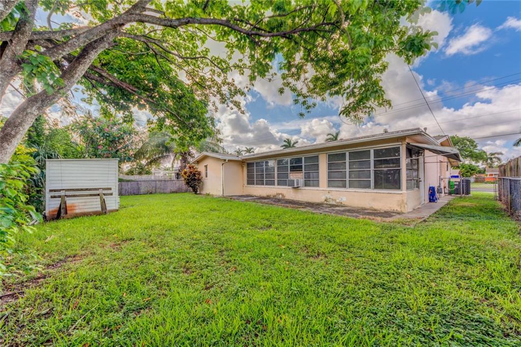 Spacious 2/2 with huge Florida room! This house is ready for your personal touches! Nice size fenced in back yard/side yards! Gas stove / Gas Heater! 2016 New- A/C & Hot water heater ! Breaker panel also upgraded -2016/Alarm system ready to activate! Walking distance to schools and the Sunrise Village Civic Center with plenty of Adult and Children activities!! This is a great first time buyers house or Investor $$ income potential!