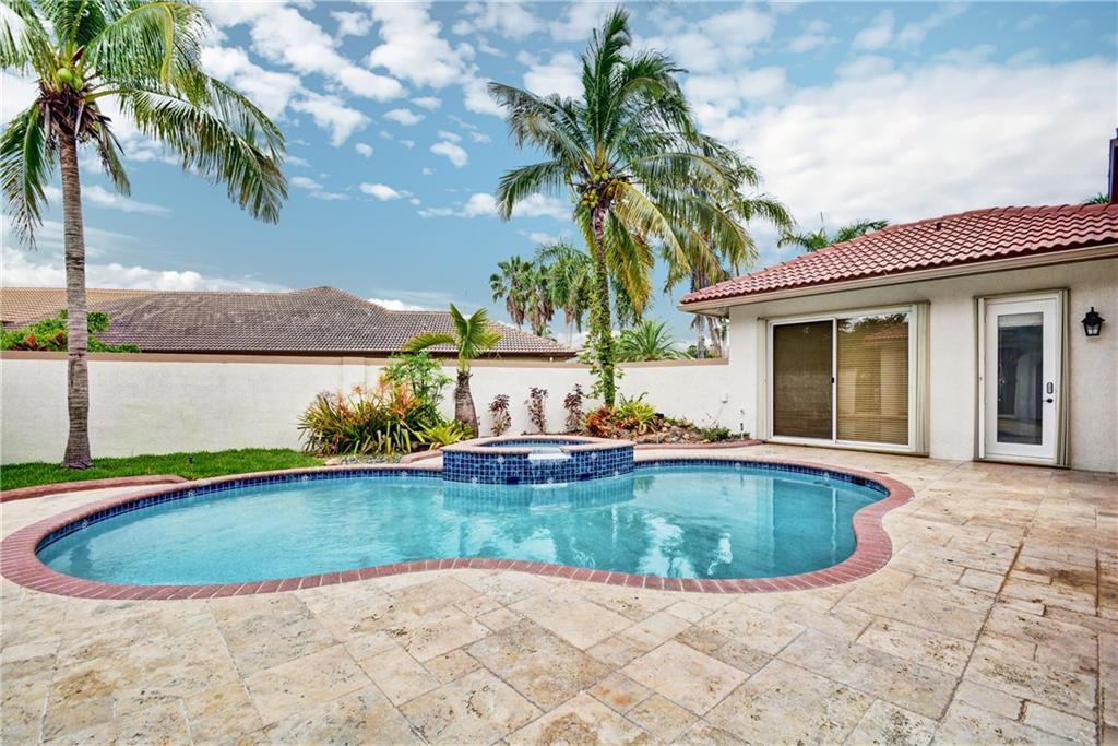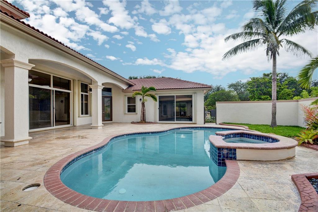 Beautifully upgraded Casa Venice ! This courtyard estate is one of the most sought-after models for its unique design! As you walk through the main doors you are welcomed by an open courtyard, which features a pool & covered patio, ideal setting for outdoor entertaining. 6 bedrooms, including separate guest quarters, & 4 bathrooms provide ample space for a big family lifestyle. New flooring ! New A/C systems! Designer kitchen ! Upgraded baths ! Accordion shutters ! Enjoy the South Florida lifestyle !