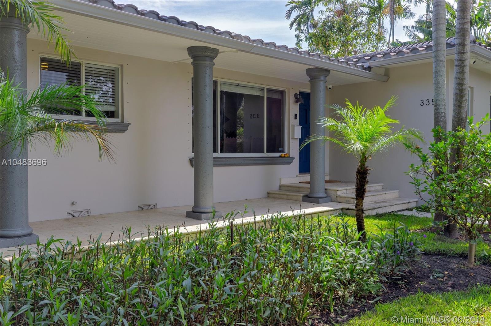 Beautiful four bedroom three bath home in Miami Shores with a big private backyard and beautiful pool. Covered front porch. Open floor plan with natural light, amazing spaces for entertaining. Great views of the pool and Garden. Nice bedroom split, two master bedrooms. Both master bedrooms have big closet. Master Bathroom has oversized shower and double sinks. Huge eat in kitchen with stainless steel appliances. New roof, new central air conditioning, storm shutters for all the windows. Alarm system and irrigation system. Nice quiet street with mature landscaping.