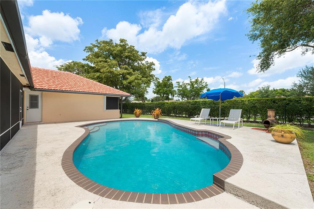 Gorgeous pool home in desirable Pine Ridge. Split floor plan 4/2.5 plus a den. Full of upgrades such as upscale, gourmet kitchen, new sprinkler system, newer AC, accordion shutters, plus a BRAND NEW ROOF (May 2018)! This home has a true Master suite with vaulted ceilings, sliding glass door right off pool area, oversized walk-in closet, full vanity area, & large master bath w/ 2nd vanity, jetted roman tub & stand-up shower. Full of natural light w/ skylights & clear story windows in formal living room.