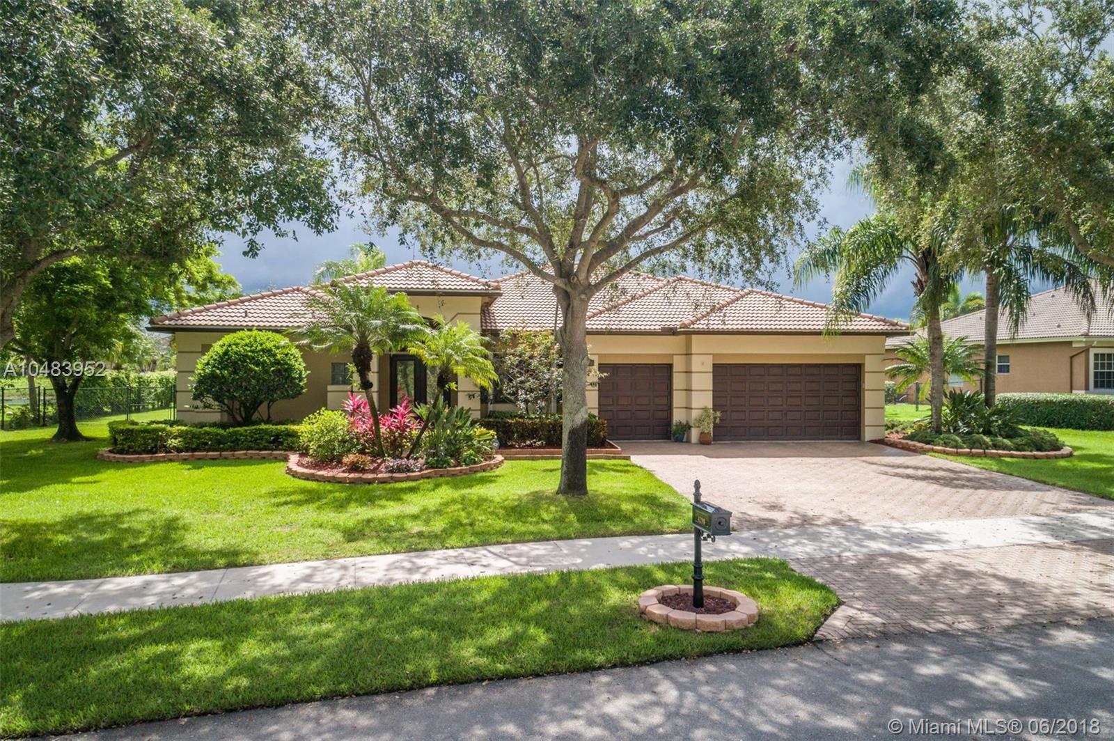 Spectacular gem in exclusive 24 hour guard gated Imagination Farms! This exceptional Astor model over-looks wide canal & backs up to the Davie equestrian trail offering fabulously tranquil views. Situated on wide acre lot. Almost nothing left untouched by the original owners. Newer kitchen has stainless steel high-end appliances, granite counters, snack counter & spacious walk-in pantry. Cozy breakfast nook. Master suite has luxury bath with separate Roman tub/shower, dual sinks, his/hers closets. Updated bathrooms. Formal dining. Tasteful wood flooring thru-out. Decorative plantation shutters. French & custom doors. Newer A/C. Owners used the highest quality of finishes with a focus on high energy efficiency. Recently painted. Screened covered patio. Large pool deck. Accordion shutters.
