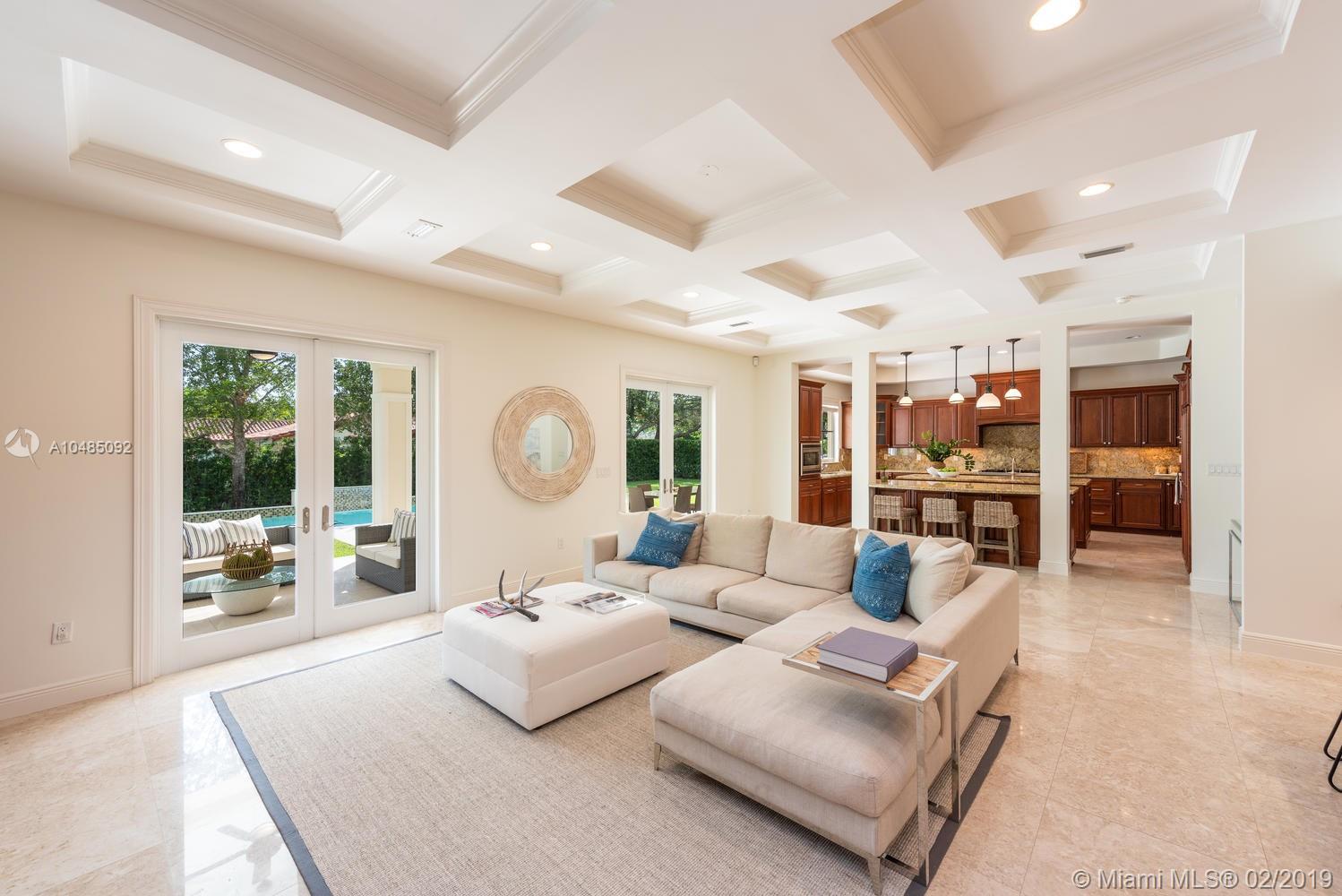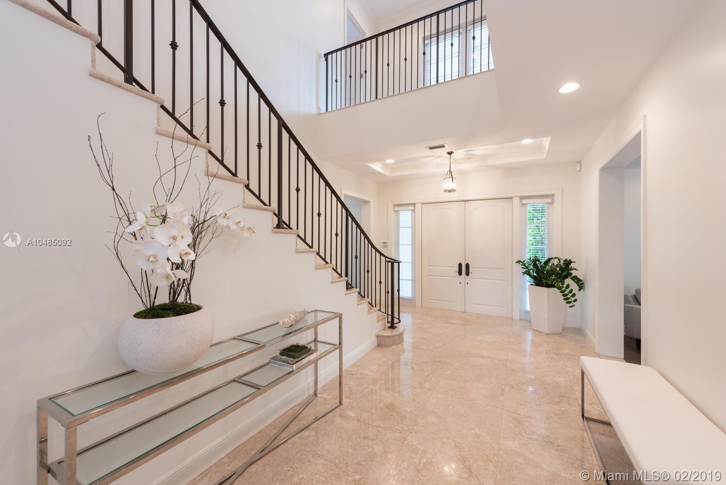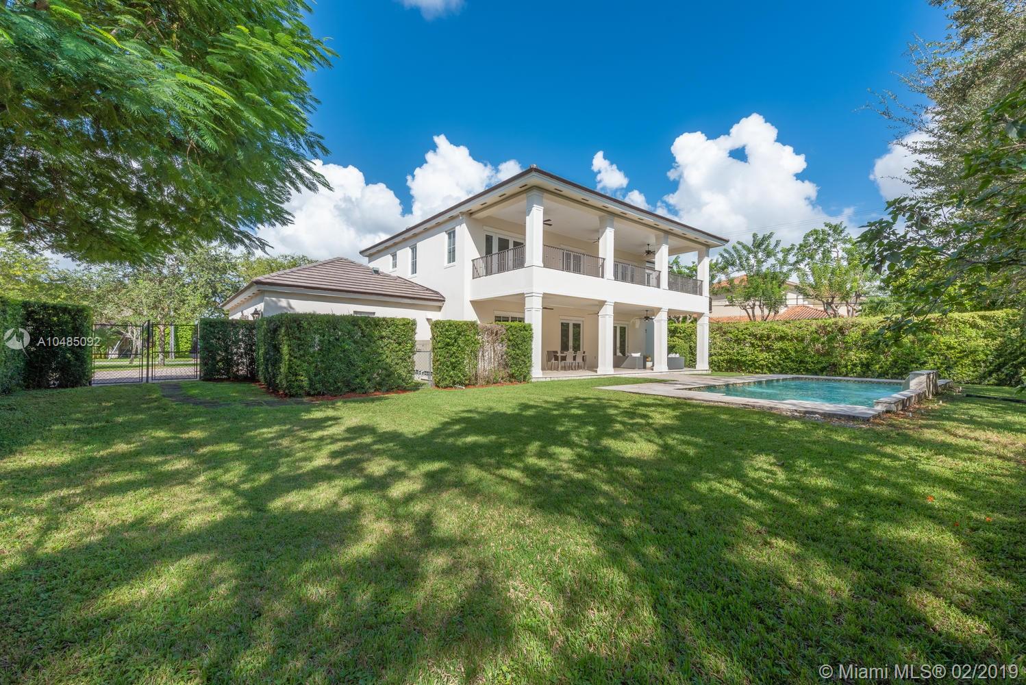 Stately 5 bedroom home w/ 5,000 SF of living area on 16,757 SF lot in sought-after North Pinecrest. Features formal living rm & dining rm, great room adjacent to kitchen, gas fireplace, wet bar & recessed lighting. Gourmet kitchen w/ granite countertops, wood cabinetry & top of the line SS appliances. Plenty of storage with butler’s pantry & walk-in pantry. Beautiful marble staircase leads to the master bedroom w/ separate dressing area, large walk-in closet & private terrace. Master bath has a separate tub and shower & two sinks. All bedrooms w/ ensuite baths & spacious closets. Two of the three bedrooms upstairs have private terrace. Pool, covered patio & summer kitchen for entertaining. 3-car gar, generator, high impact windows & doors. Downstairs bedroom w/walk in closet & cabana bath.