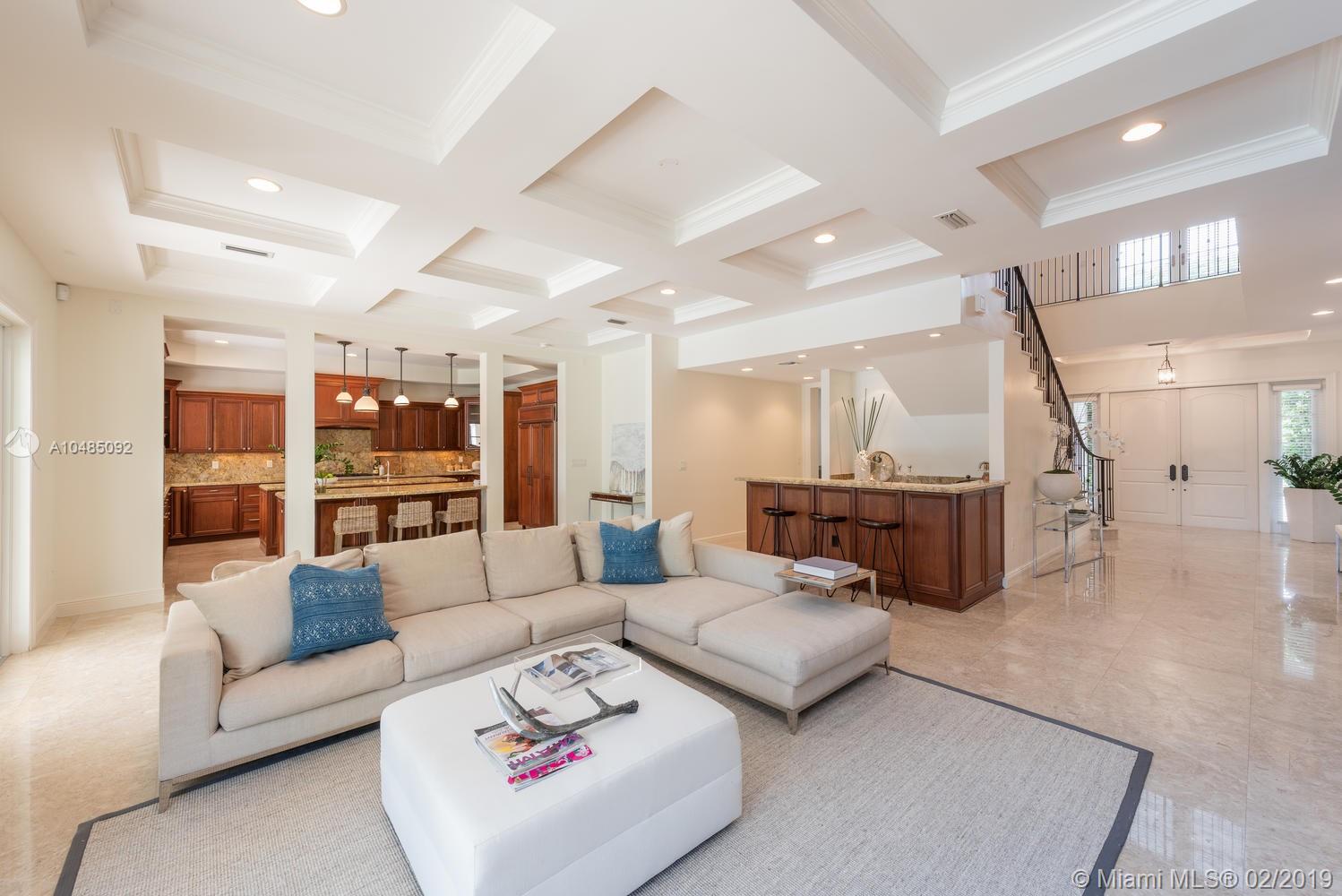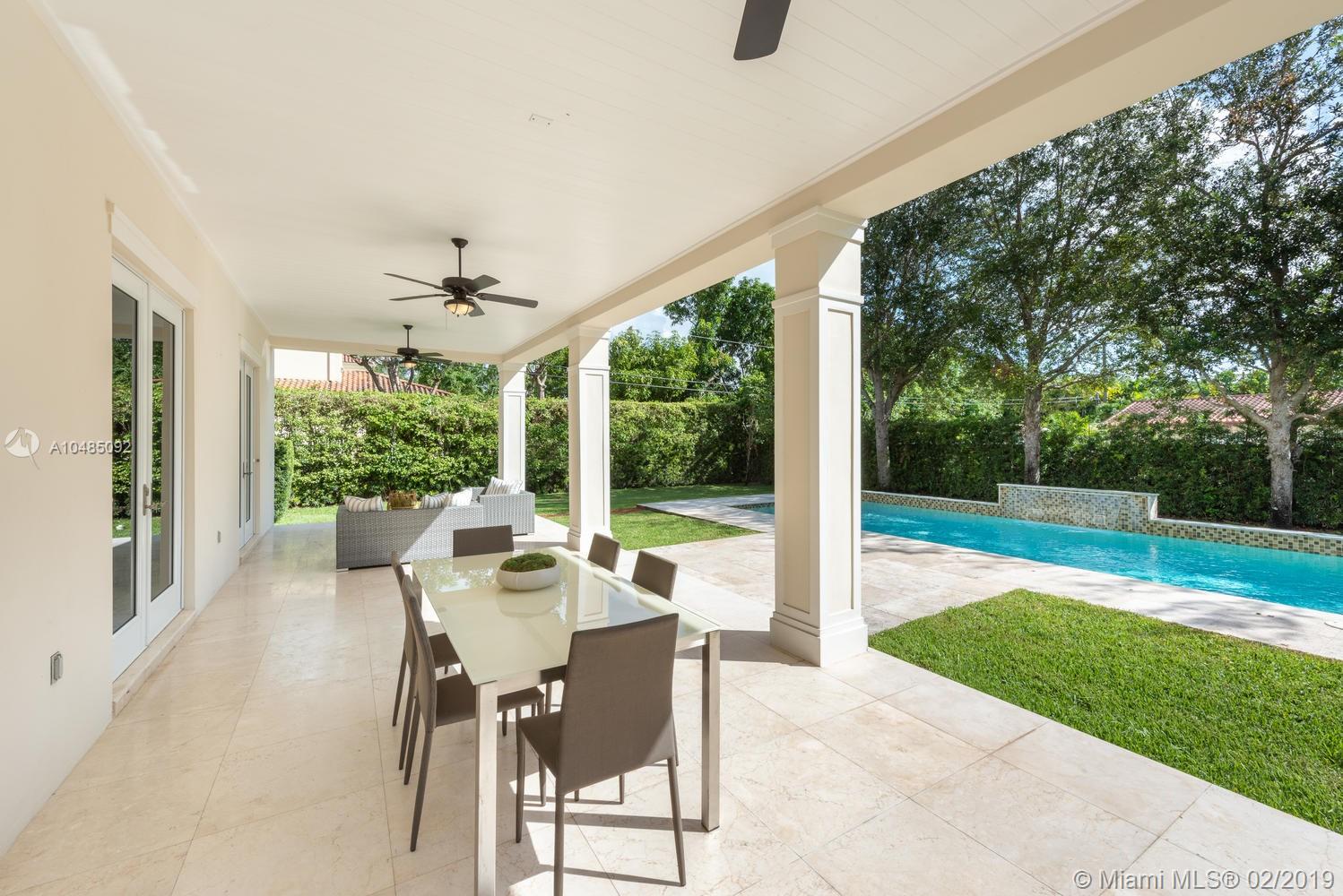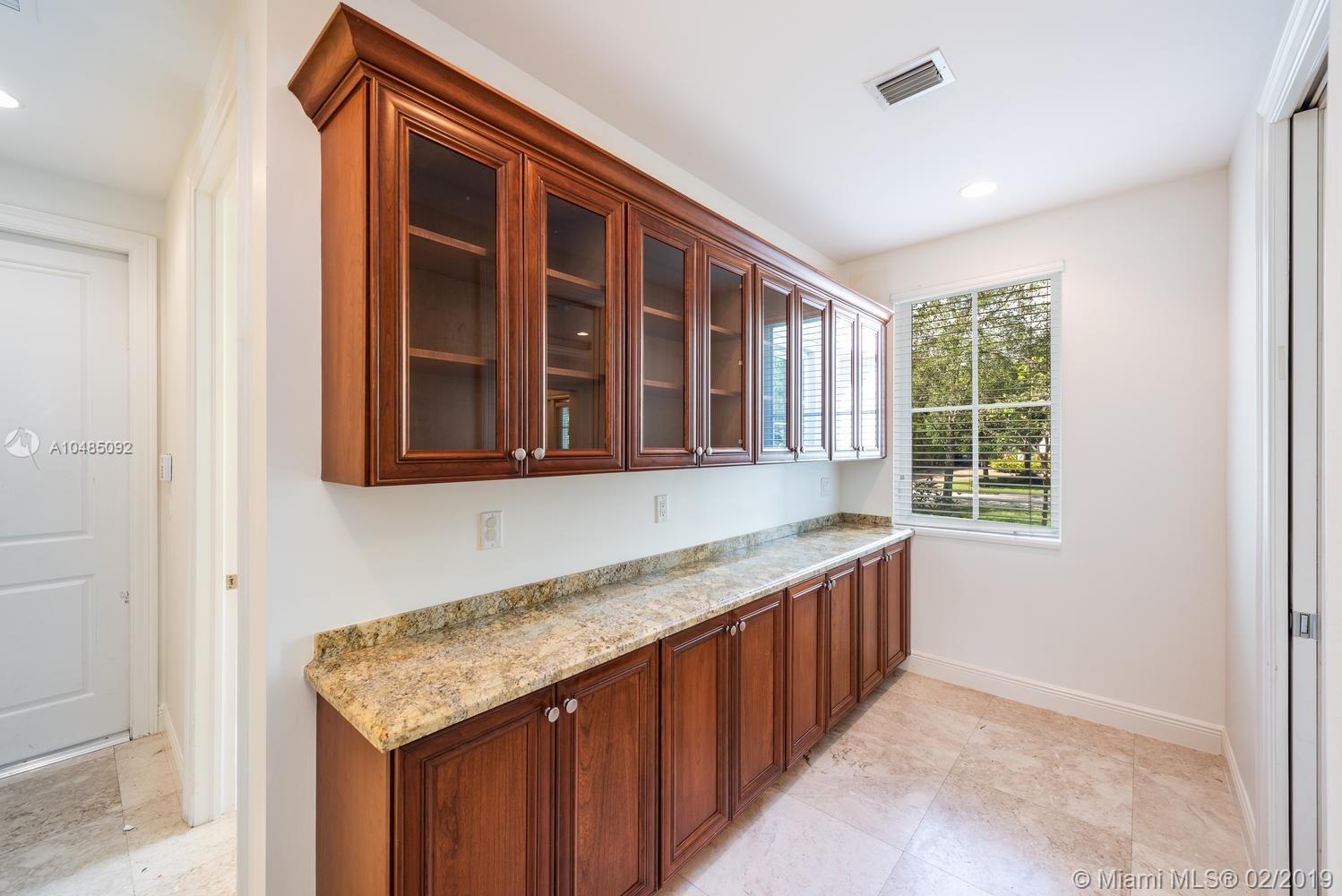 Stately 5 bedroom home w/ 5,000 SF of living area on 16,757 SF lot in sought-after North Pinecrest. Features formal living rm & dining rm, great room adjacent to kitchen, gas fireplace, wet bar & recessed lighting. Gourmet kitchen w/ granite countertops, wood cabinetry & top of the line SS appliances. Plenty of storage with butler’s pantry & walk-in pantry. Beautiful marble staircase leads to the master bedroom w/ separate dressing area, large walk-in closet & private terrace. Master bath has a separate tub and shower & two sinks. All bedrooms w/ ensuite baths & spacious closets. Two of the three bedrooms upstairs have private terrace. Pool, covered patio & summer kitchen for entertaining. 3-car gar, generator, high impact windows & doors. Downstairs bedroom w/walk in closet & cabana bath.