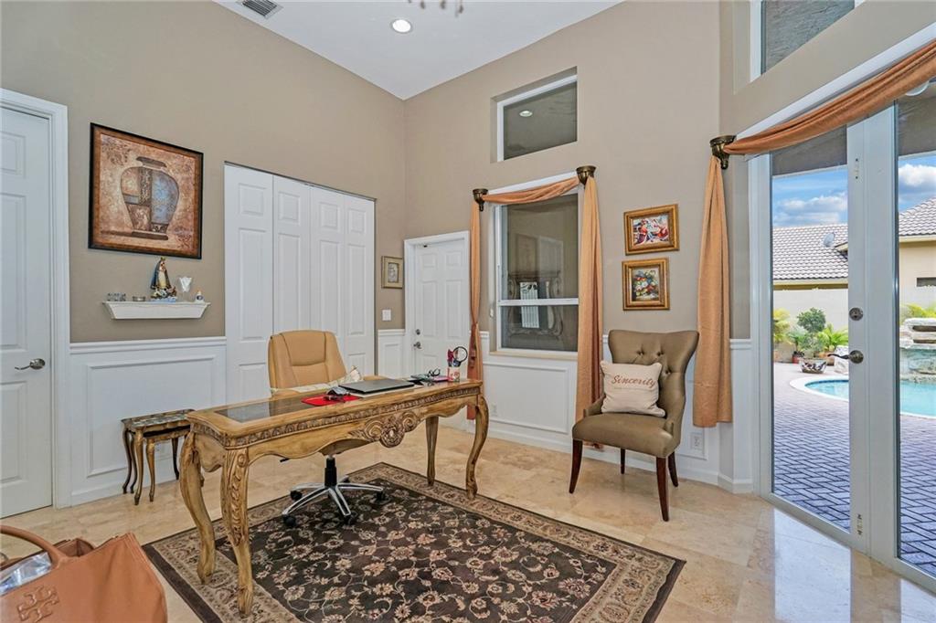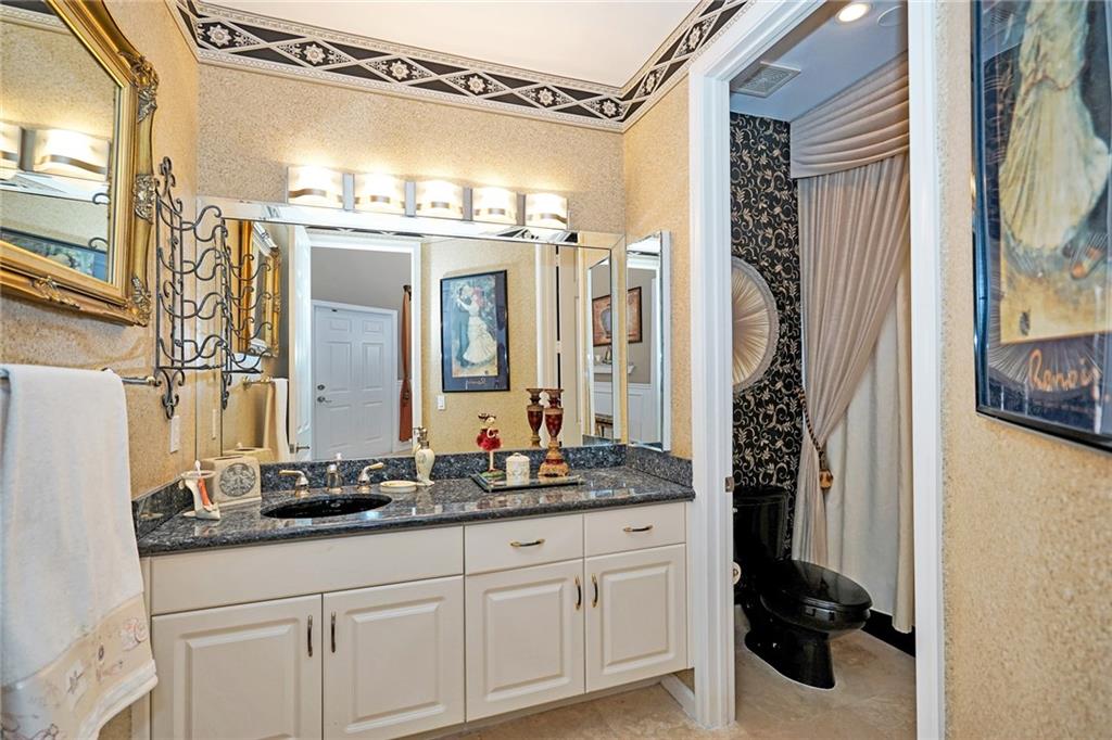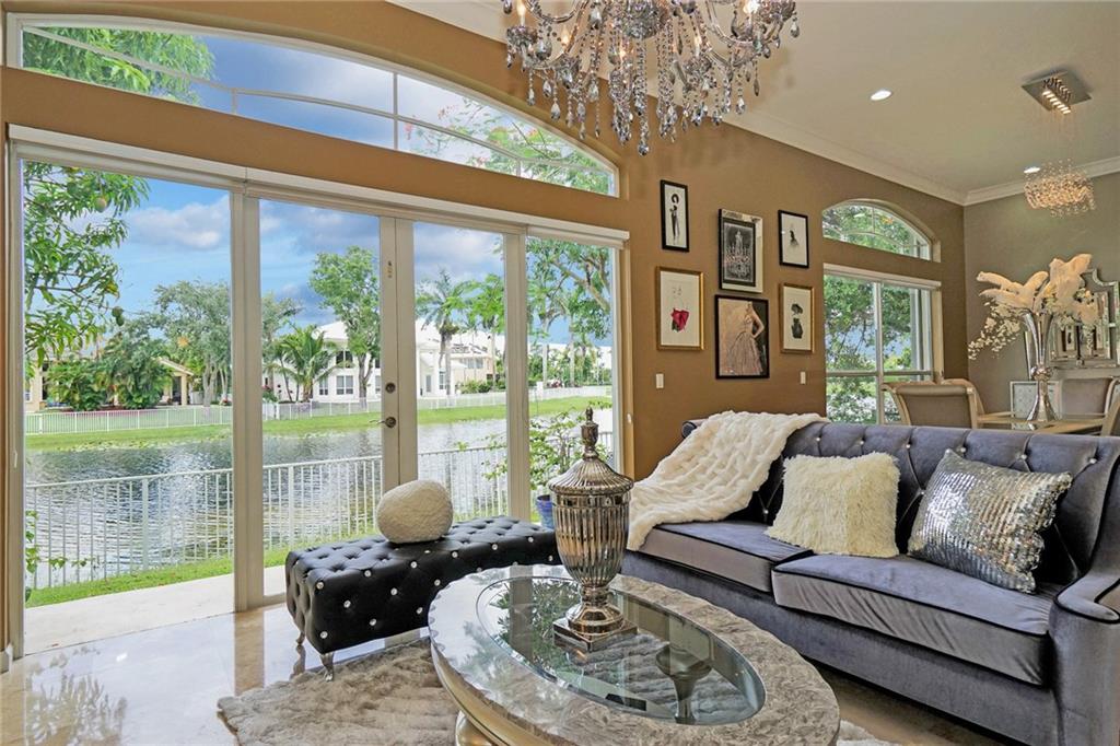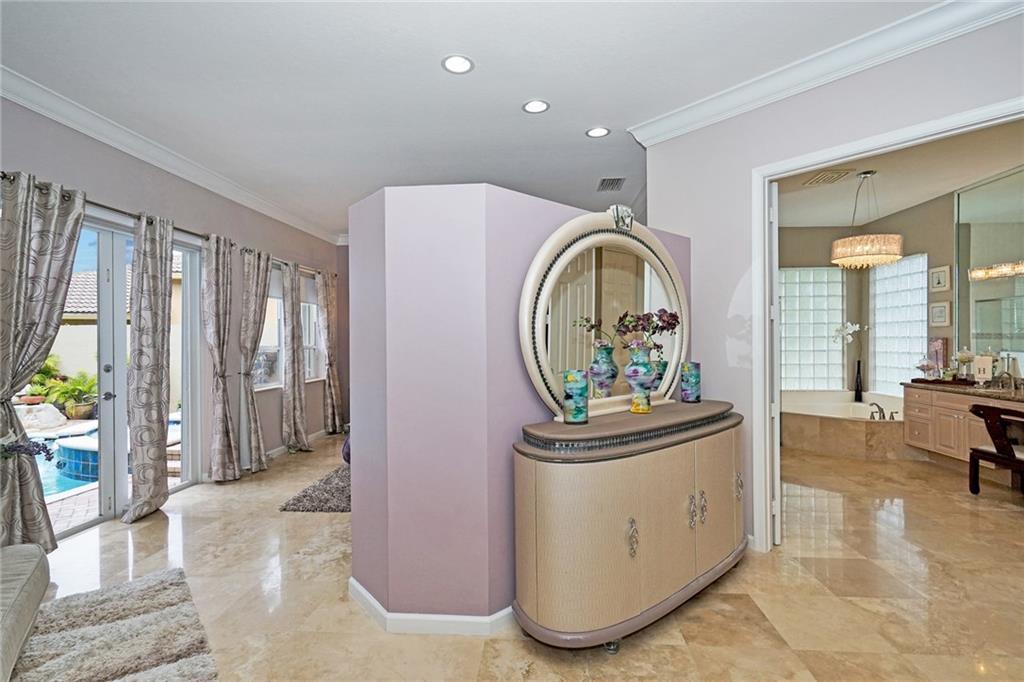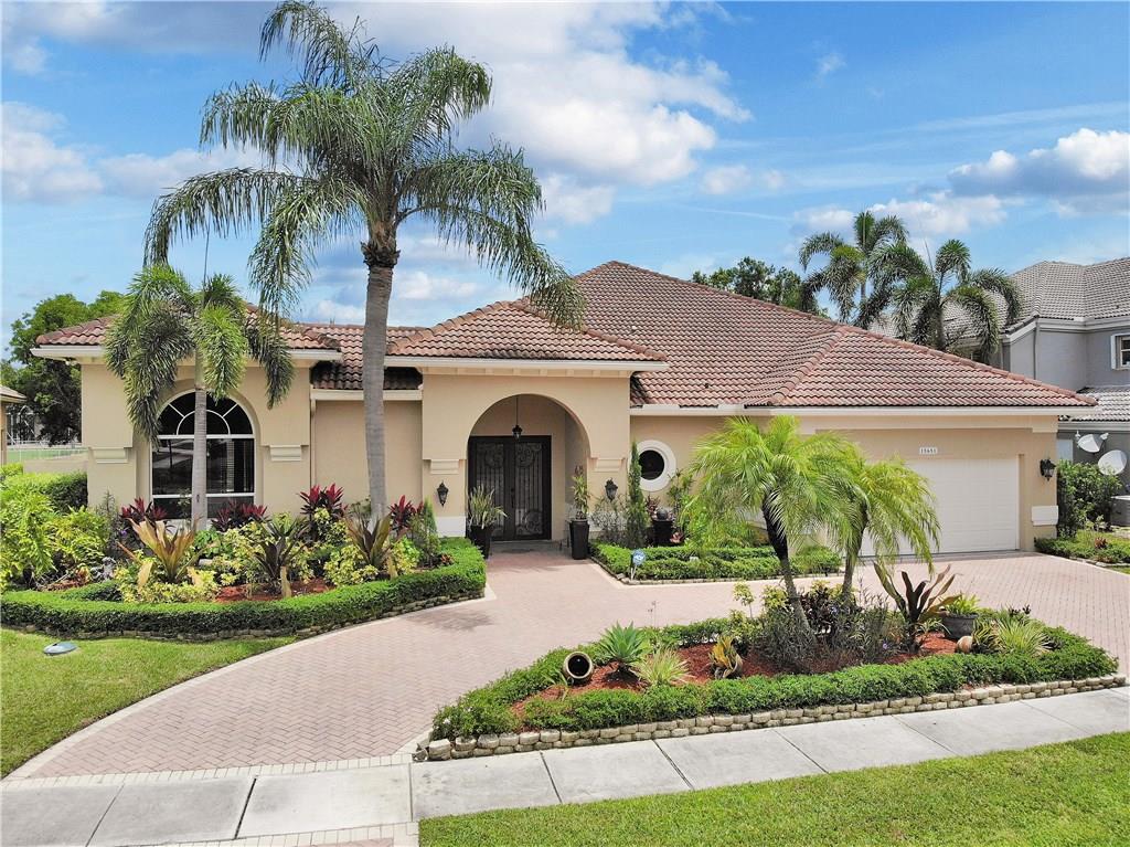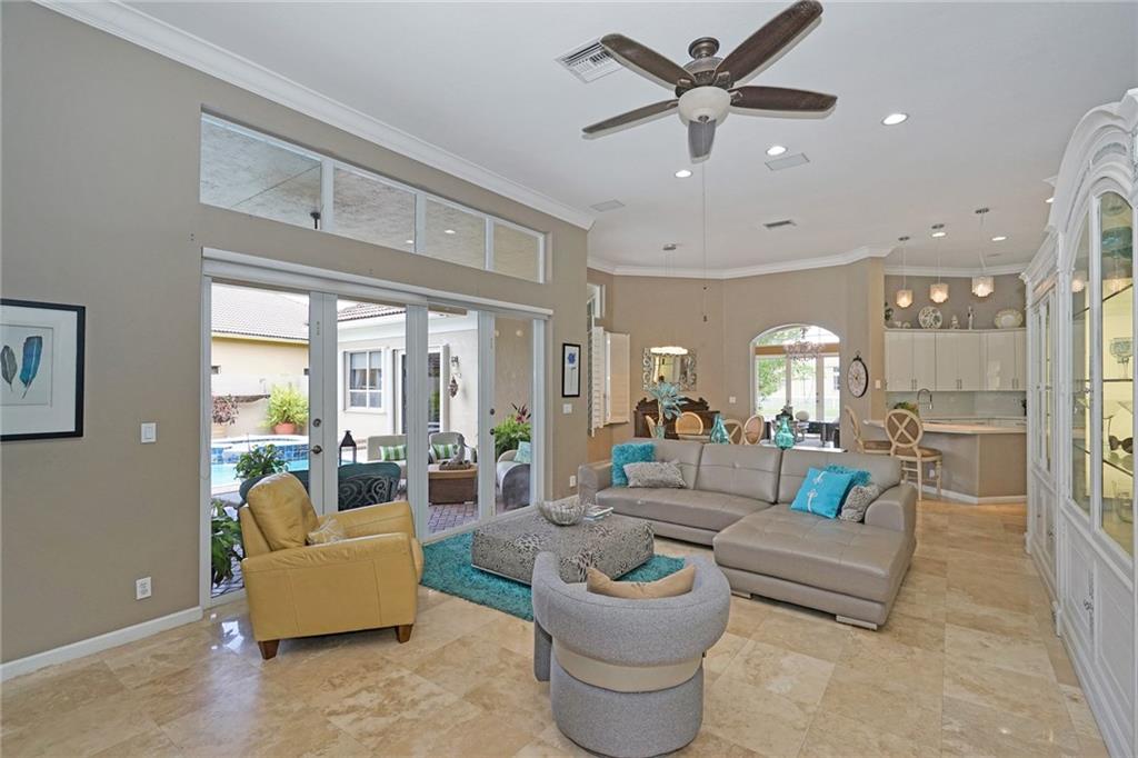This gorgeous 4 bedroom courtyard home with pool & lakefront is a perfect "10" ready for entertaining. Gourmet kitchen remodeled with quartz, stainless appliances & custom cabinets opens to a huge family room overlooking the sparkling pool/spa/waterfall. Saturnia marble floors, high ceilings, spacious rooms, surround sound, this home has it all and is move-in ready. Whole house generator and some accordion shutters. Guest house with full bathroom & wet bar. Must see!