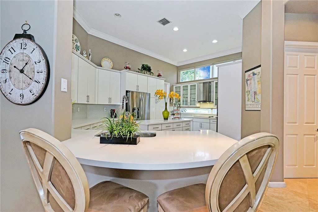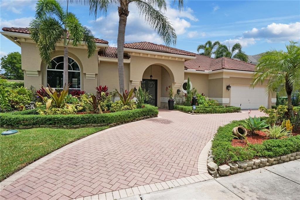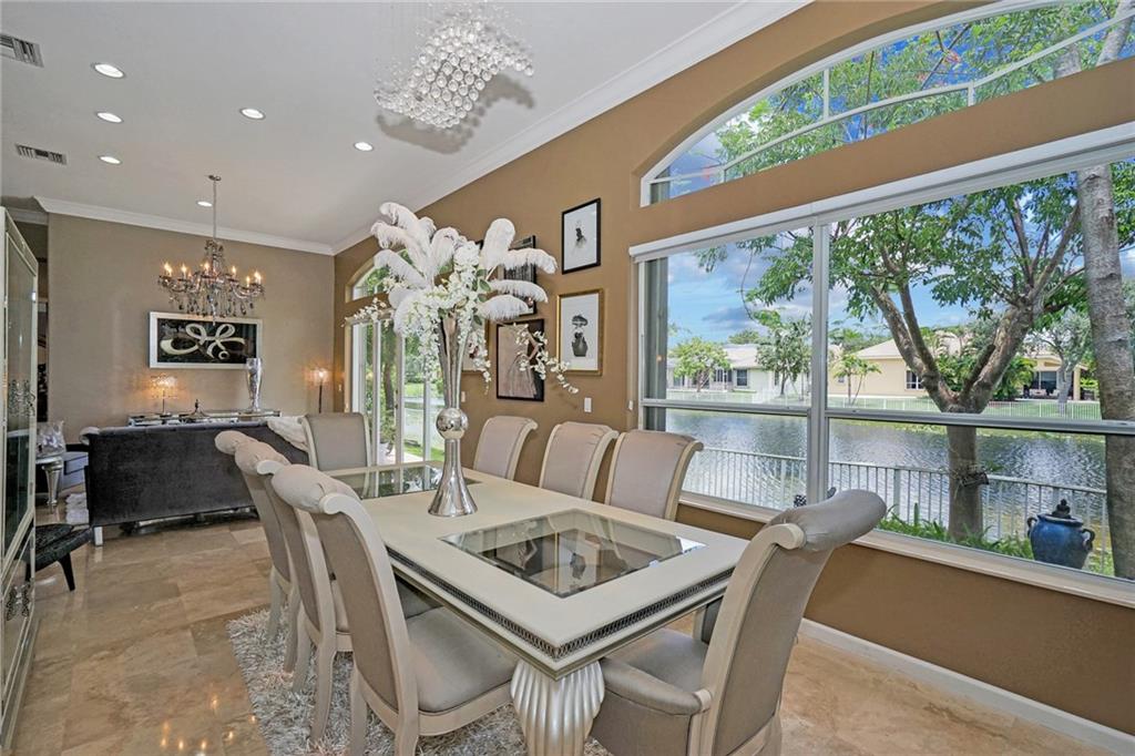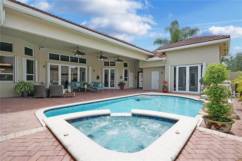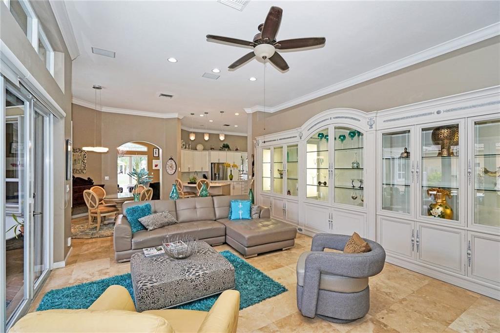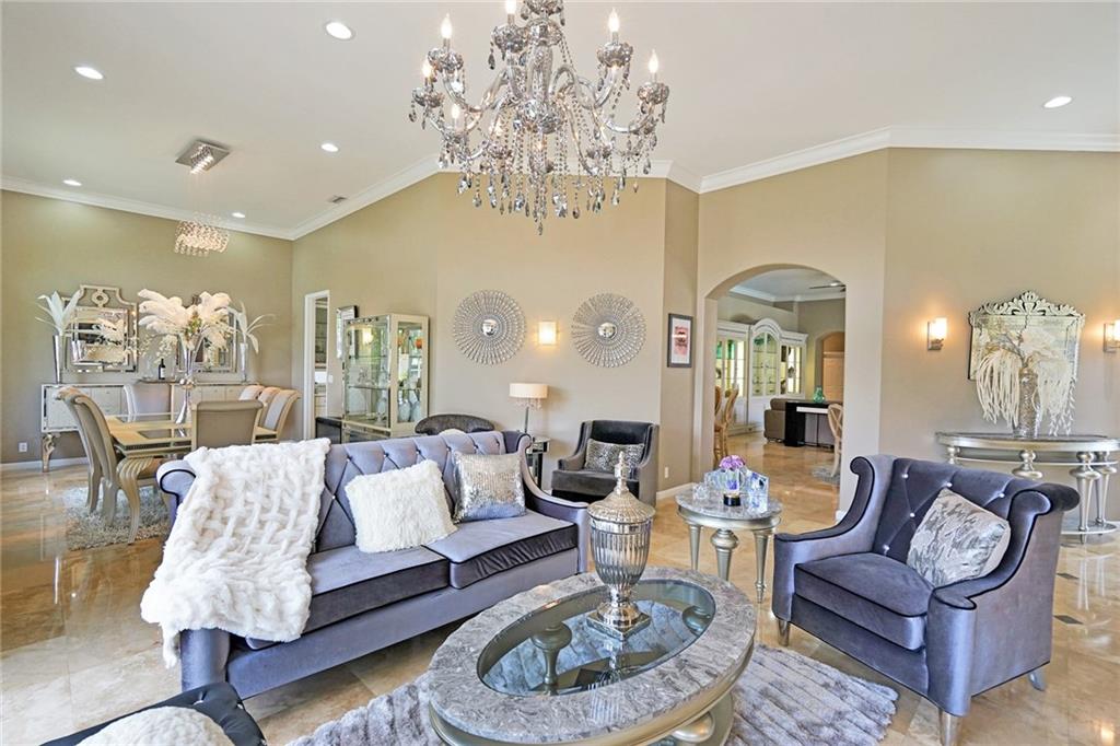 This gorgeous 4 bedroom courtyard home with pool & lakefront is a perfect "10" ready for entertaining. Gourmet kitchen remodeled with quartz, stainless appliances & custom cabinets opens to a huge family room overlooking the sparkling pool/spa/waterfall. Saturnia marble floors, high ceilings, spacious rooms, surround sound, this home has it all and is move-in ready. Whole house generator and some accordion shutters. Guest house with full bathroom & wet bar. Must see!