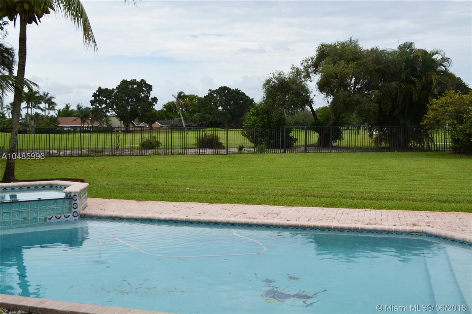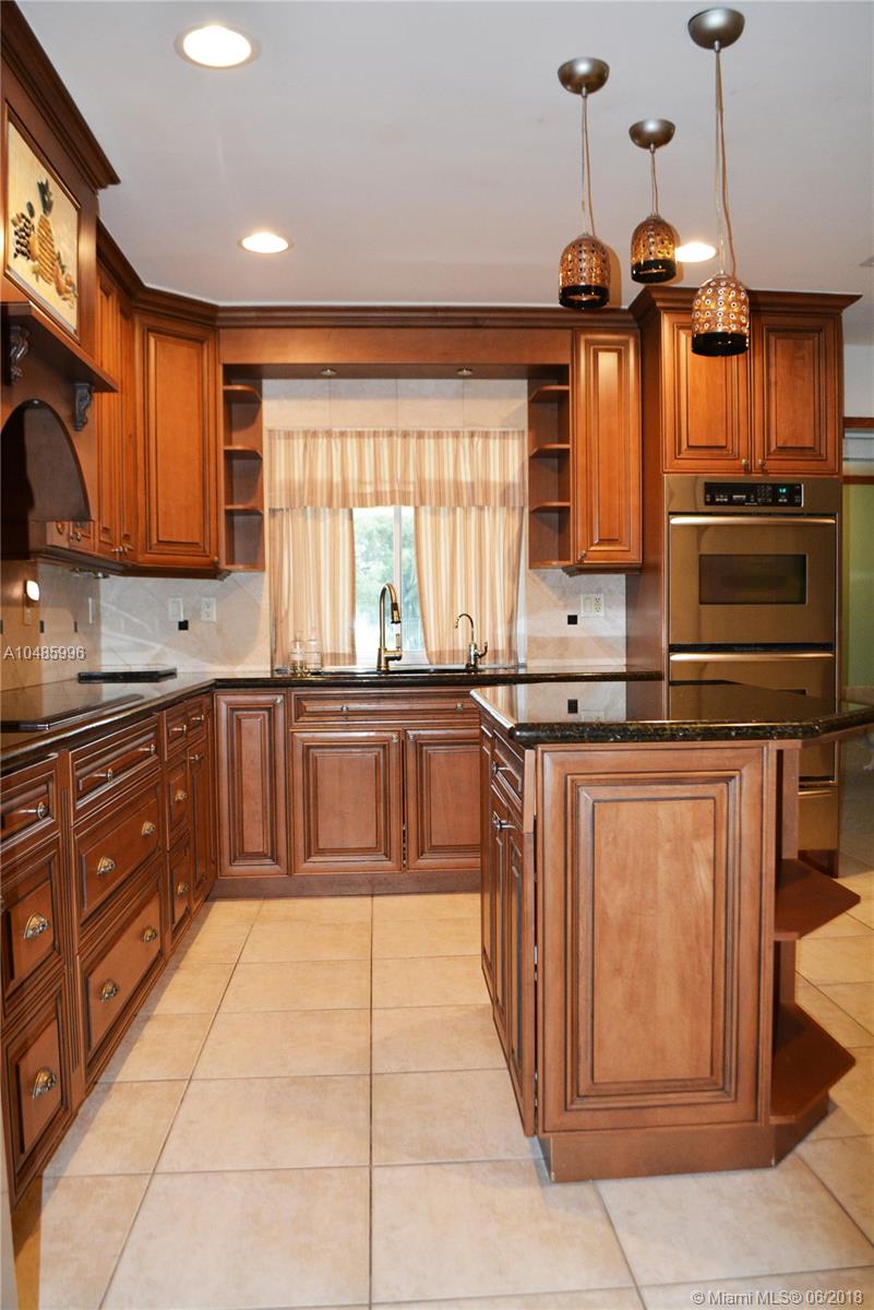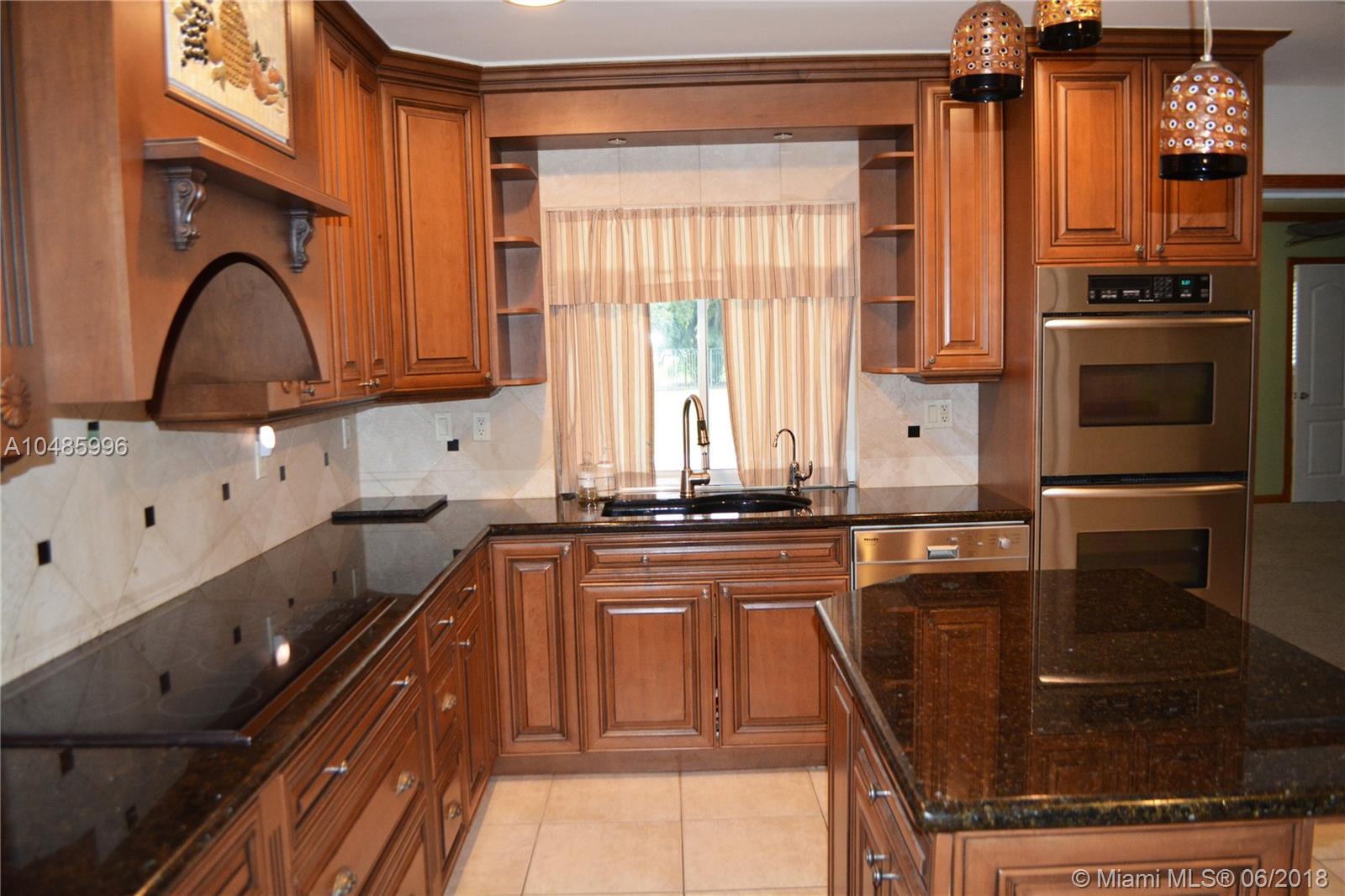 Beautiful, 4 bedroom/3 bath house on large lot in Jacaranda Country Club. French doors open out to the patio from the living room, master bedroom and family room. The upgraded kitchen has cherry cabinets with dark granite counter tops, GE refrigerator, Kohler sink, Miele dishwasher, Wolfe stove top and Kitchen Aid double ovens. Eat in kitchen area with a table, bench and chairs. Separate laundry room (washer/dryer included) with pantry. Family room has custom built in book shelves and TV cabinet along with a built in bar. Huge backyard overlooks the golf course, with resurfaced pool/spa, the large patio. Accordion shutters, sprinklers, alarm, 2 AC Units and 2 car-garage. Great Plantation schools.
