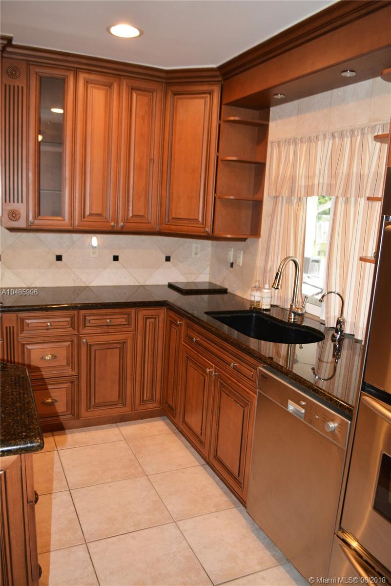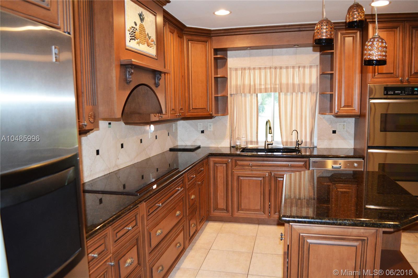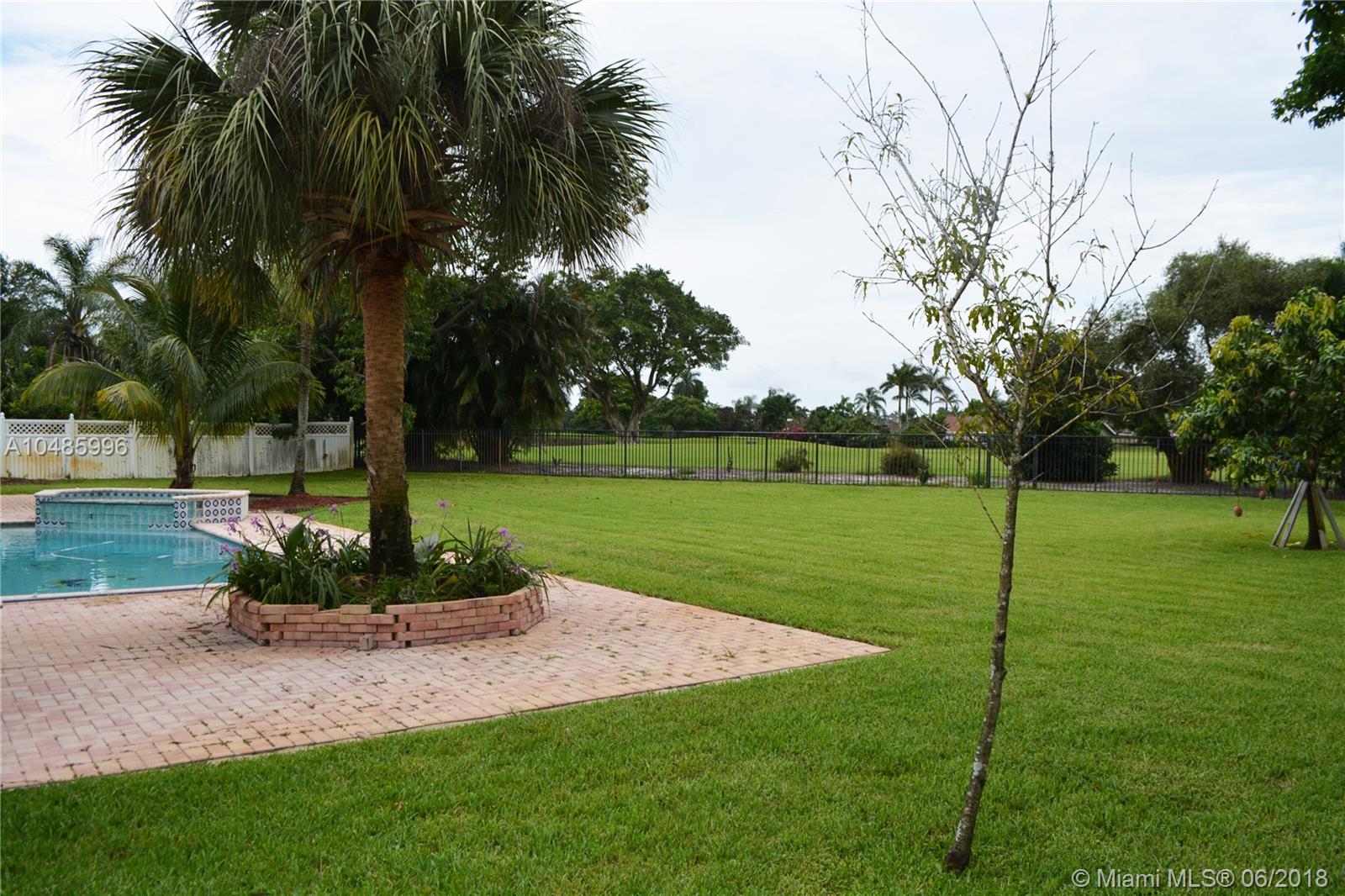 Beautiful, 4 bedroom/3 bath house on large lot in Jacaranda Country Club. French doors open out to the patio from the living room, master bedroom and family room. The upgraded kitchen has cherry cabinets with dark granite counter tops, GE refrigerator, Kohler sink, Miele dishwasher, Wolfe stove top and Kitchen Aid double ovens. Eat in kitchen area with a table, bench and chairs. Separate laundry room (washer/dryer included) with pantry. Family room has custom built in book shelves and TV cabinet along with a built in bar. Huge backyard overlooks the golf course, with resurfaced pool/spa, the large patio. Accordion shutters, sprinklers, alarm, 2 AC Units and 2 car-garage. Great Plantation schools.