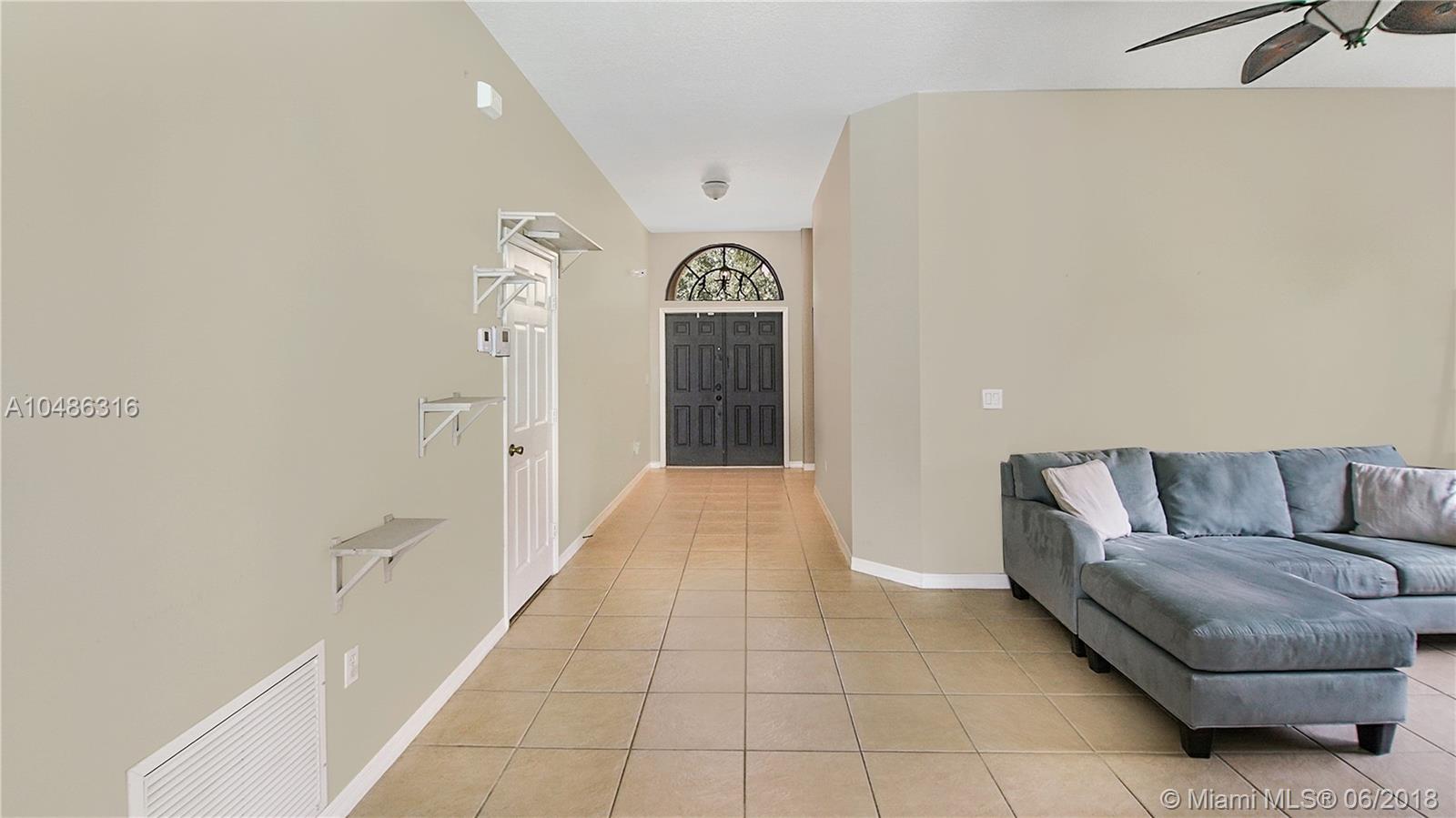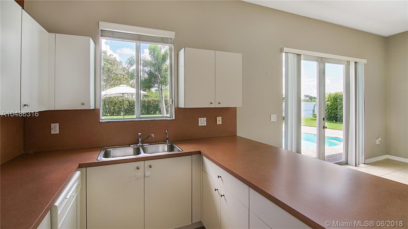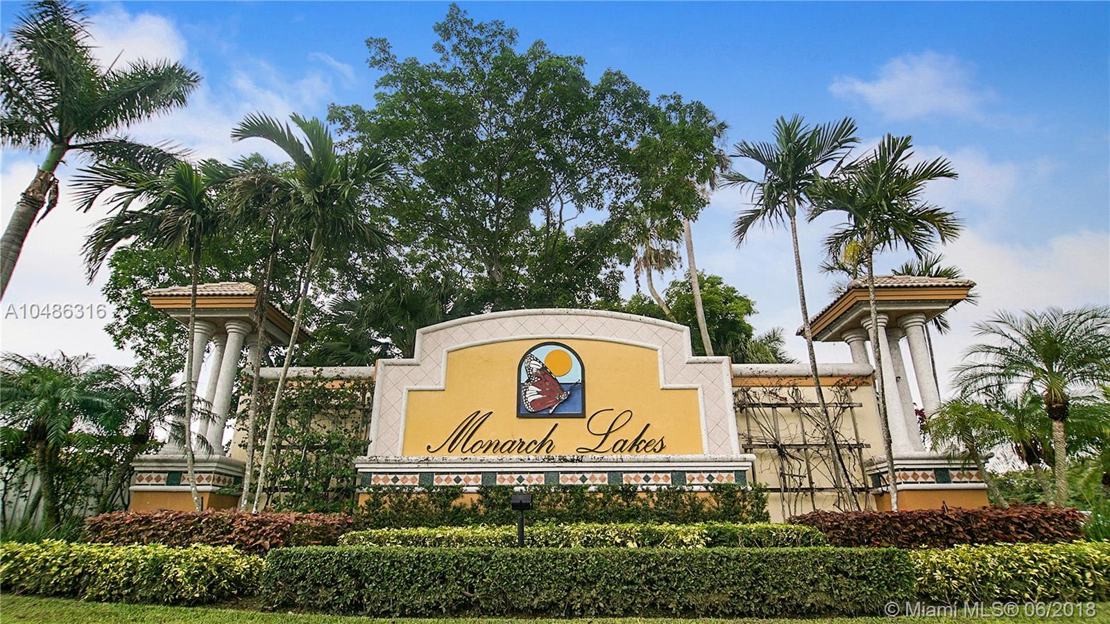 Beautiful one story home on one of the largest lots in Monarch Lakes, waterfront & no rear neighbor, mango tree out back! Salt water capable Pool; large paved patio with pavers extending out towards lake, pavers extend on the east side to the front of the home; solar water heater; A.C. 2 years new; 3 bedroom split floor plan. Master has bamboo floors, walk in closet with built ins, dual vanity, tub and separate shower. Guest rooms w/engineered wood; tile through out main areas. Master bedroom and kitchen area open up to the pool with French doors. High ceilings. Separate laundry room! Located in a cul-de-sac. Lots of light! Gated community. Walking distance to elementary school, shopping and restaurants, yet tucked away in a quiet gated subdivision! (water frontage unk)