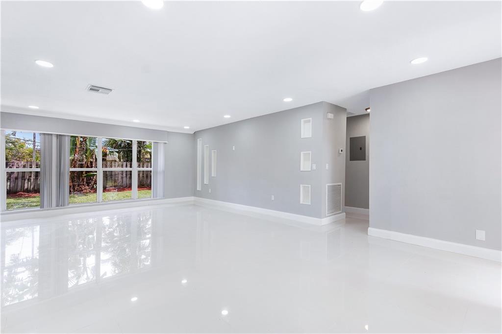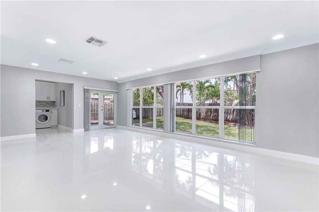 Beautifully remodeled 3/2 home! Custom kitchen, bathrooms, porcelain tile/laminate floors, and recessed lighting throughout. Kitchen features quartz counter-tops and brand new S/S appliances (will be delivered before closing)! Custom-built utility room with tons of cabinet space! Newer A/C unit! Brand new hurricane impact windows, french doors, and exterior doors installed throughout! Freshly painted inside & out!