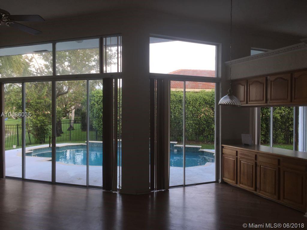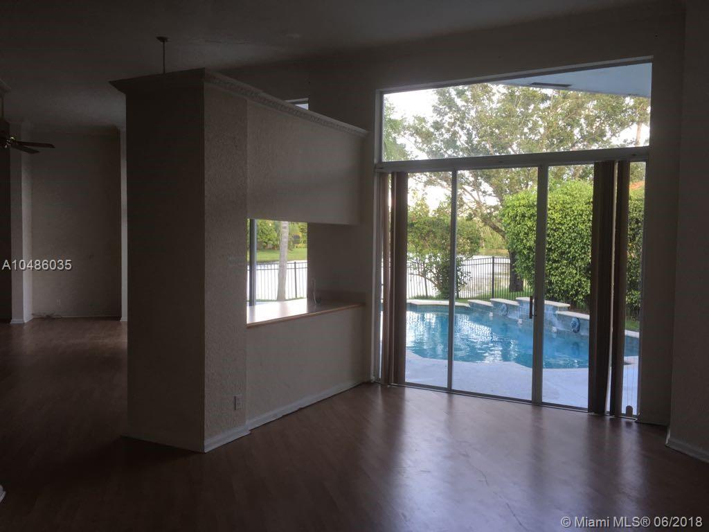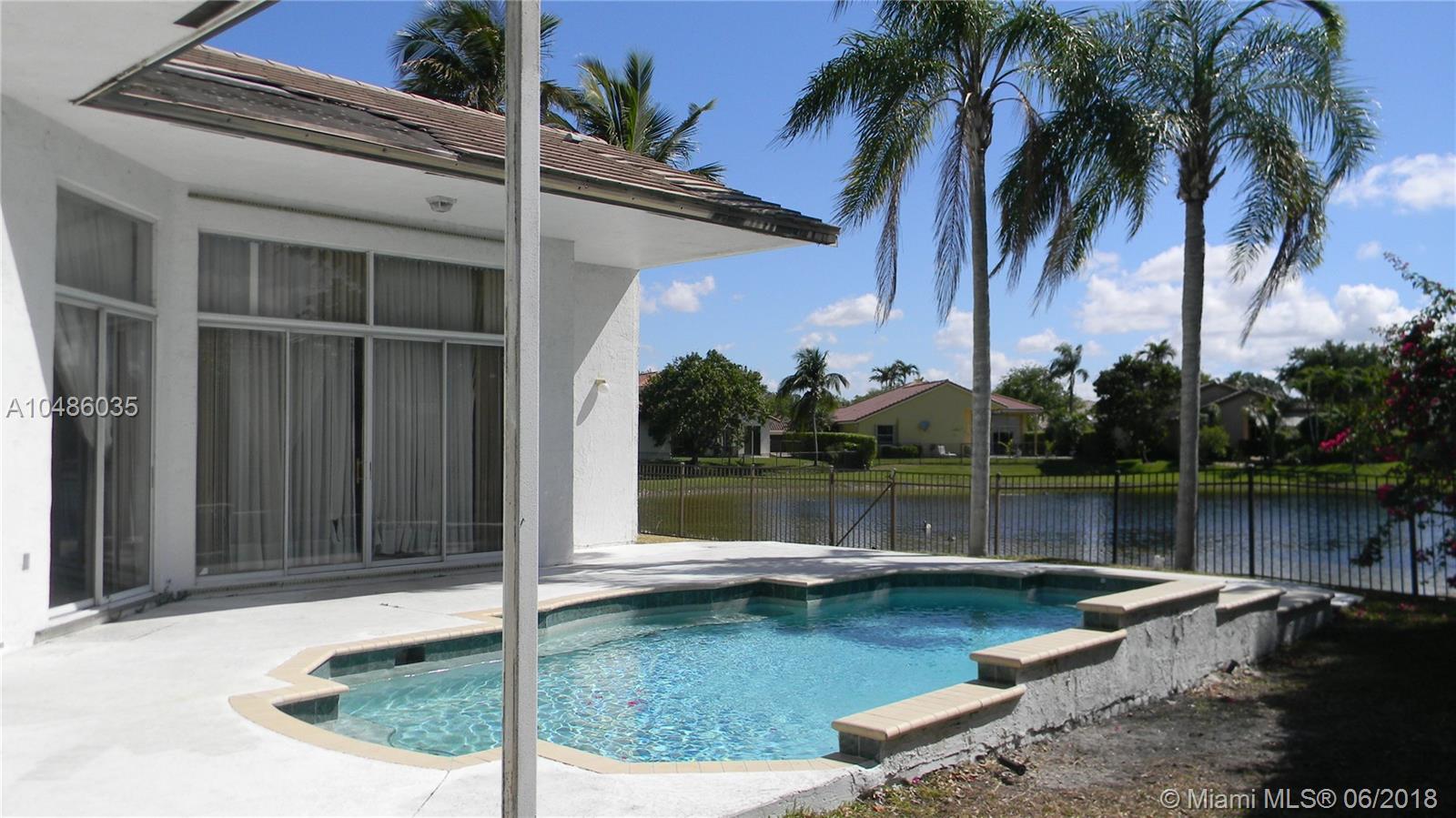 This 5 bedroom 3 bath, 2 Car Garage, Pool and water front. Fabulous panoramic water views, from kitchen, bedrooms and living room, wood floors, large living area and family room with high ceilings, and plenty of light. Large master bedroom, large patio and Setting area. This home is located close to A+ grade schools, club house, swimming pool, golf coarse, tennis courts, gym, close to gate and easy access to freeways 75, 595 and airport. This property located in a gated secure community in Weston Hills Country Club. Need some TLC.