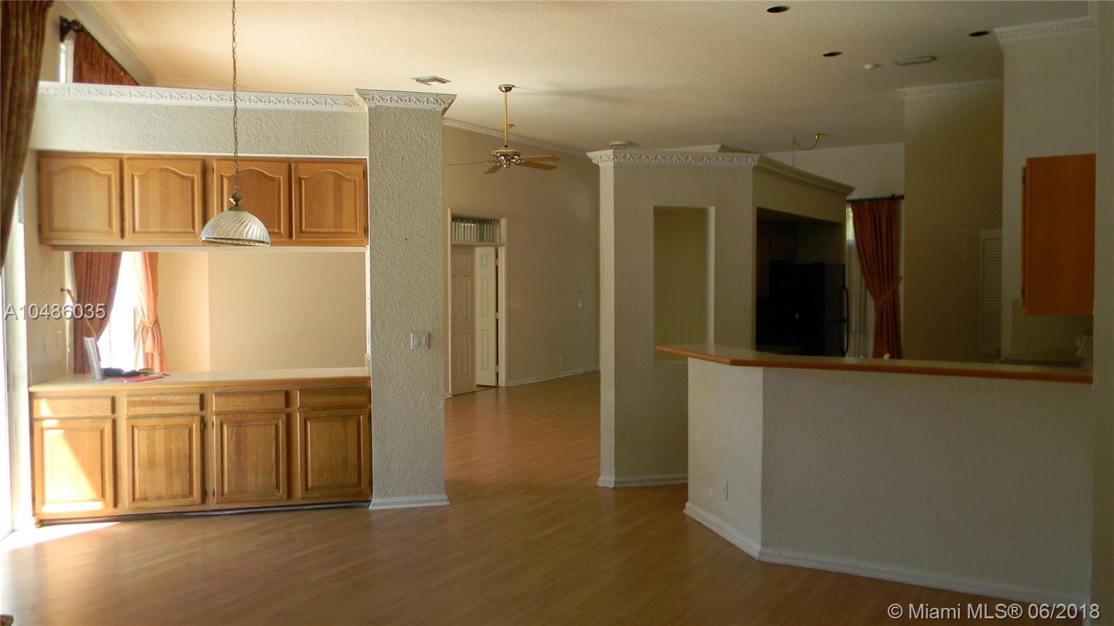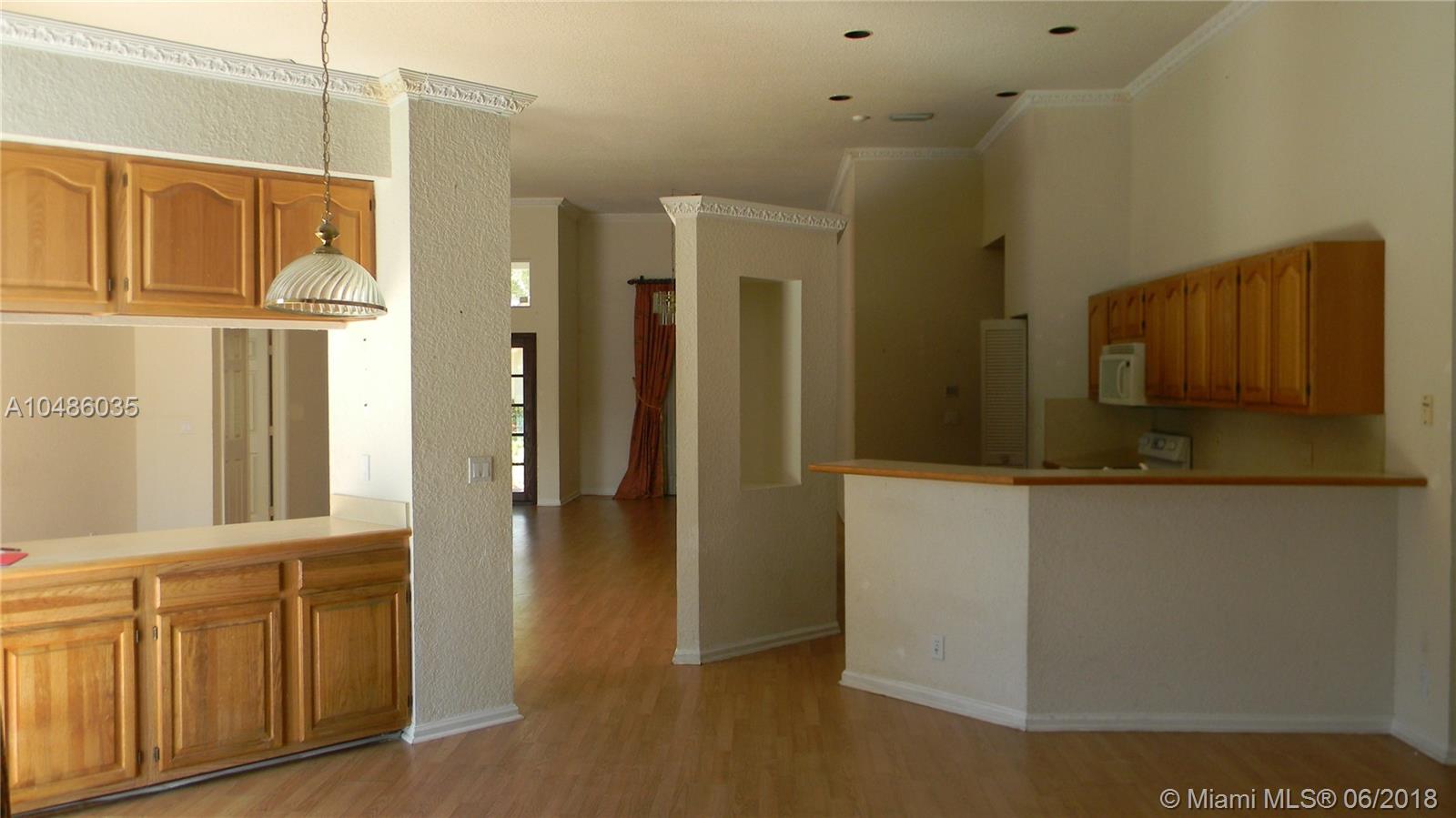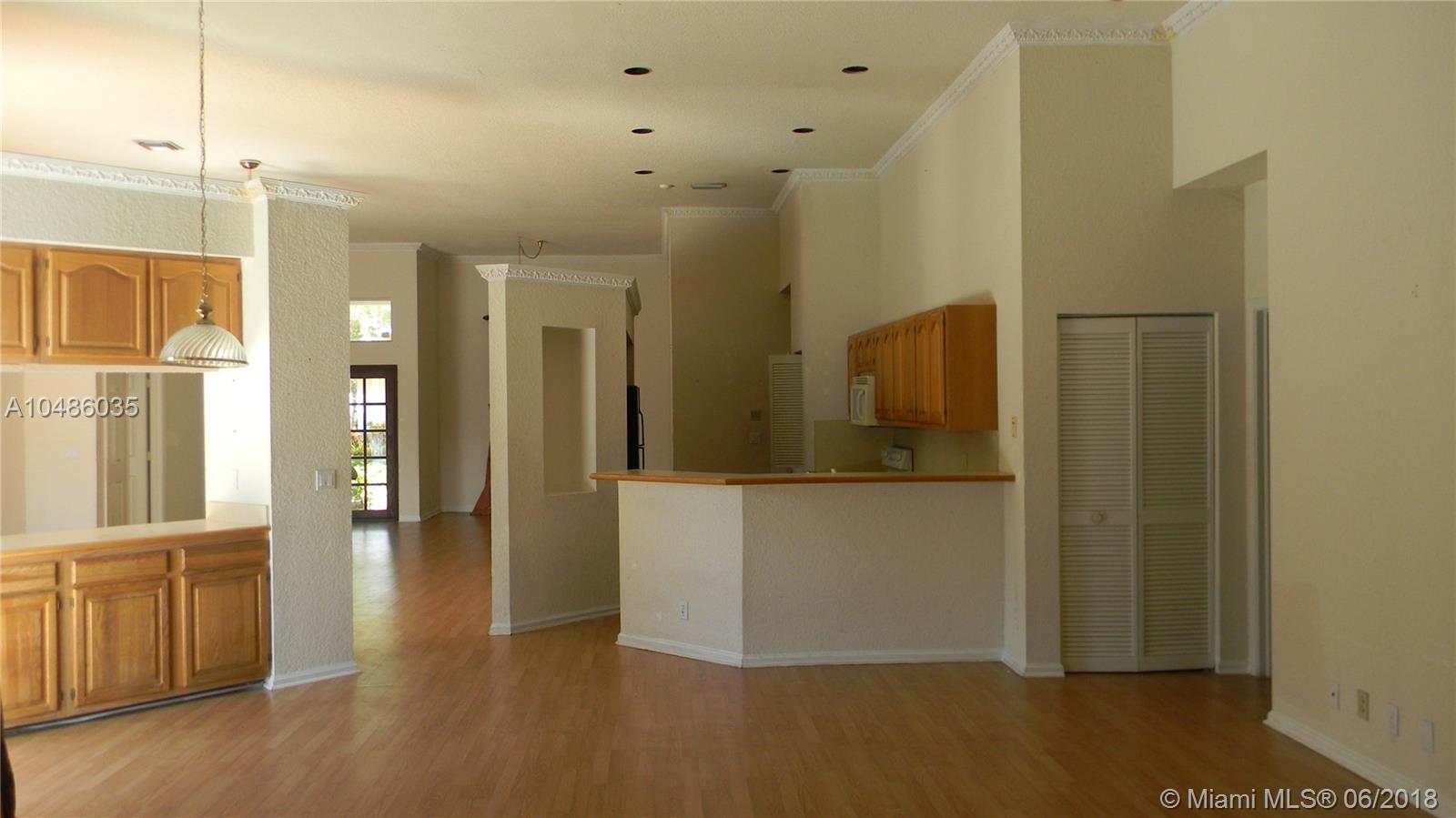 This 5 bedroom 3 bath, 2 Car Garage, Pool and water front. Fabulous panoramic water views, from kitchen, bedrooms and living room, wood floors, large living area and family room with high ceilings, and plenty of light. Large master bedroom, large patio and Setting area. This home is located close to A+ grade schools, club house, swimming pool, golf coarse, tennis courts, gym, close to gate and easy access to freeways 75, 595 and airport. This property located in a gated secure community in Weston Hills Country Club. Need some TLC.