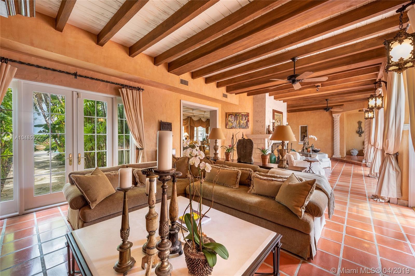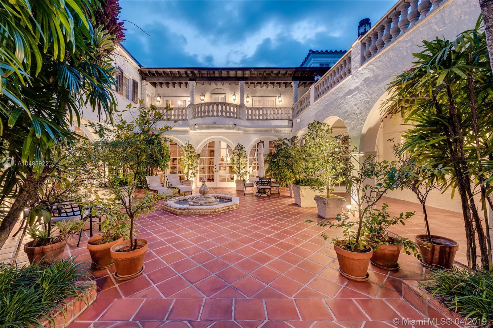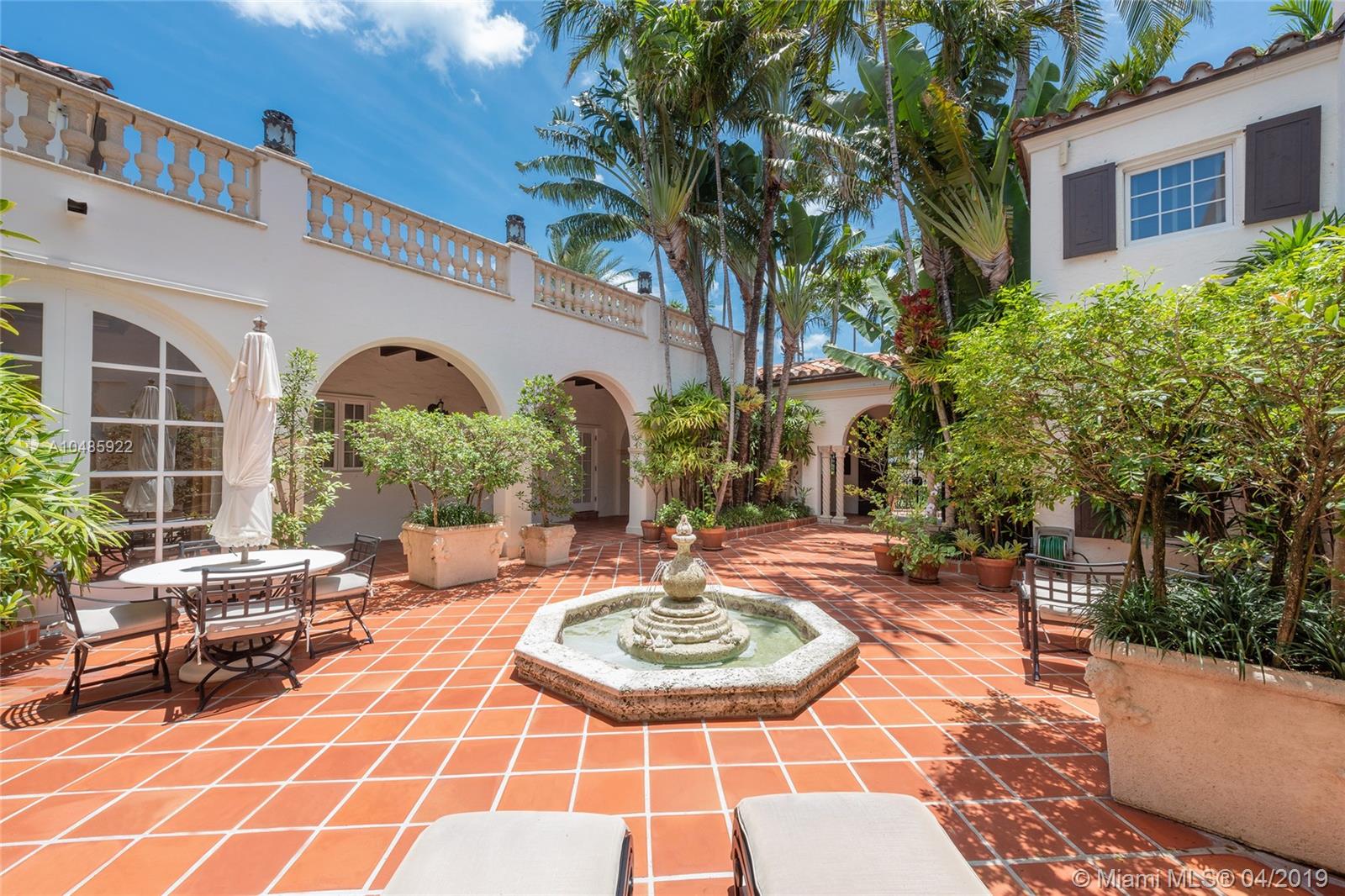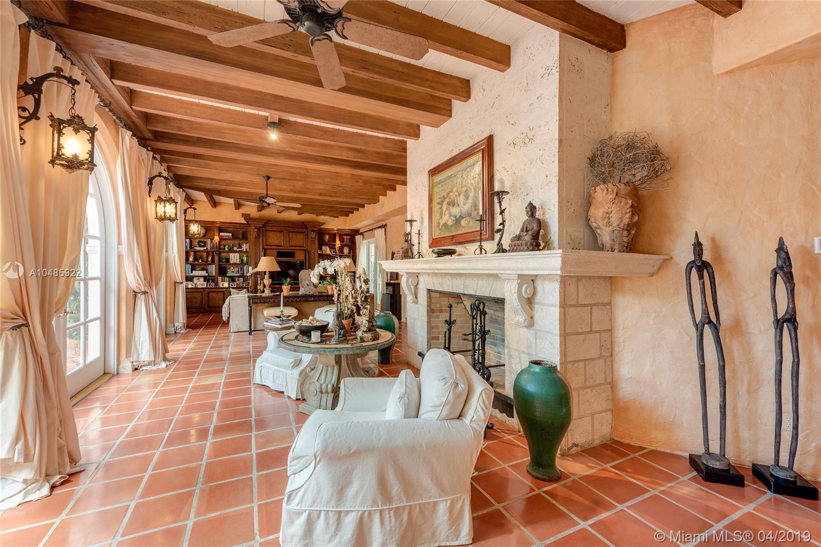 Seller Motivated! Enjoy wide Biscayne Bay and stunning sunsets over the Downtown Miami skyline from this magnificent 2-story waterfront Mediterranean Revival estate designed by renowned architect Martin Luther Hampton. 6BR/8+2BA (incl. 2 private guest suites), & a romantic interior courtyard w/fountain. An impressive Great Room w/fireplace & Pecky cypress beamed ceilings greets leading to an expansive living room w/coffered ceilings, Saturnia marble floors, fireplace & formal dining room all w/open bay views. An elegant 2nd floor master suite sports a private sitting room, large balcony to the bay & balcony to courtyard. Spacious His & Her marble master bathrooms each w/walk-in closets. Entertain outdoor w/a large pool, covered loggia, & summer kitchen. Boat dock & 75.6’ of waterfront.