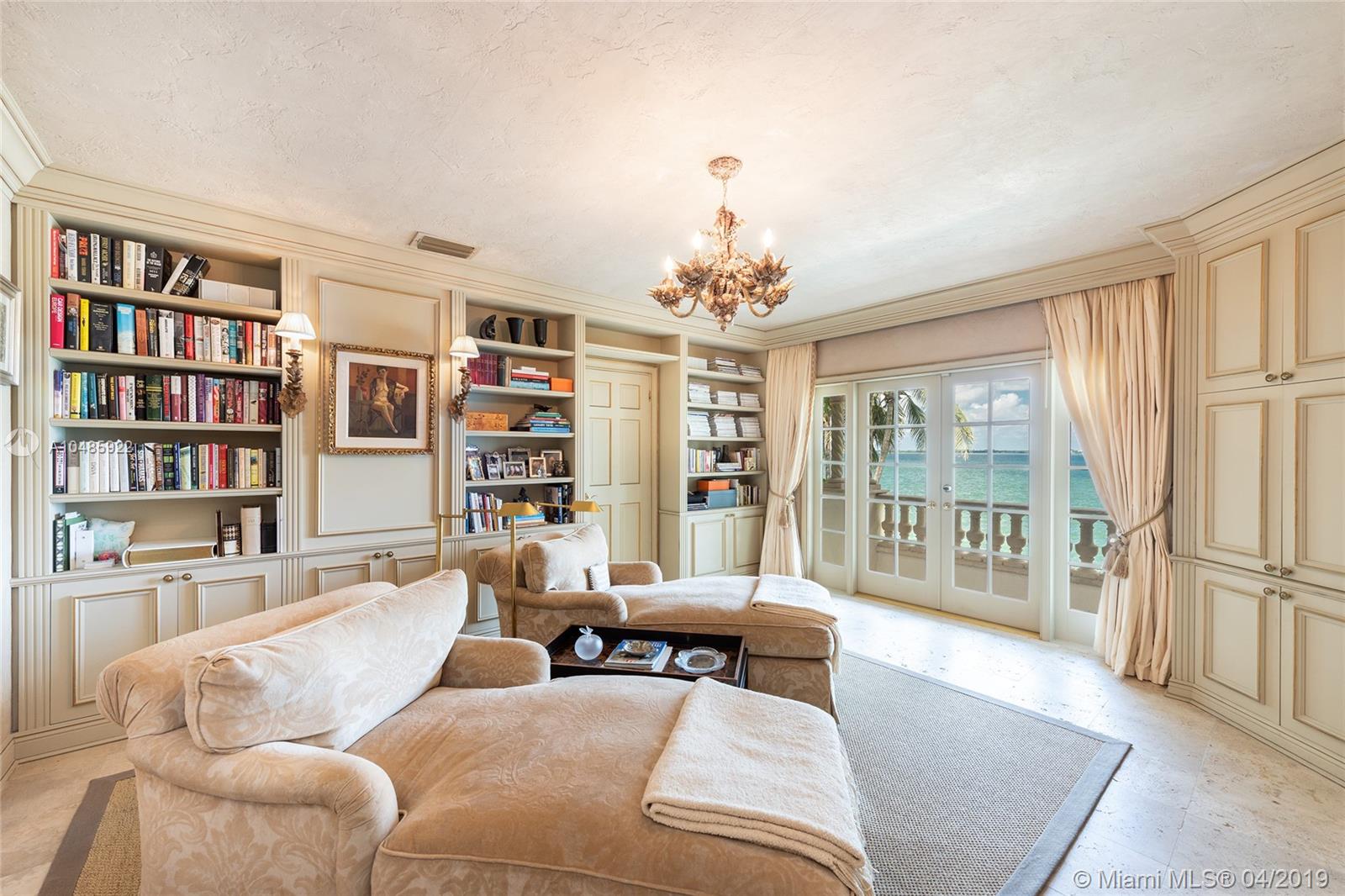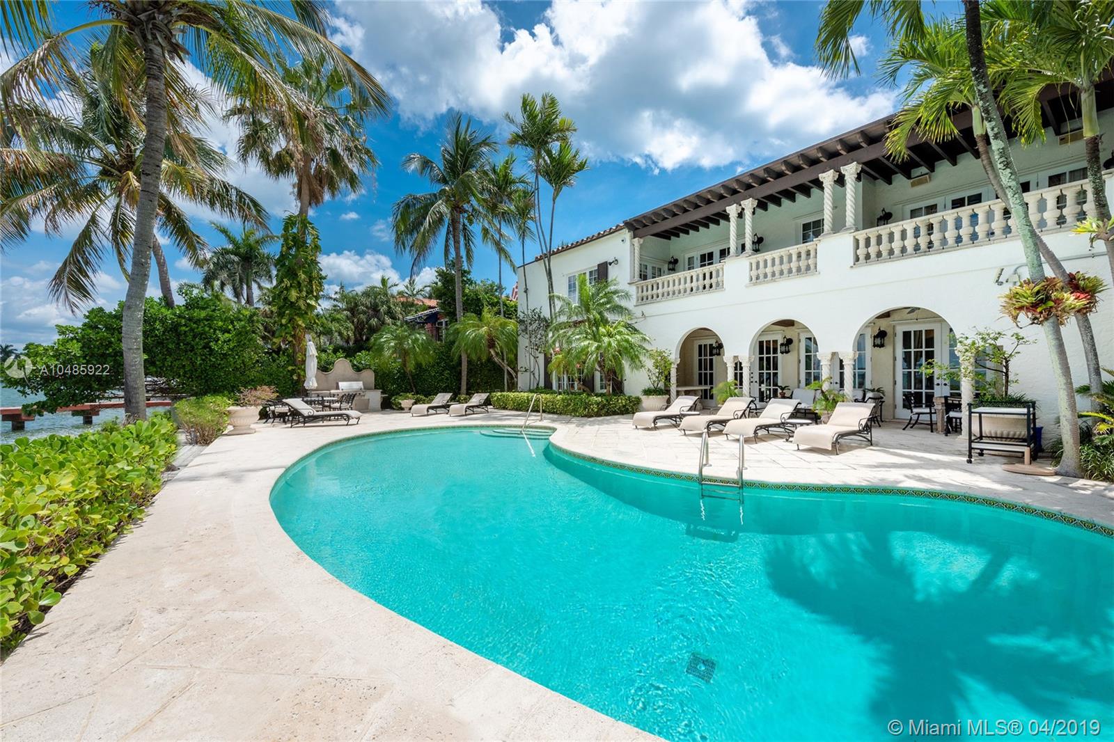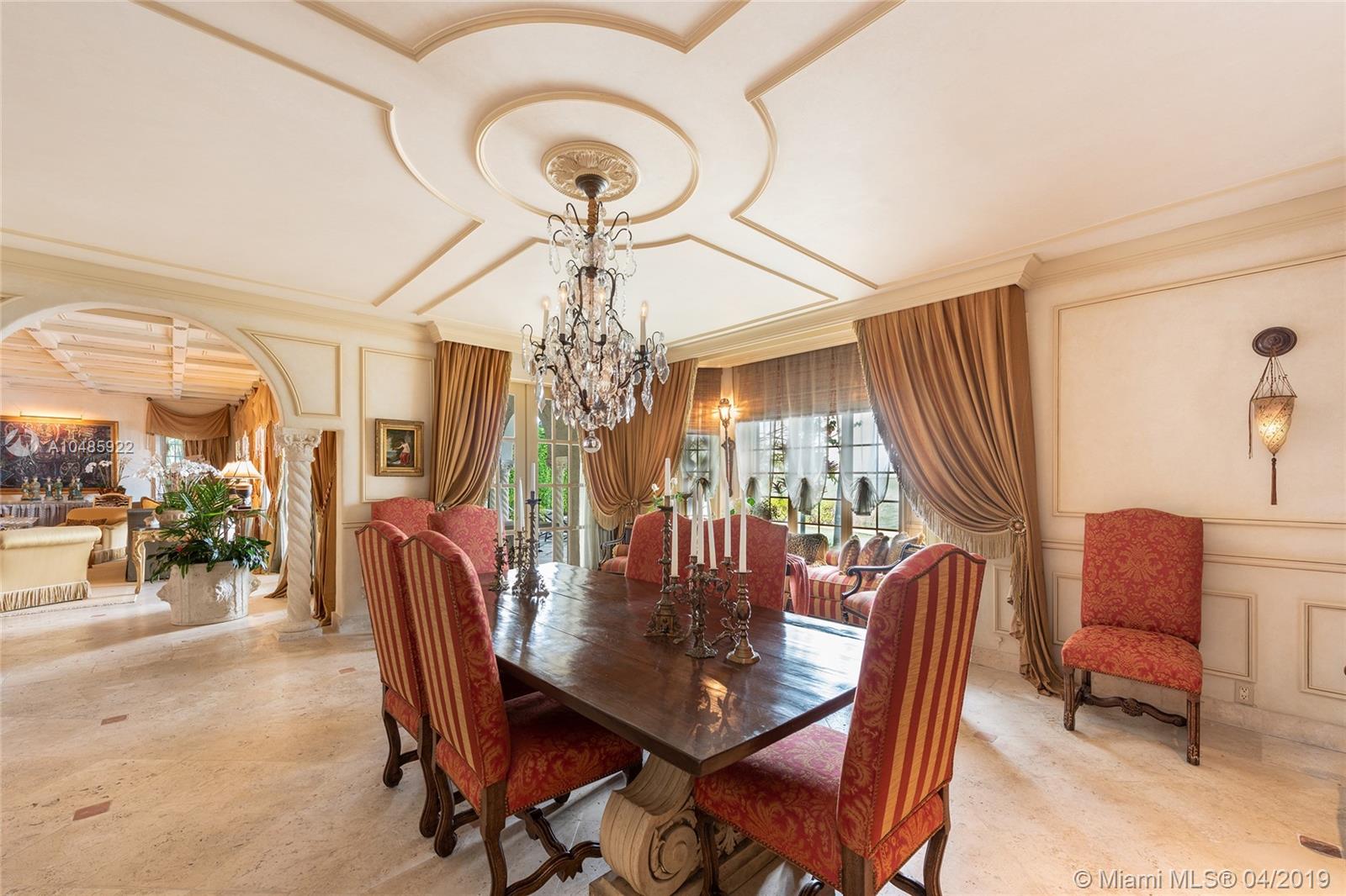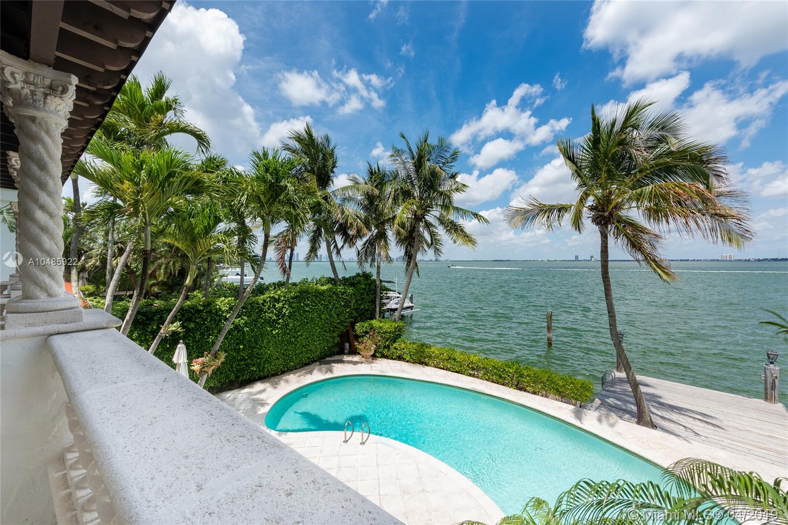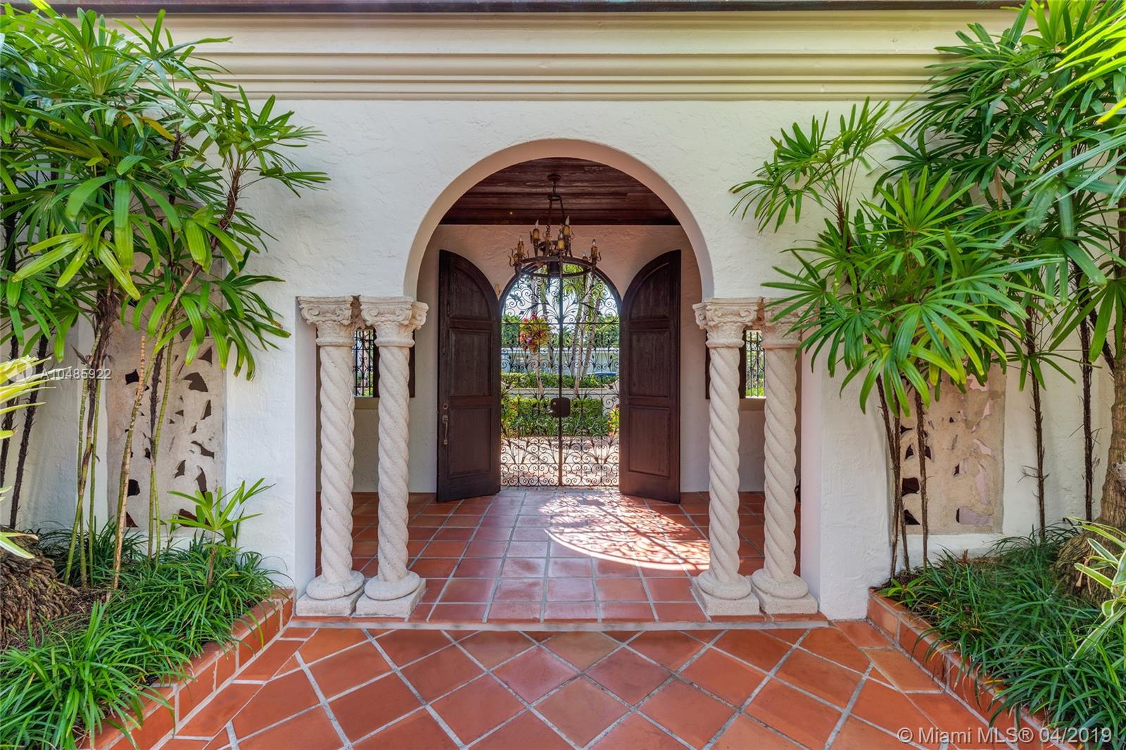 Seller Motivated! Enjoy wide Biscayne Bay and stunning sunsets over the Downtown Miami skyline from this magnificent 2-story waterfront Mediterranean Revival estate designed by renowned architect Martin Luther Hampton. 6BR/8+2BA (incl. 2 private guest suites), & a romantic interior courtyard w/fountain. An impressive Great Room w/fireplace & Pecky cypress beamed ceilings greets leading to an expansive living room w/coffered ceilings, Saturnia marble floors, fireplace & formal dining room all w/open bay views. An elegant 2nd floor master suite sports a private sitting room, large balcony to the bay & balcony to courtyard. Spacious His & Her marble master bathrooms each w/walk-in closets. Entertain outdoor w/a large pool, covered loggia, & summer kitchen. Boat dock & 75.6’ of waterfront.