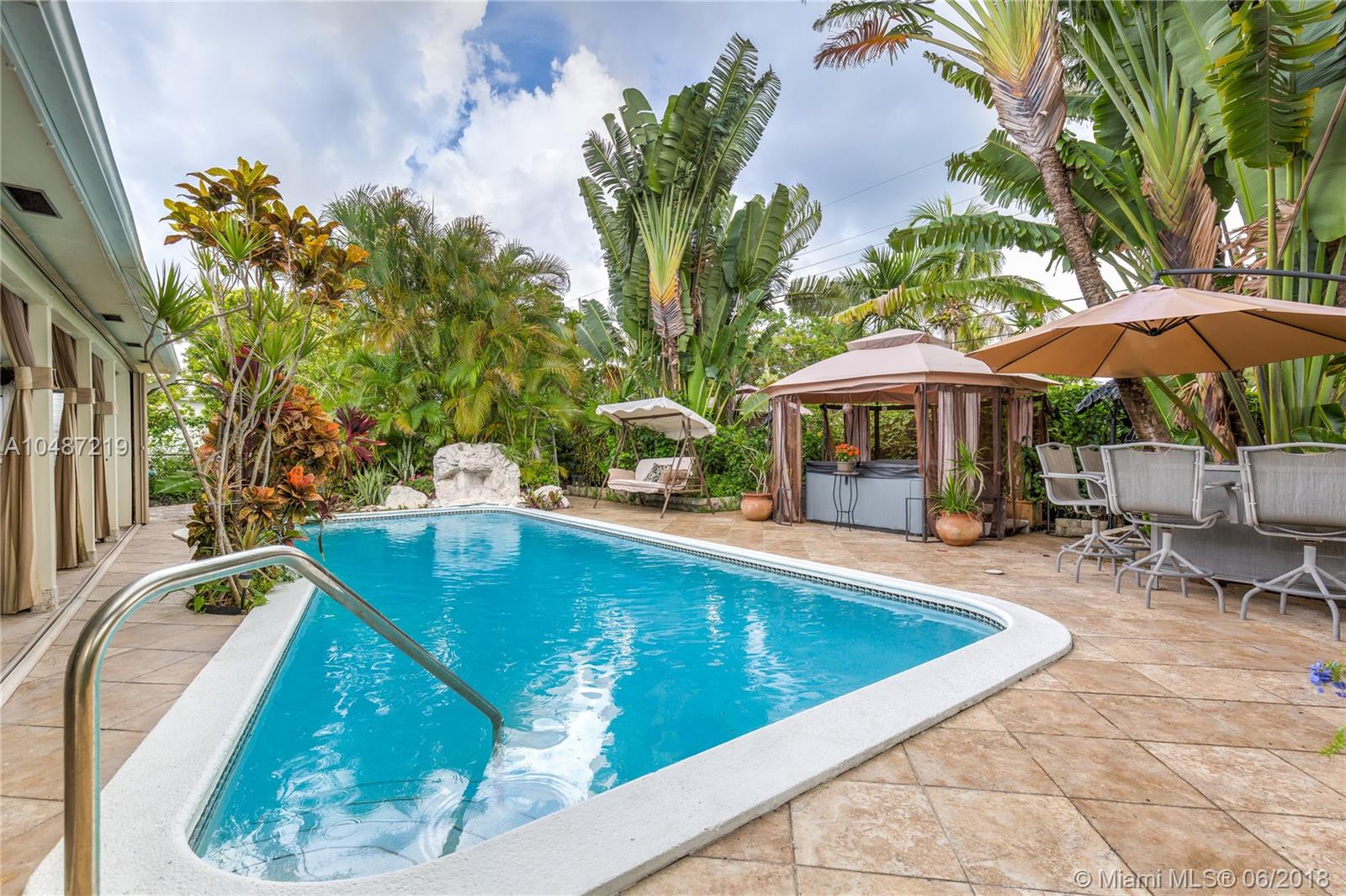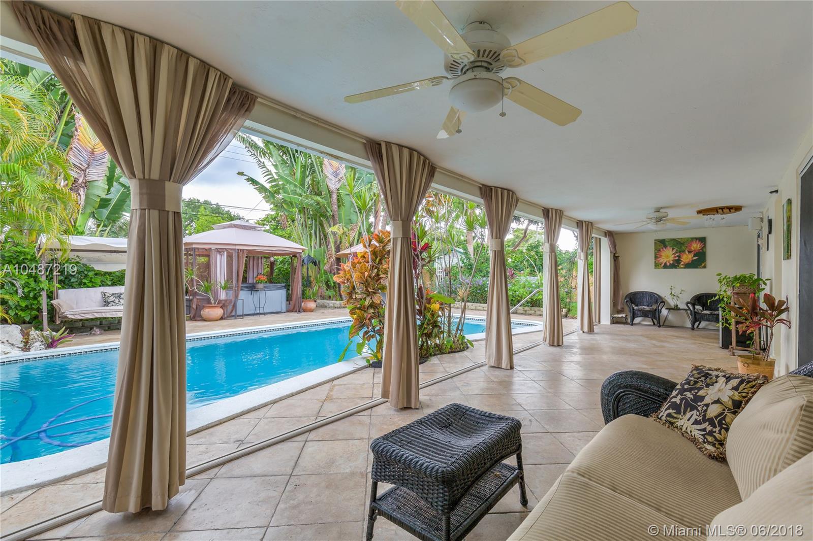 Seller is offering generous incentives for cash buyers and quick closing. This 3 BR/2 BA home is stunning inside and out and features an open floorplan, tile floors, and an abundance of windows providing natural light and amazing views. The spacious kitchen boasts granite countertops, a moveable island, wood cabinets, double-sink and stainless steel appliances. The bathrooms feature glass shower doors, tiled walls, granite countertops and vessel sinks. The backyard is a tropical oasis designed for entertaining & includes a tiled covered patio, heated saltwater pool, rock waterfall, hot tub, and lush landscaping with several different fruit trees. The perfect blend of indoor and outdoor living. Close to I-95, Turnpike, shopping, parks, great schools & beautiful Hollywood Beach.