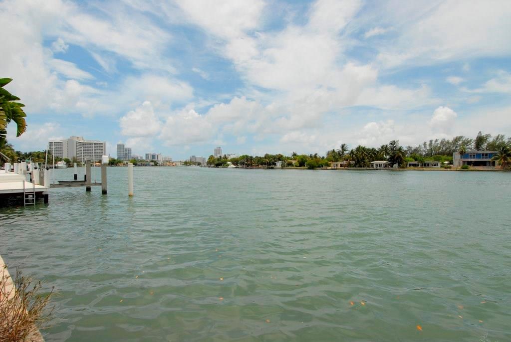 Panoramic wide waterfront view of the city and the bay! Beautiful sunsets!Spacious open, entertaining plan in this partially renovated home or build your own dream mansion on this 14,850SF lot in this prestigious, private gate Miami Beach community. 94' waterfront. Pool and decking are situated near the waterfront for maximum potential development. Some impact doors and windows. Sold "as is." Desirable south exposure. Walking distance to the beach. Easy to show.