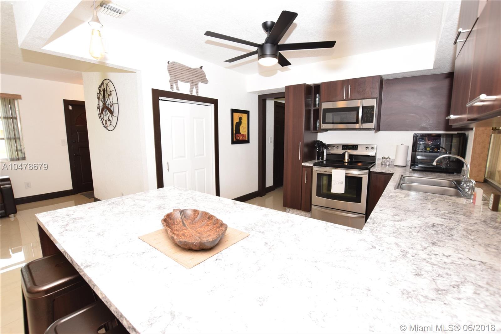 This beautifully remodeled home sits on a corner lot. Open and spacious floor plan features porcelain tiled flooring throughout. Gorgeous upgraded kitchen tastefully done with new stainless steel appliances. Remodeled bathroom is done in all neutral colors. AC airhandler was put in last year. Roof was re-certified last month and is about 9 years old. Newer water heater. The spacious backyard features a covered patio area with a new decking, great for BBQ and entertaining. Also plenty of room for a boat on the side of the house with a gate.