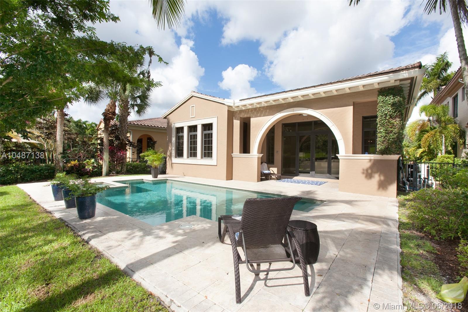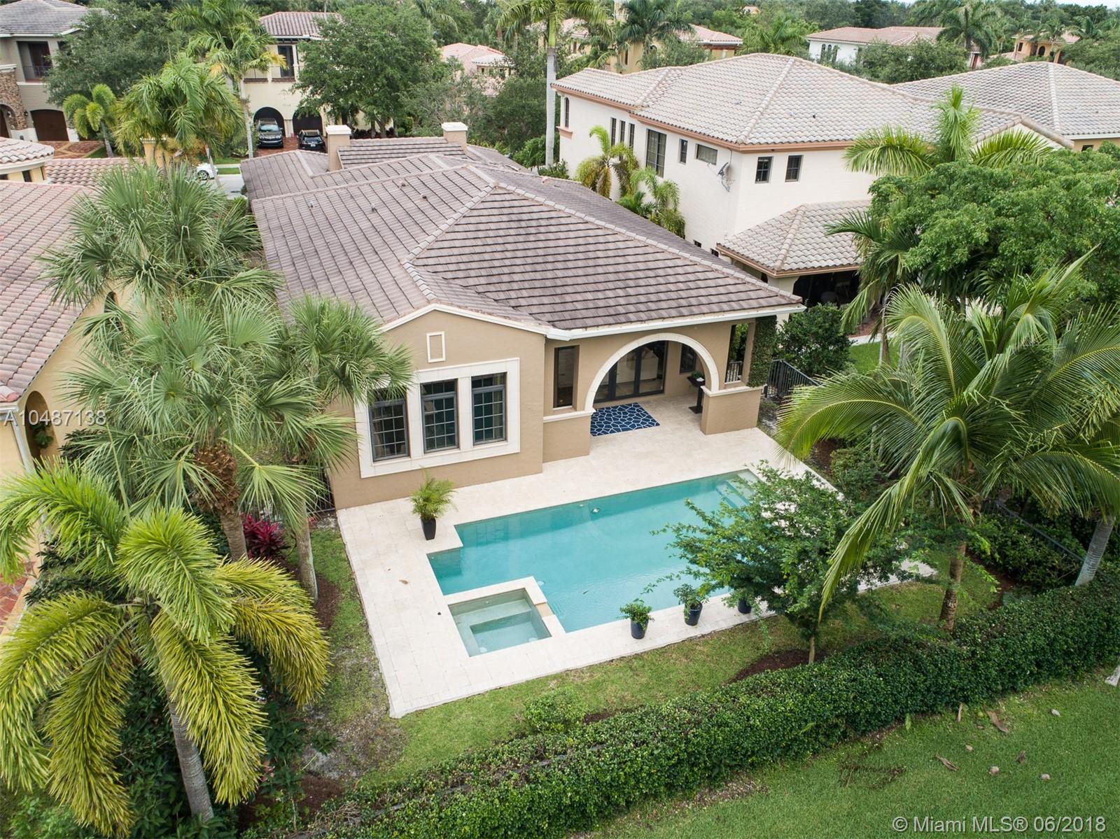 Parkland Golf Executive Home; From the grand entrance featuring a welcoming garden and designer double height wood entry doors you enter into this hidden gem. Upon entering the Art Gallery Foyer guides all guests into this well designed floor plan. The residence features 4 bedrooms (one currently used as an office), volume ceilings, marble floors through out the main areas and solid wood floors in 3 of the 4 bedrooms. Formal Dining Room, Open concept kitchen and great room which overlooks the outdoor pool, covered porch located with no neighbors behind the home. The kitchen is spacious with a 42" cooktop, quartz counter tops, bar top eating area and pantry. Well maintained. Impact Resistant Windows and Doors; per Developer Plans; Sought after parkland schools.