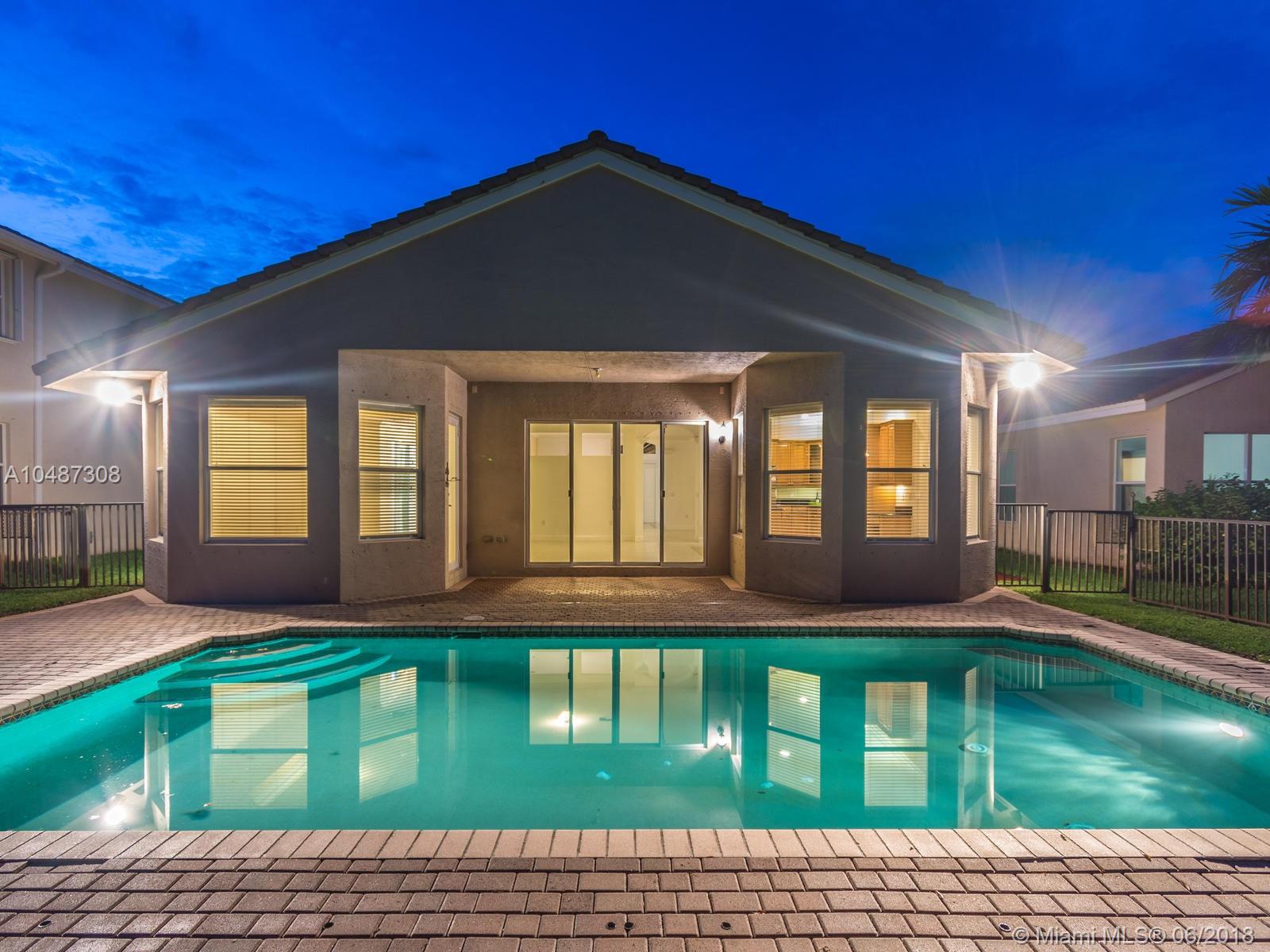 **DESIRED SUZANNA MODEL WITH POOL**4 BEDROOMS, 3 FULL BATHROOMS, 2 CAR GARAGE. PAVER DRIVEWAY HEAD TO DOUBLE DOOR MAIN ENTTRANCE. TRIPLE SPLIT FLOOR PLAN. 10' HIGH CELLINGS. ELEGANT CROWN MOLDING ALL AROUND. DIAGONAL TILE IN SOCIAL AREAS AND BATHROOMS;LAMINATED WOOD FLOORING IN BEDROOMS. UPGRADED WOOD CABINETS IN KITCHEN WITH BLACK GRANITE AND SS APPLIANCES. BREAKFAST NOOK WITH POOL VIEW. FORMAL LIVING AND DINING. OPEN FAMILY ROOM HEAD TO PAVERED POOL AREA. FENCED PATIO, PERFECT FOR FAMILY ENTERTAINTMENT.KIDS FENCE FOR POOL AT THE GARAGE. SPACIOUS MASTER ROOM WITH TWO WALKING CALIFORNIA CLOSETS.ROMAN TUB AT MASTER BATHROOM.SEPARATE SHOWER WITH TEMP GLASS DOOR.HER AND HIS SINK. AND MUCH MORE..CLUB HOUSE WITH TENNIS COURTS, GYM,PLAY GROUND, BASKETBALL.GUARD GATE 24/7.COME!, YOU WILL LOVE IT!